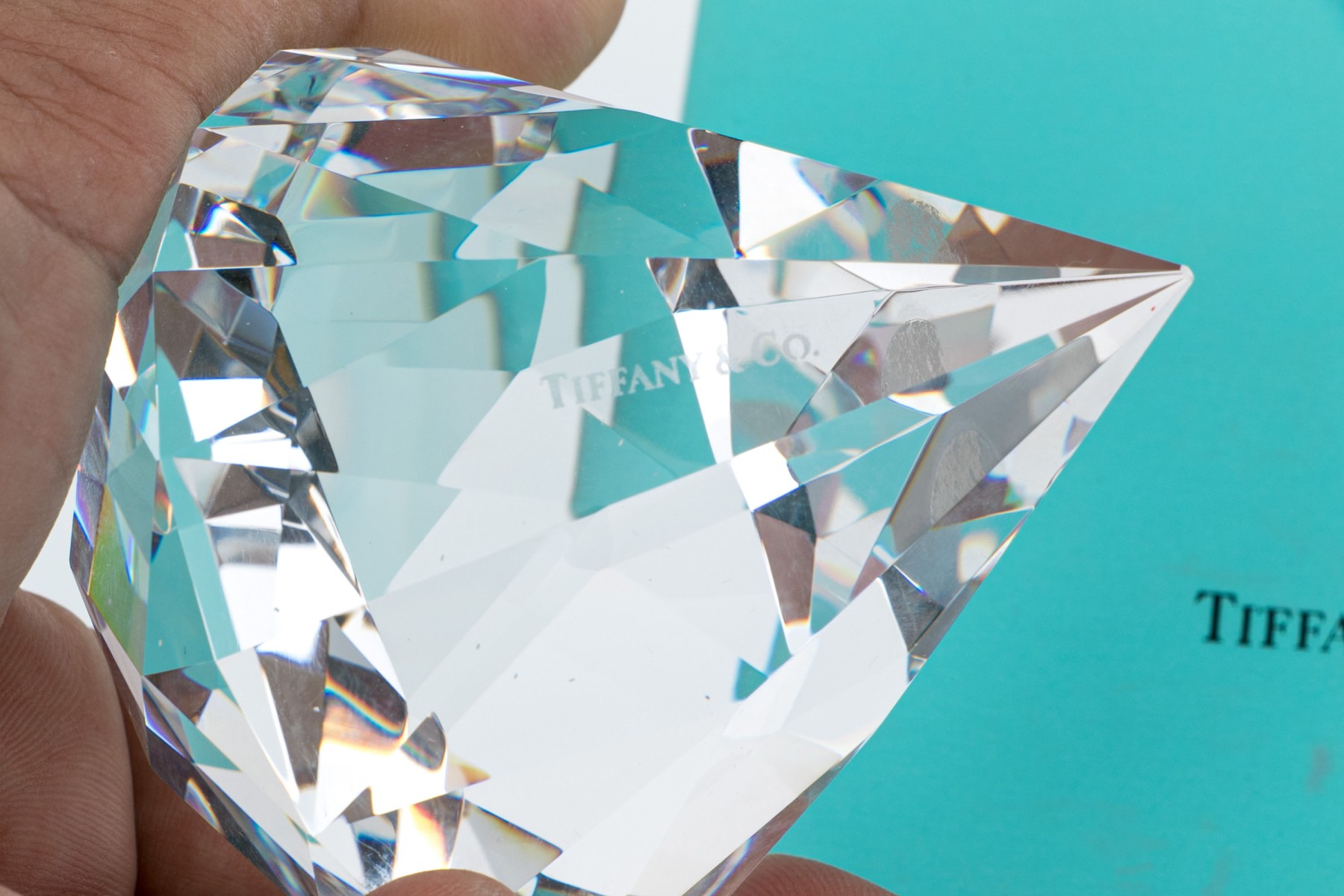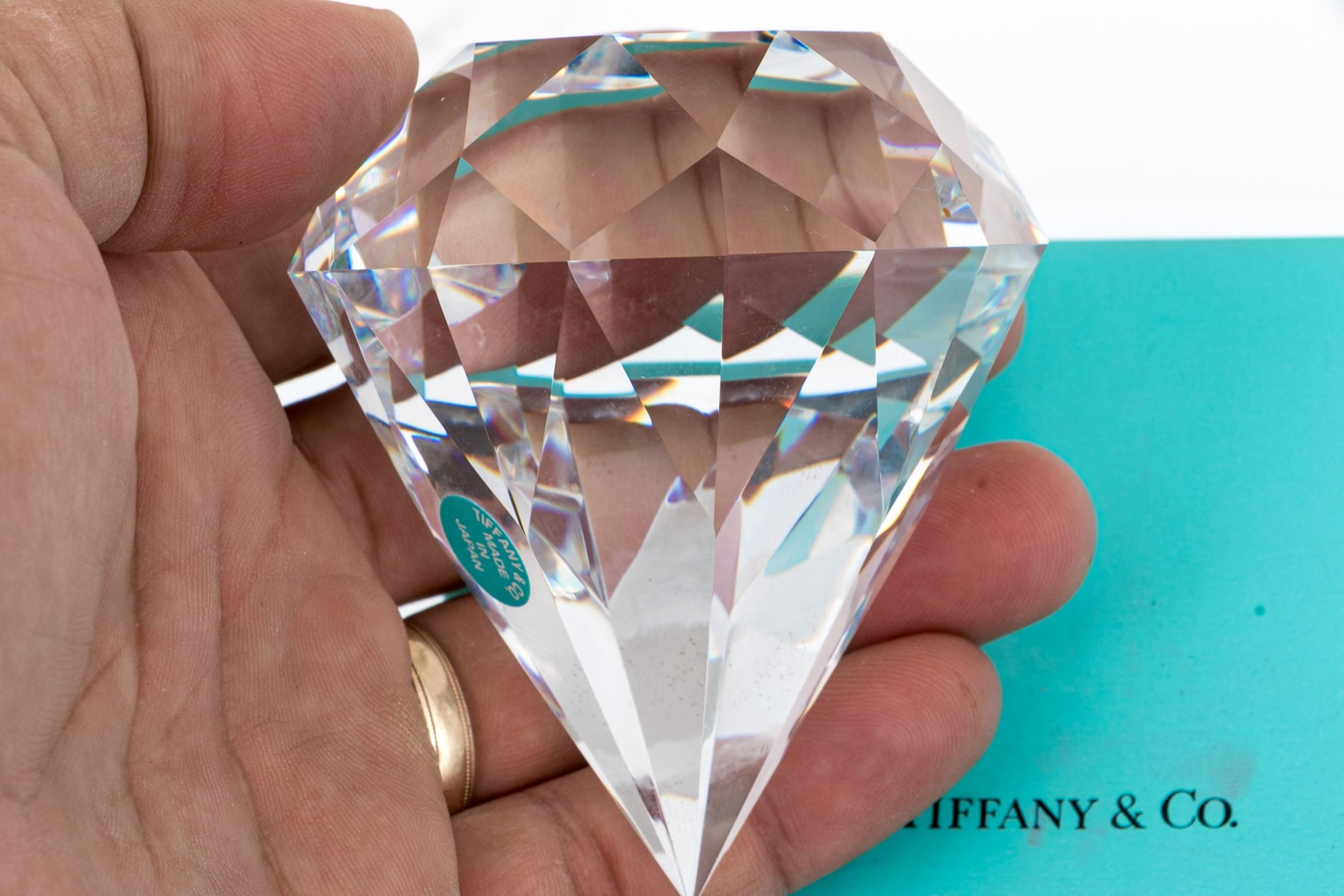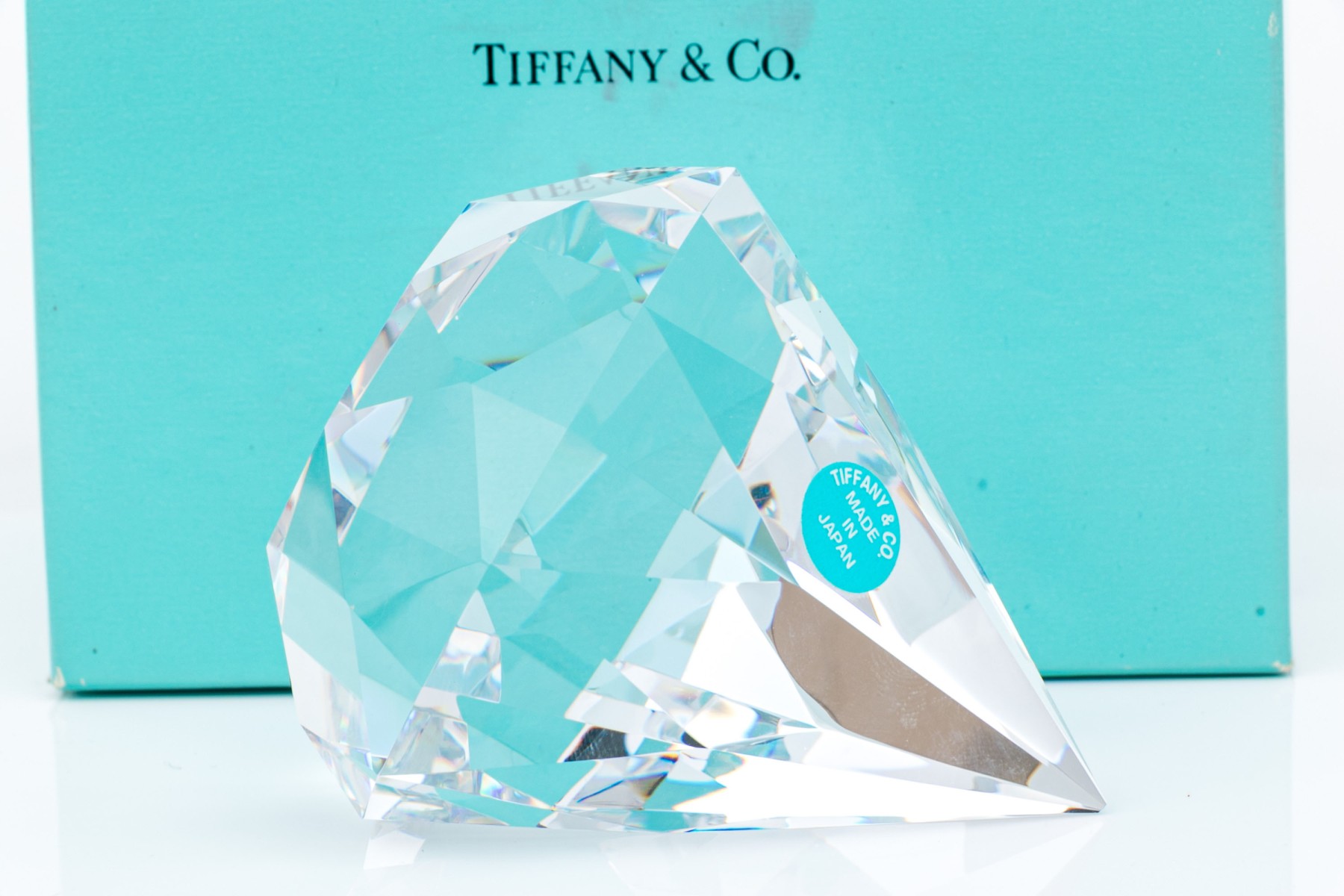 Made in Japan. A faceted pyramid form piece. With the original sticker and inn the iconic blue box.