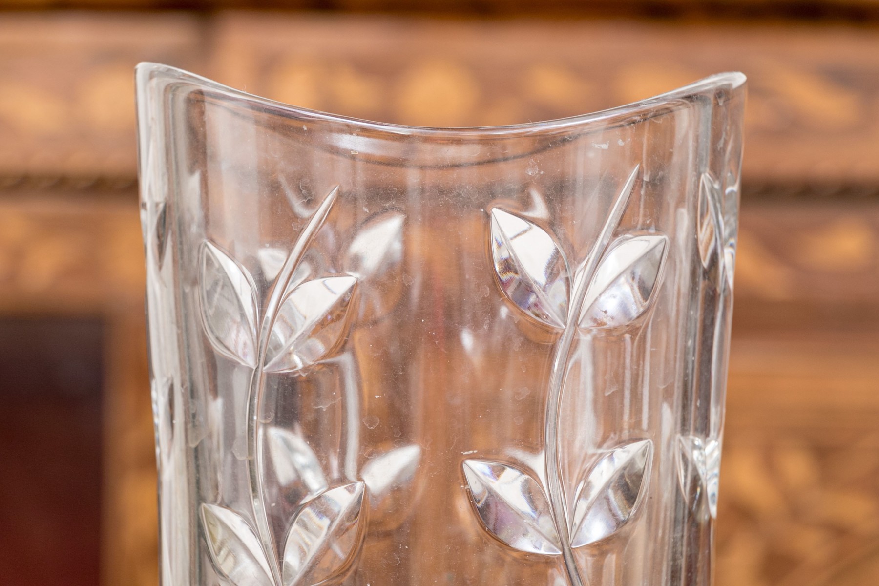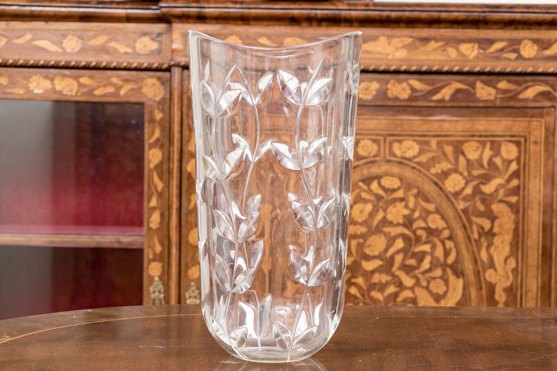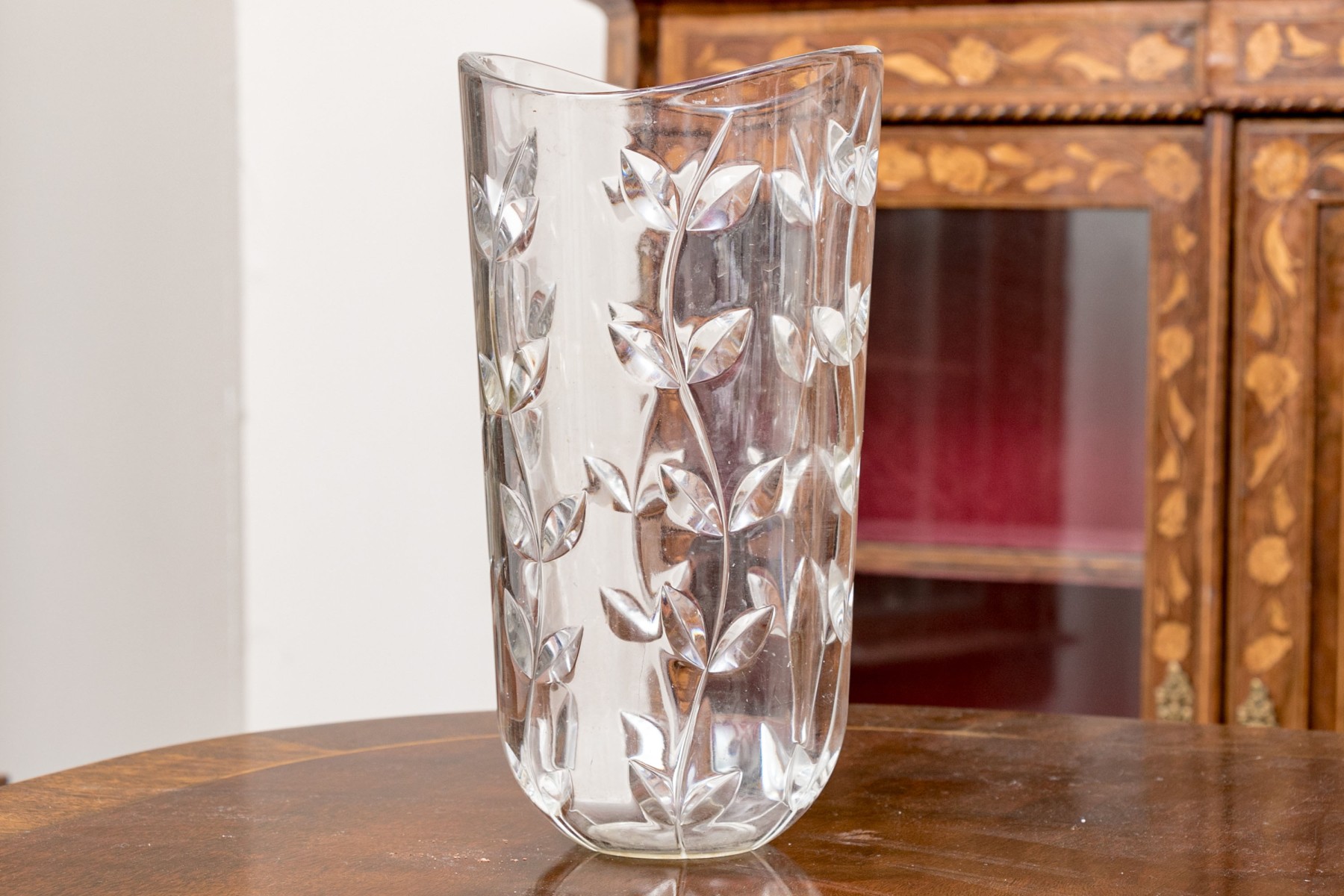 Lovely Tiffany & Company cut-crystal vase having vine and leaf pattern.