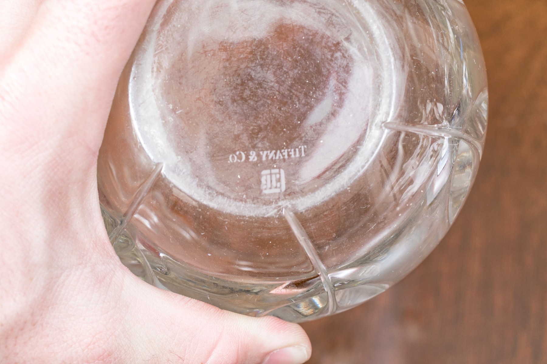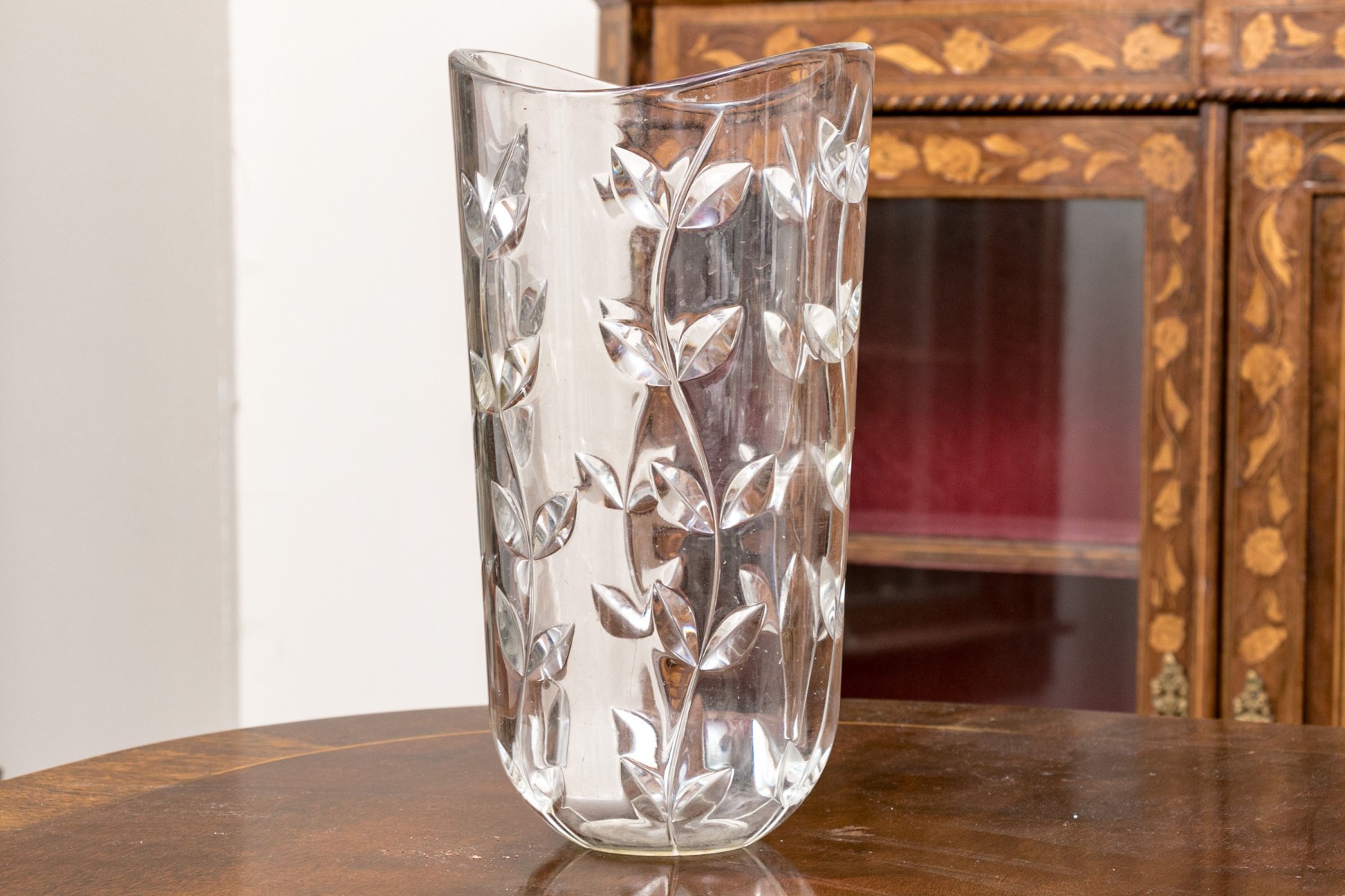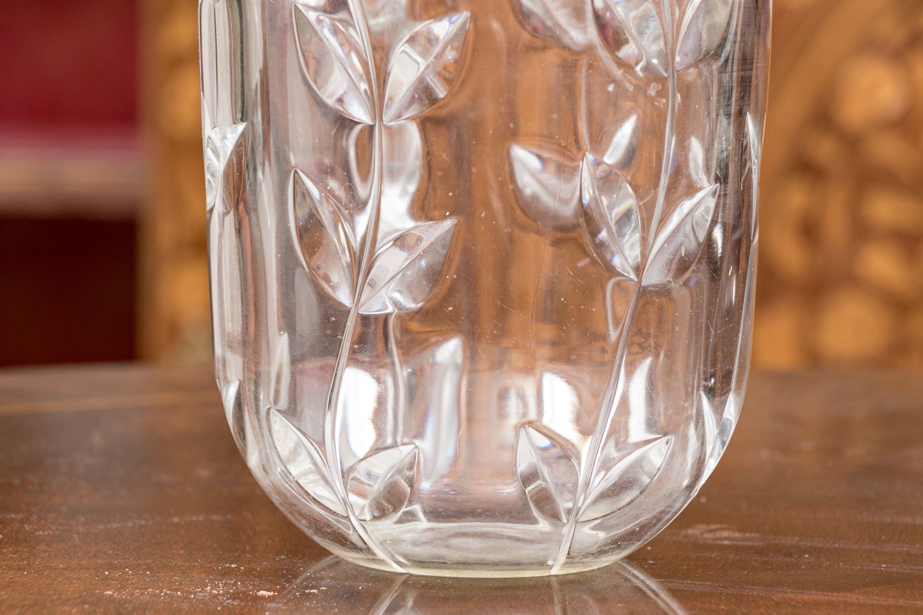 Lovely Tiffany & Company cut-crystal vase having vine and leaf pattern.