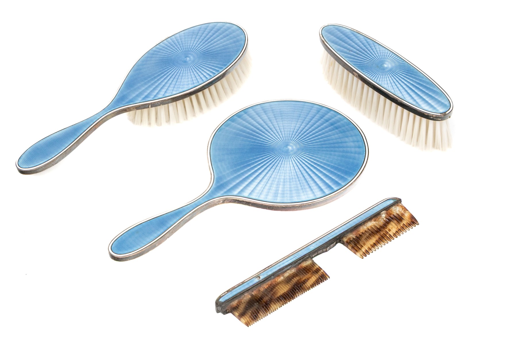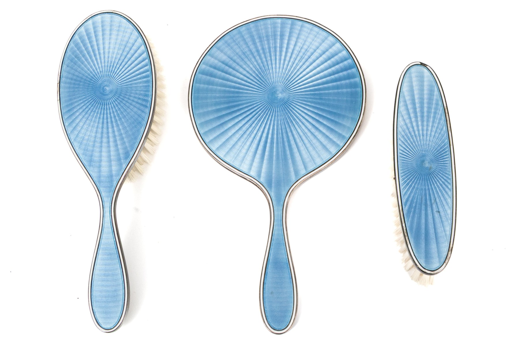 All with lovely blue guilloche engine turned enameled decoration.