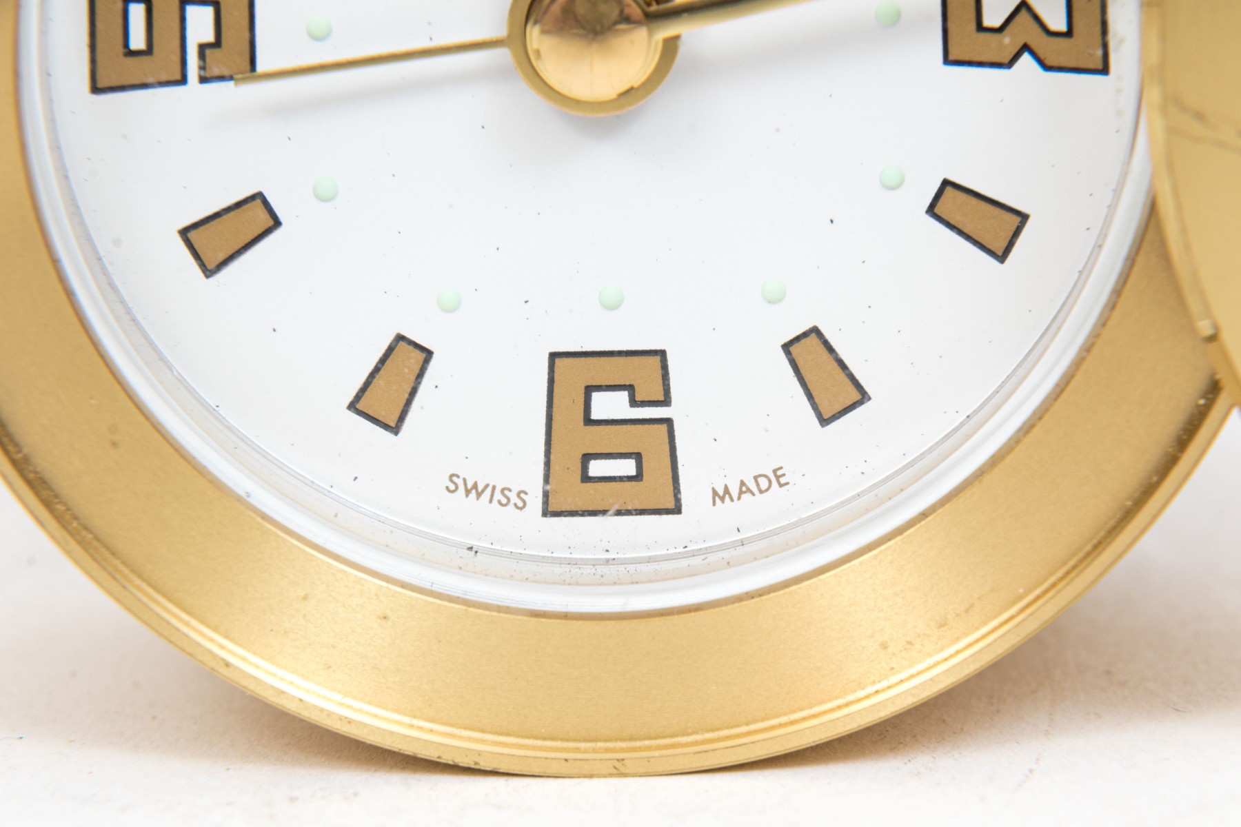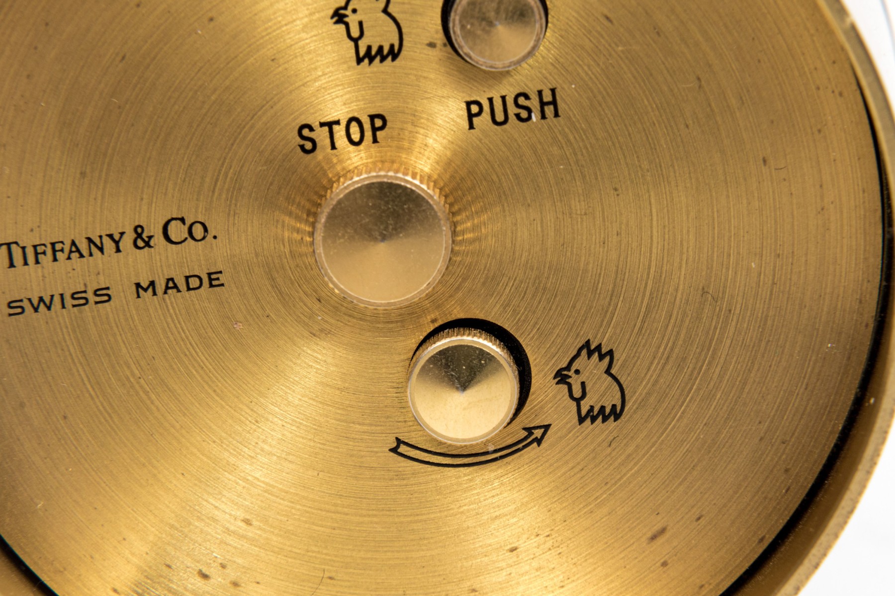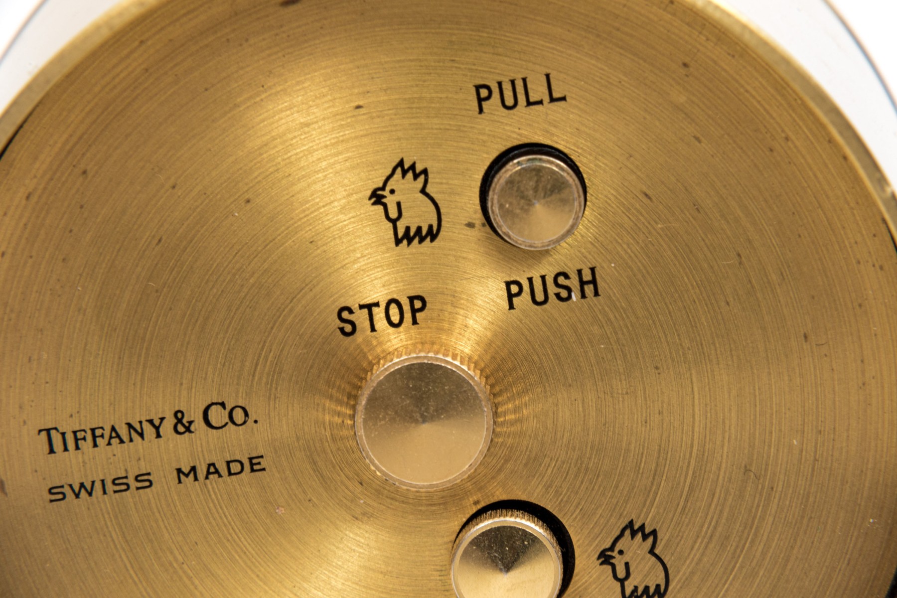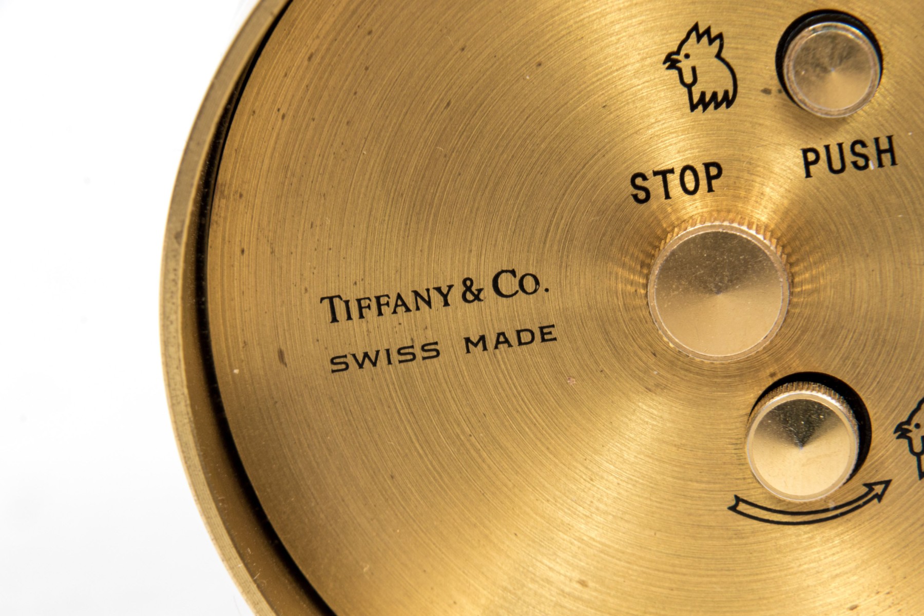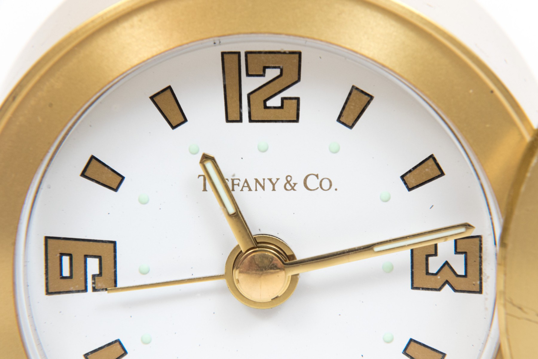 Tiffany & Co. handsome brass travel clock, white dial
