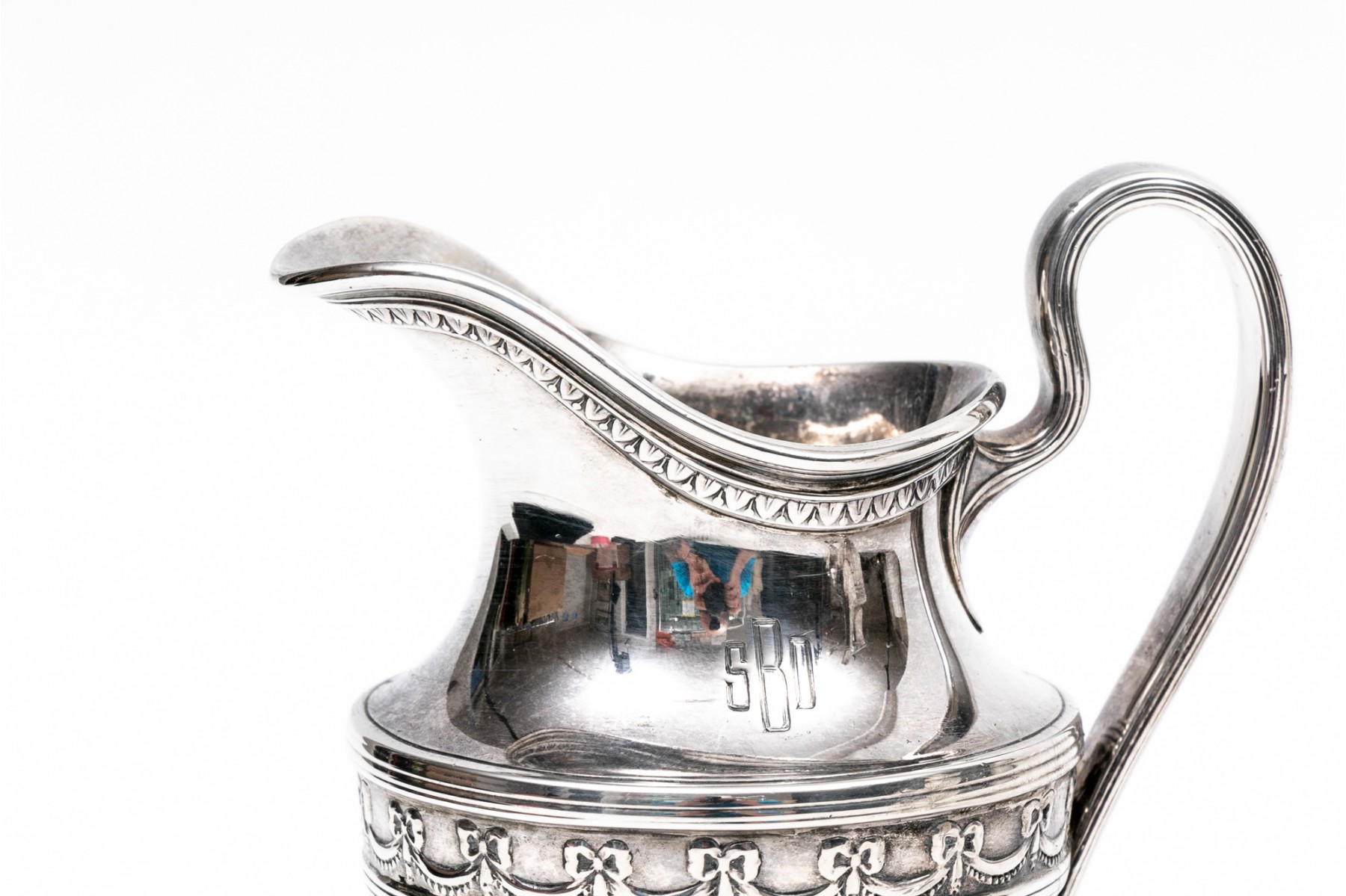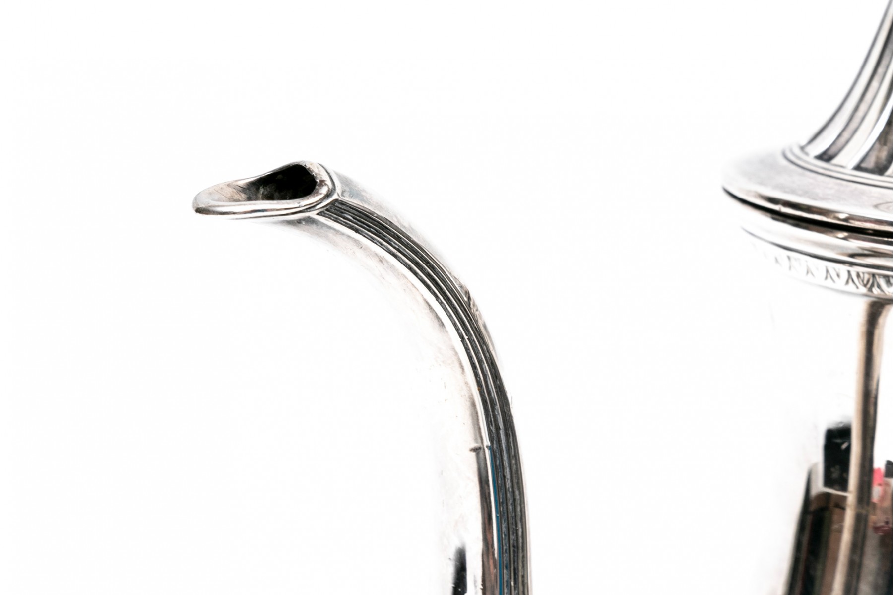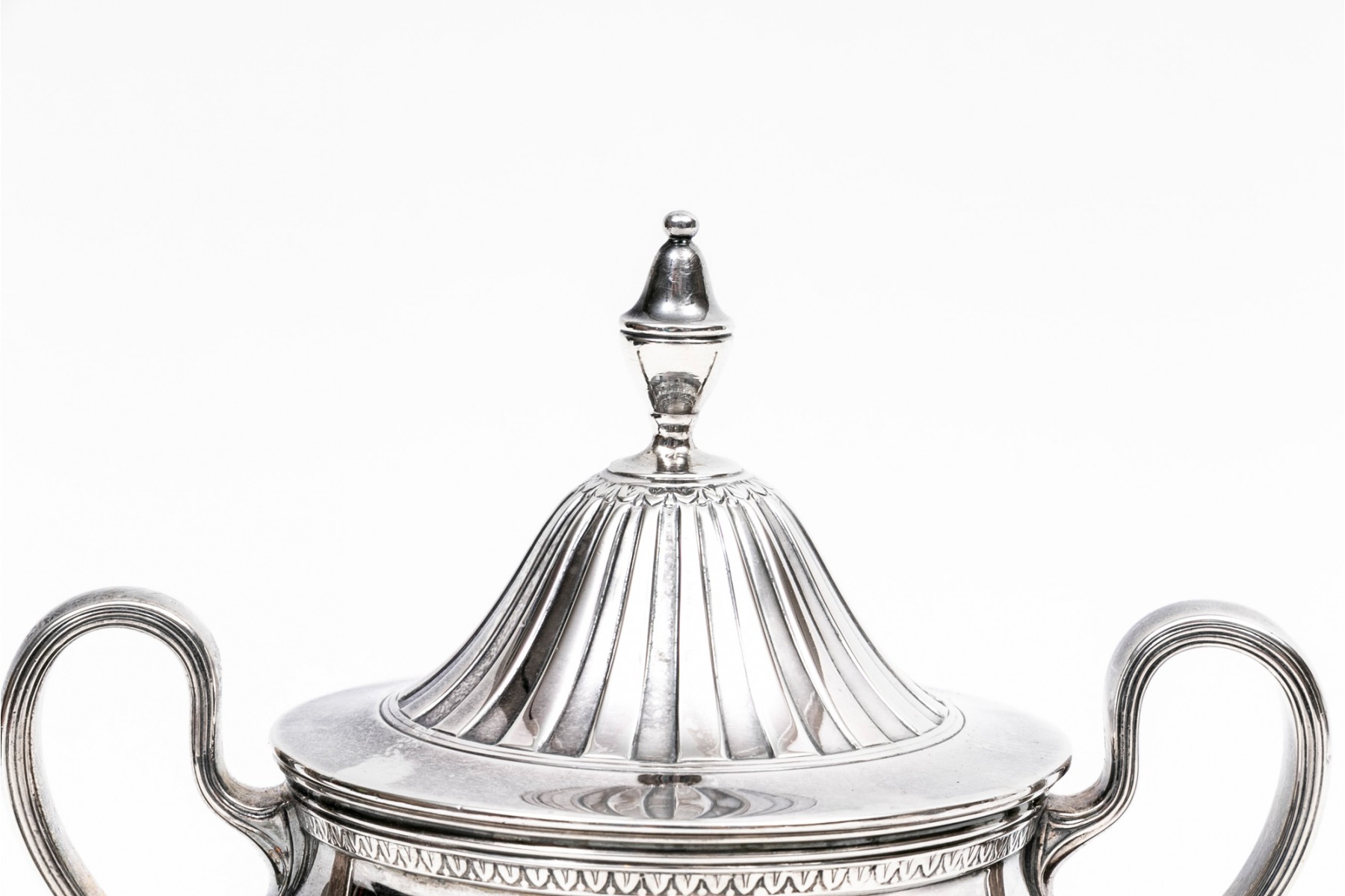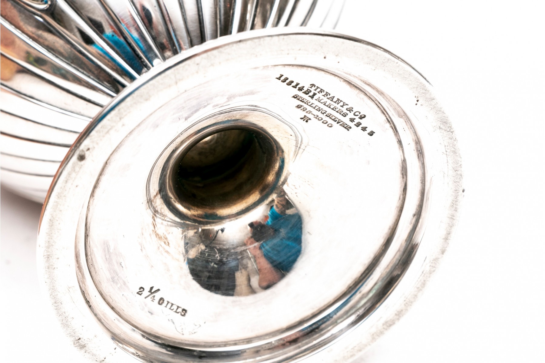 Tiffany & Co. Makers sterling stunning vintage three piece pedestal demitasse set, adorned with a wainscoat patterning and finished with a festooning style decoration
