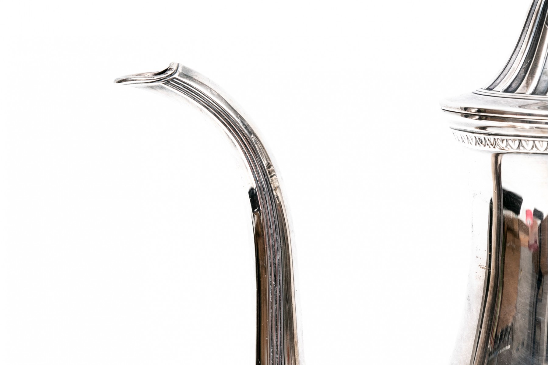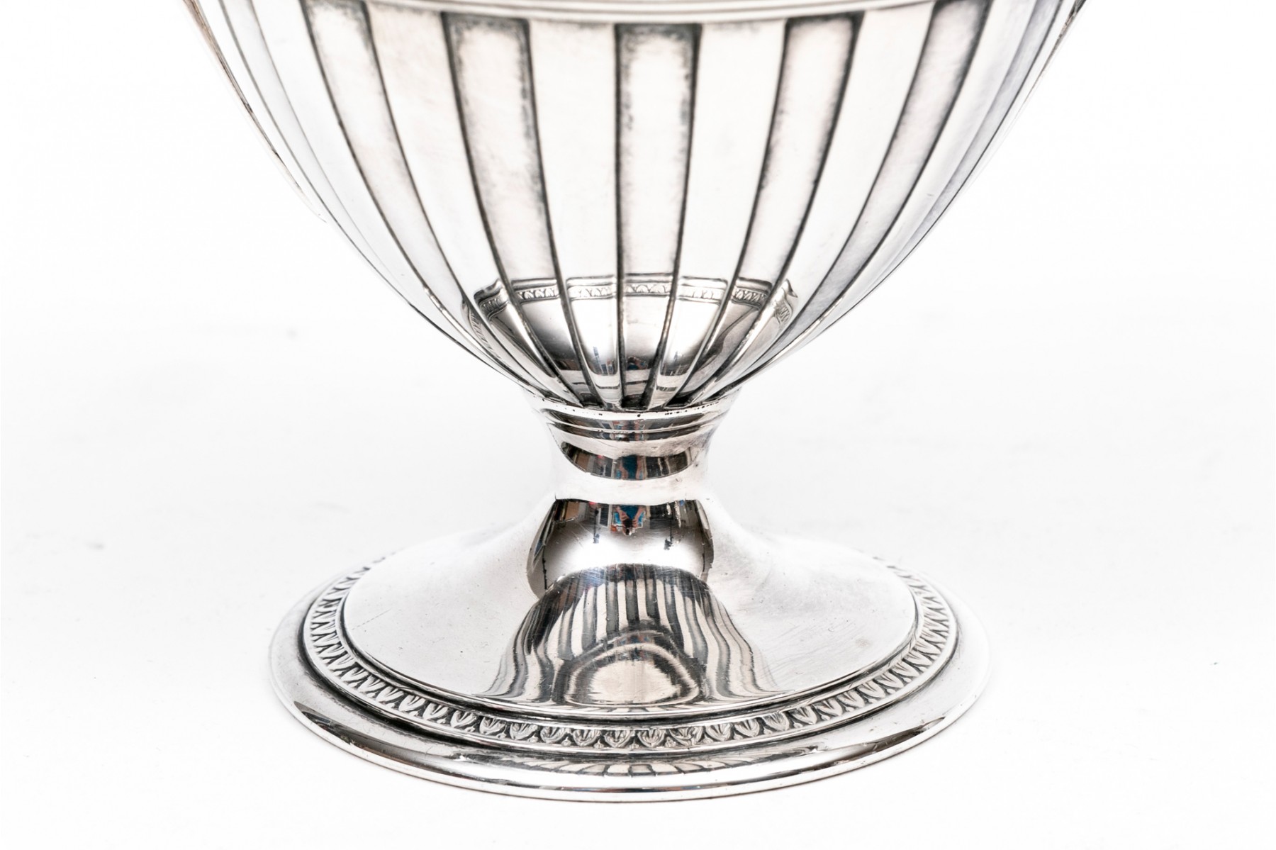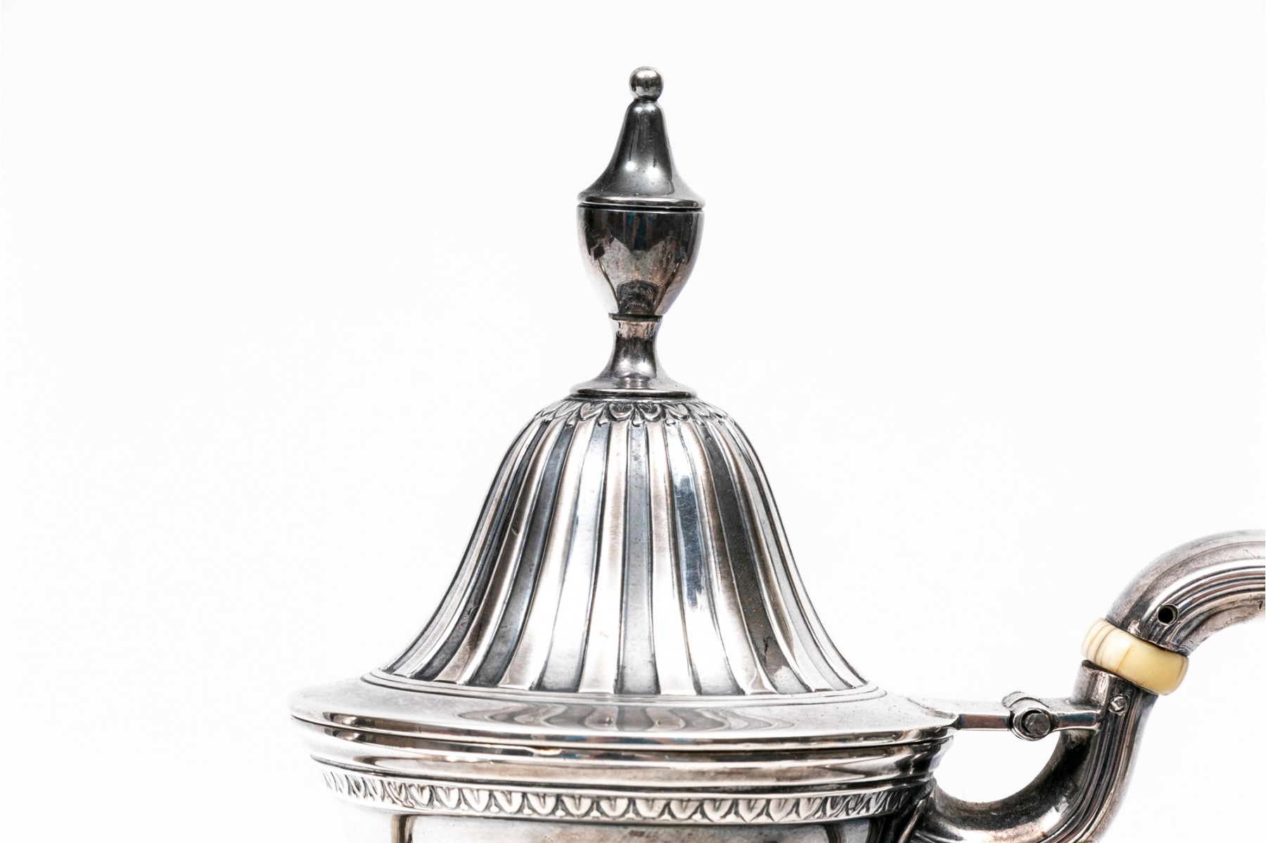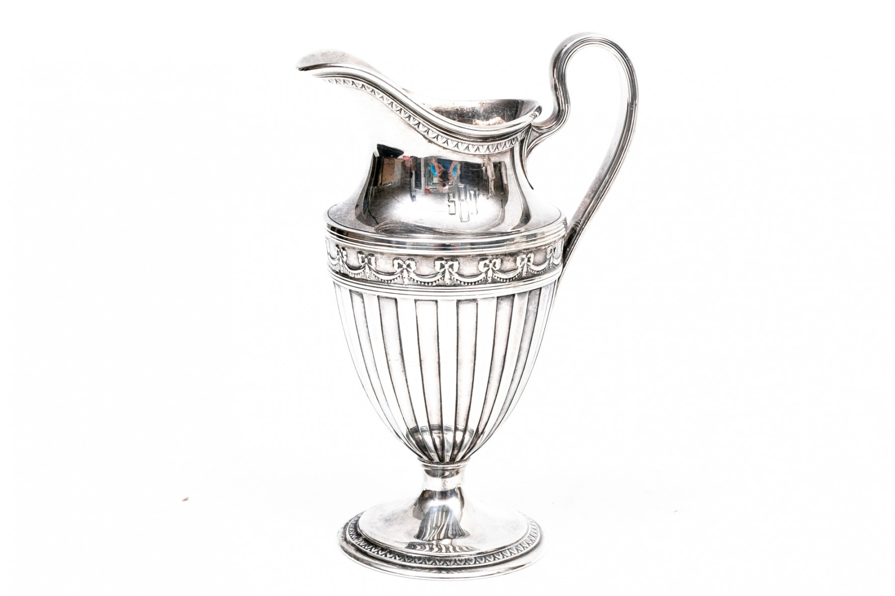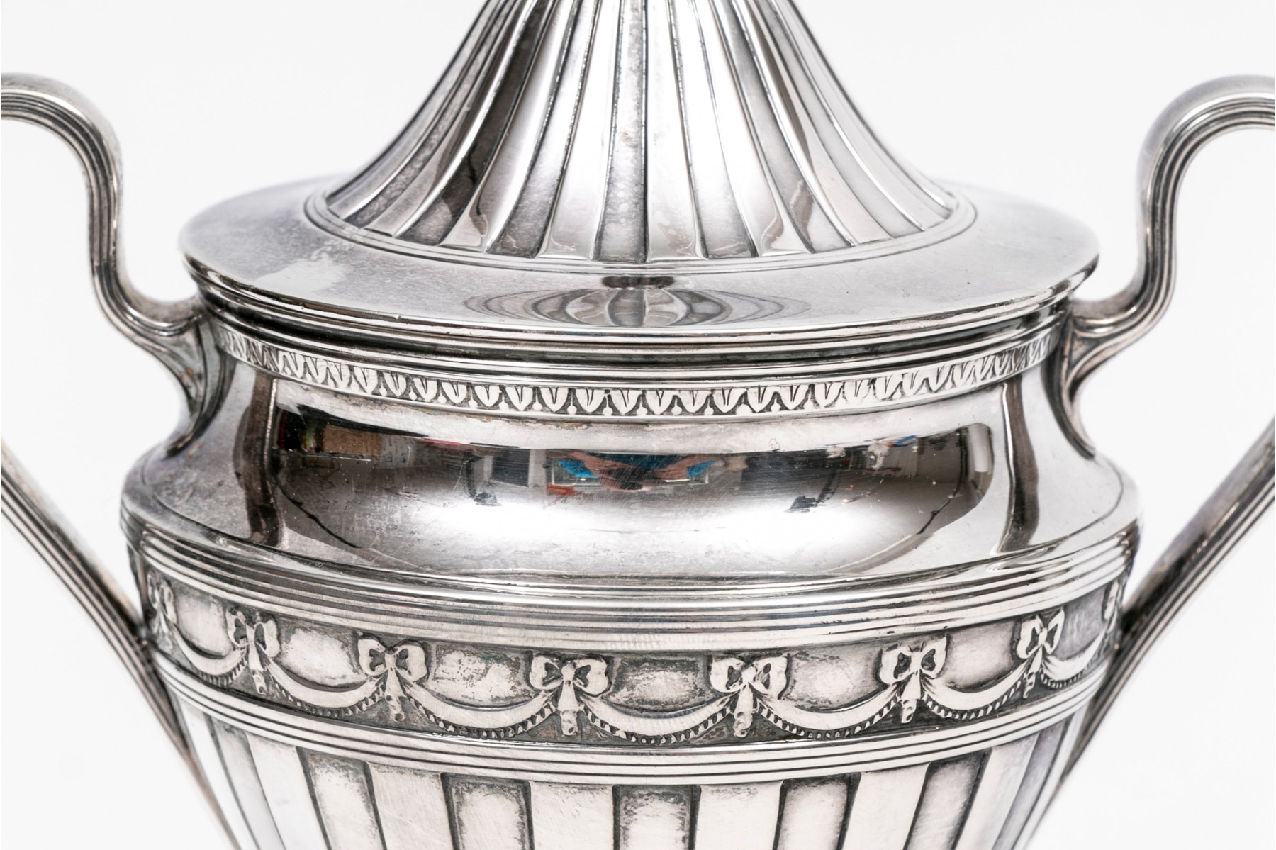 Tiffany & Co. Makers sterling stunning vintage three piece pedestal demitasse set, adorned with a wainscoat patterning and finished with a festooning style decoration