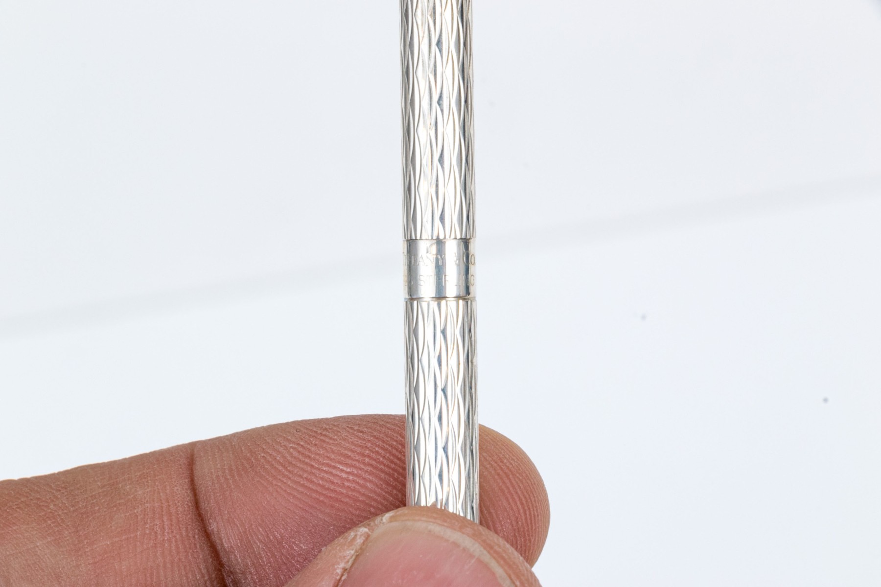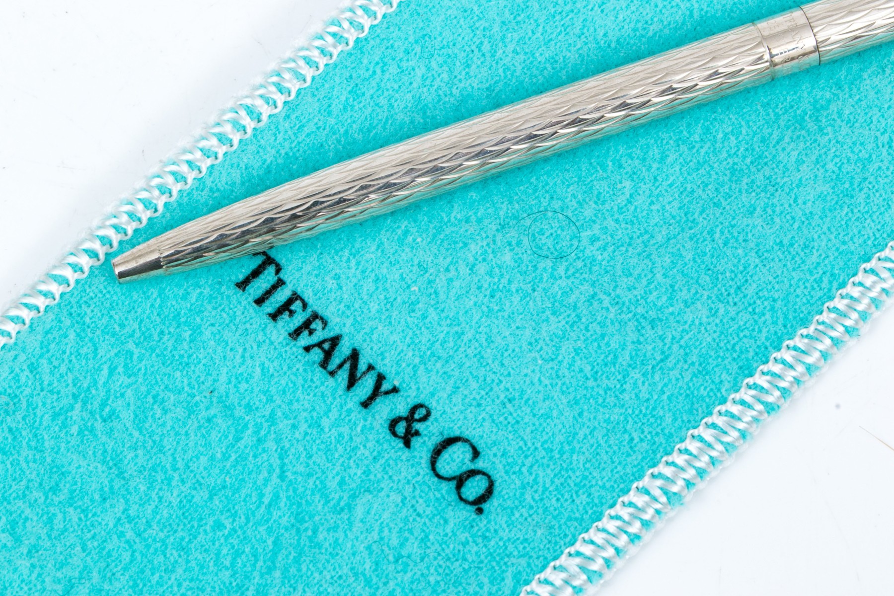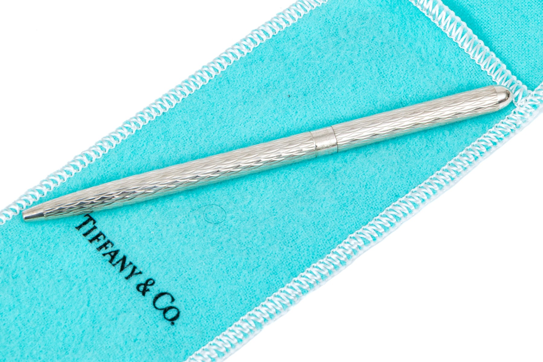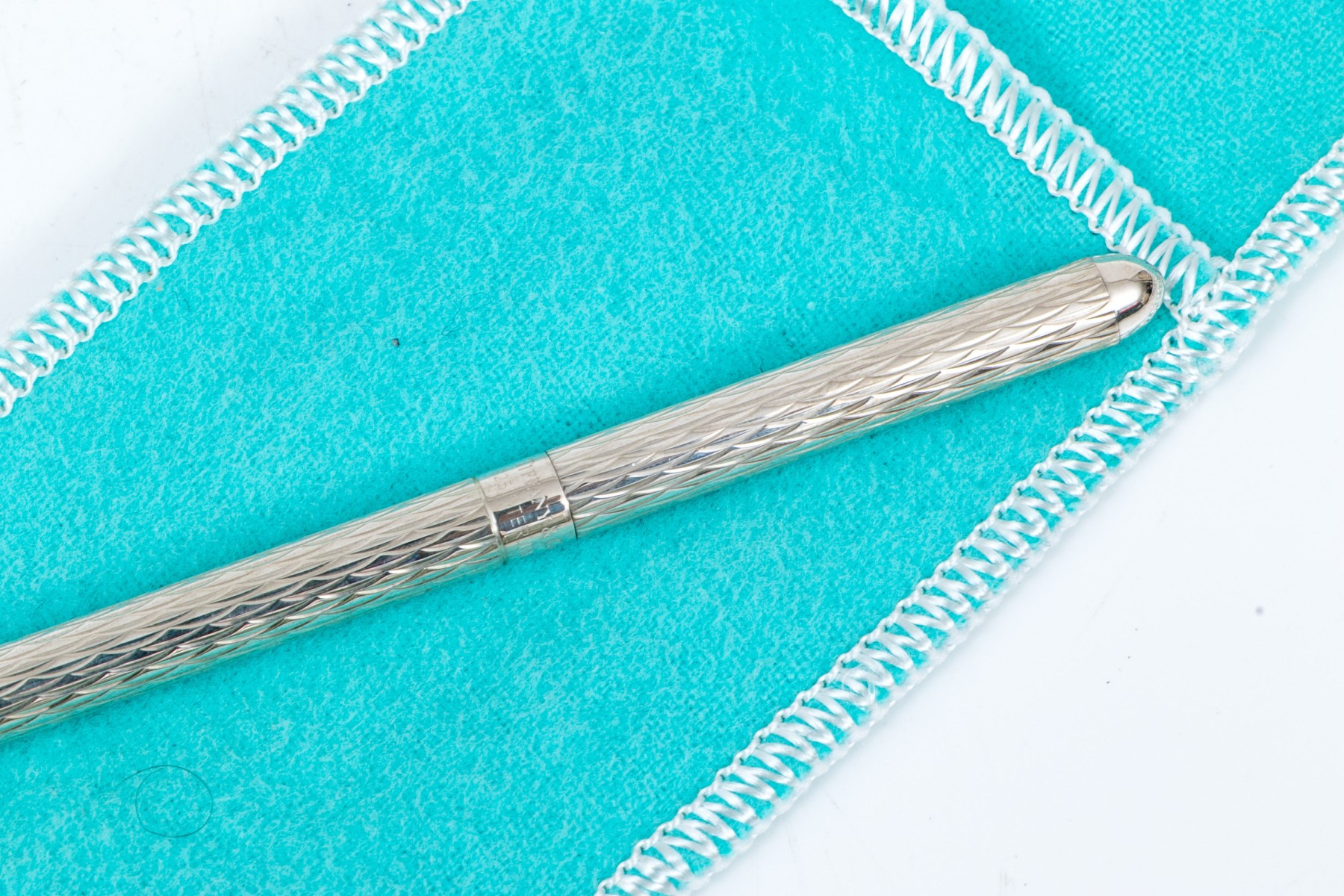 A Tiffany and Company sterling silver pen. The pen has a diamond cut design with twist open top.