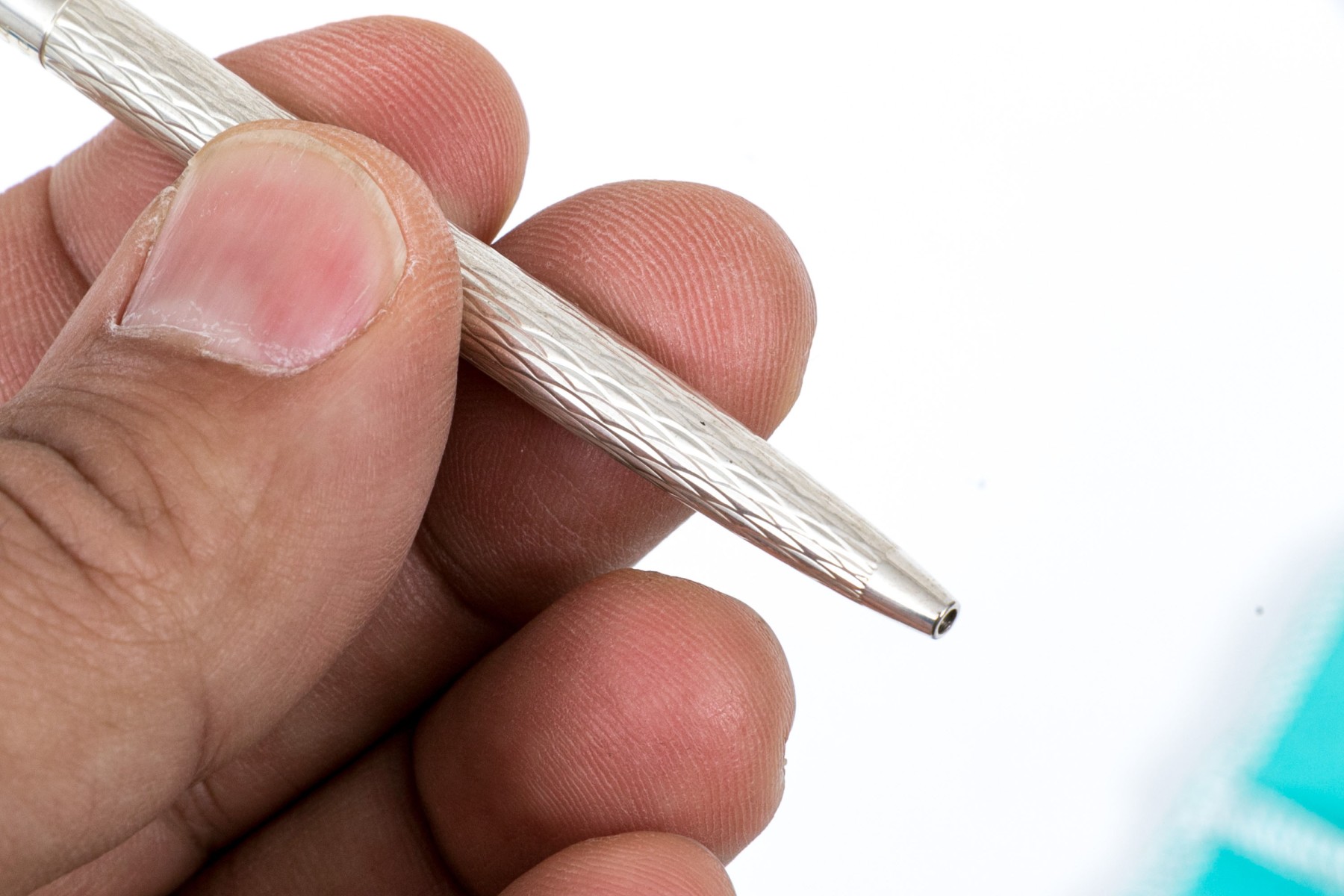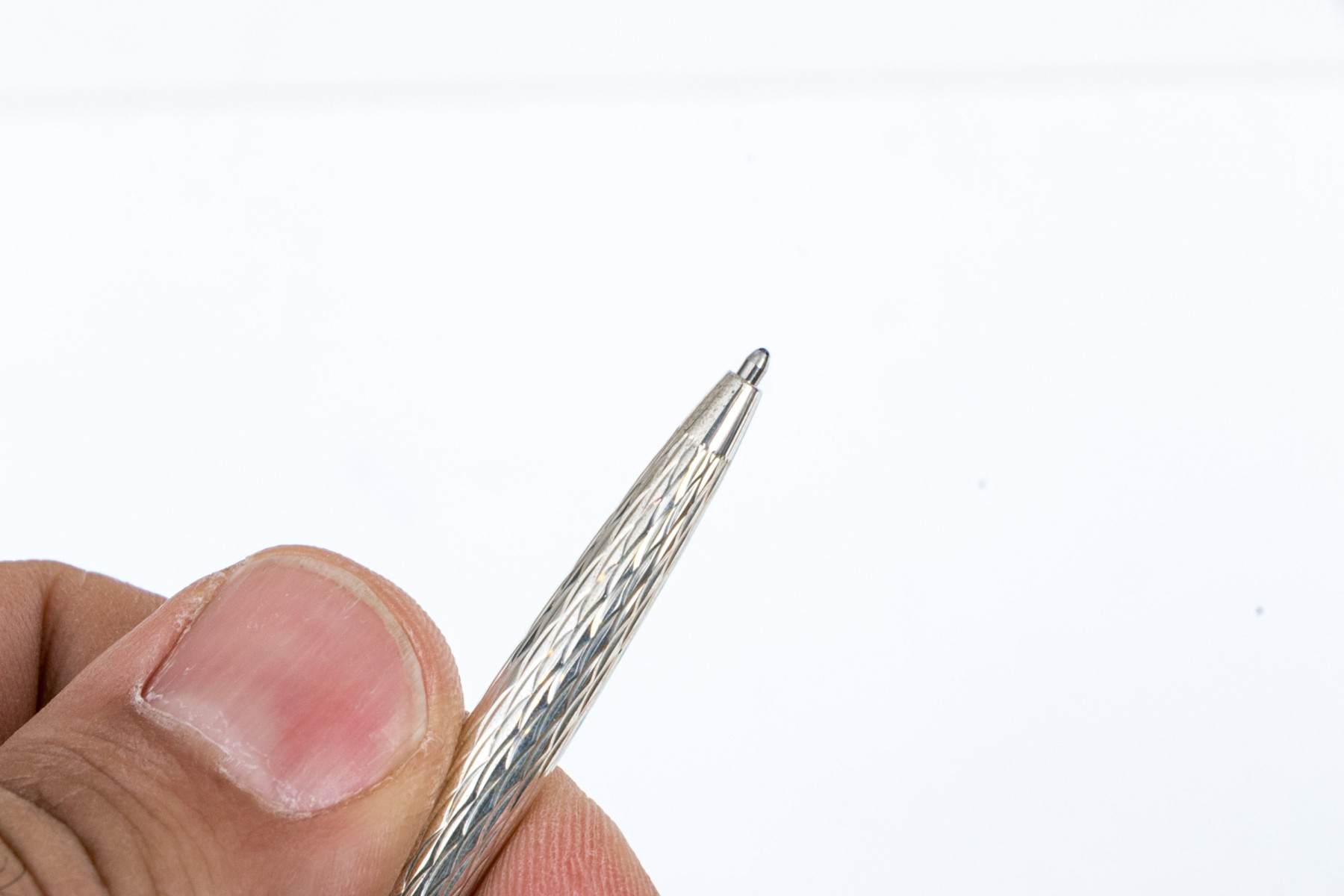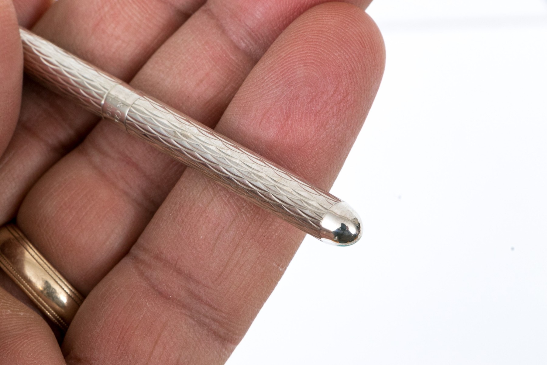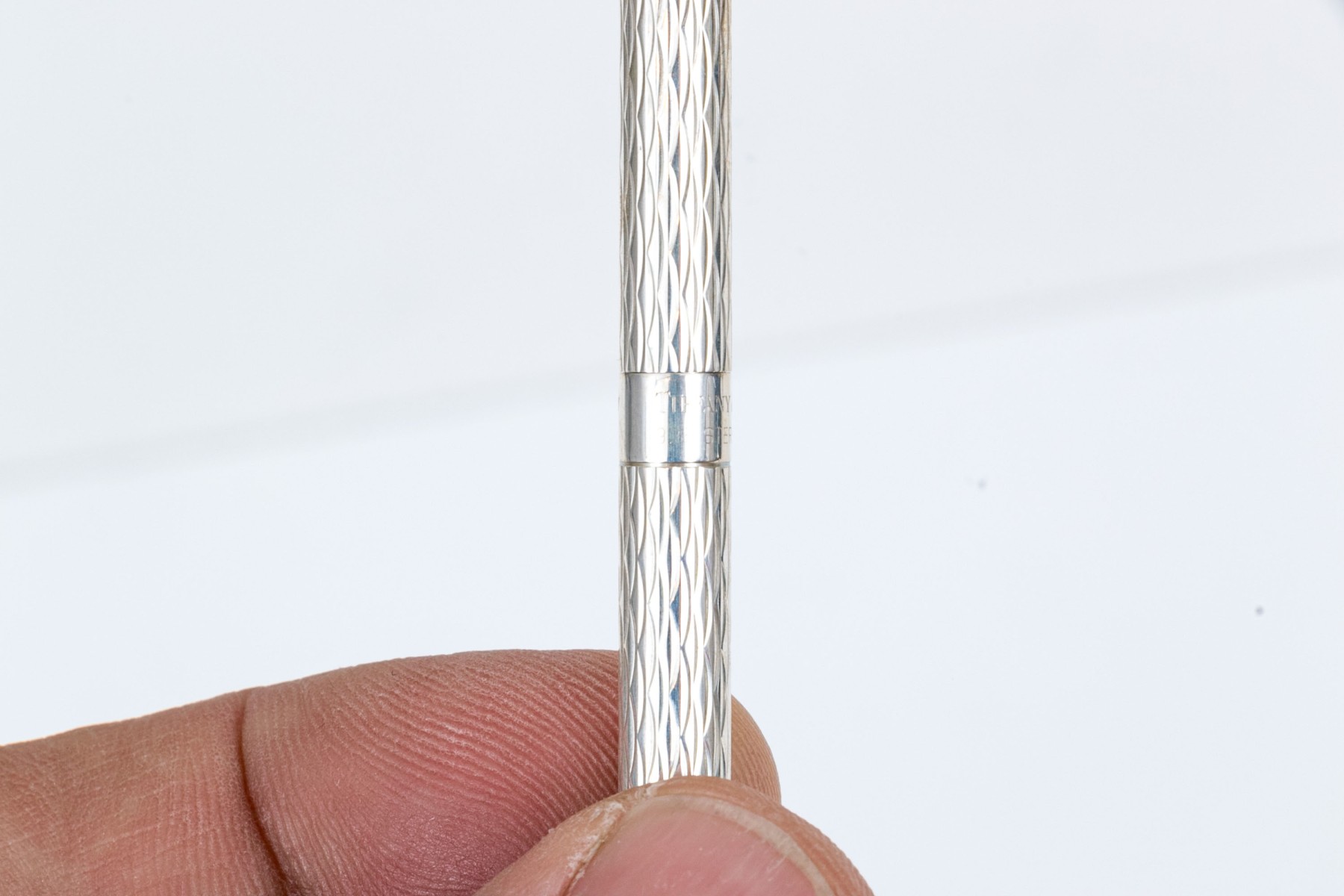 A Tiffany and Company sterling silver pen. The pen has a diamond cut design with twist open top.