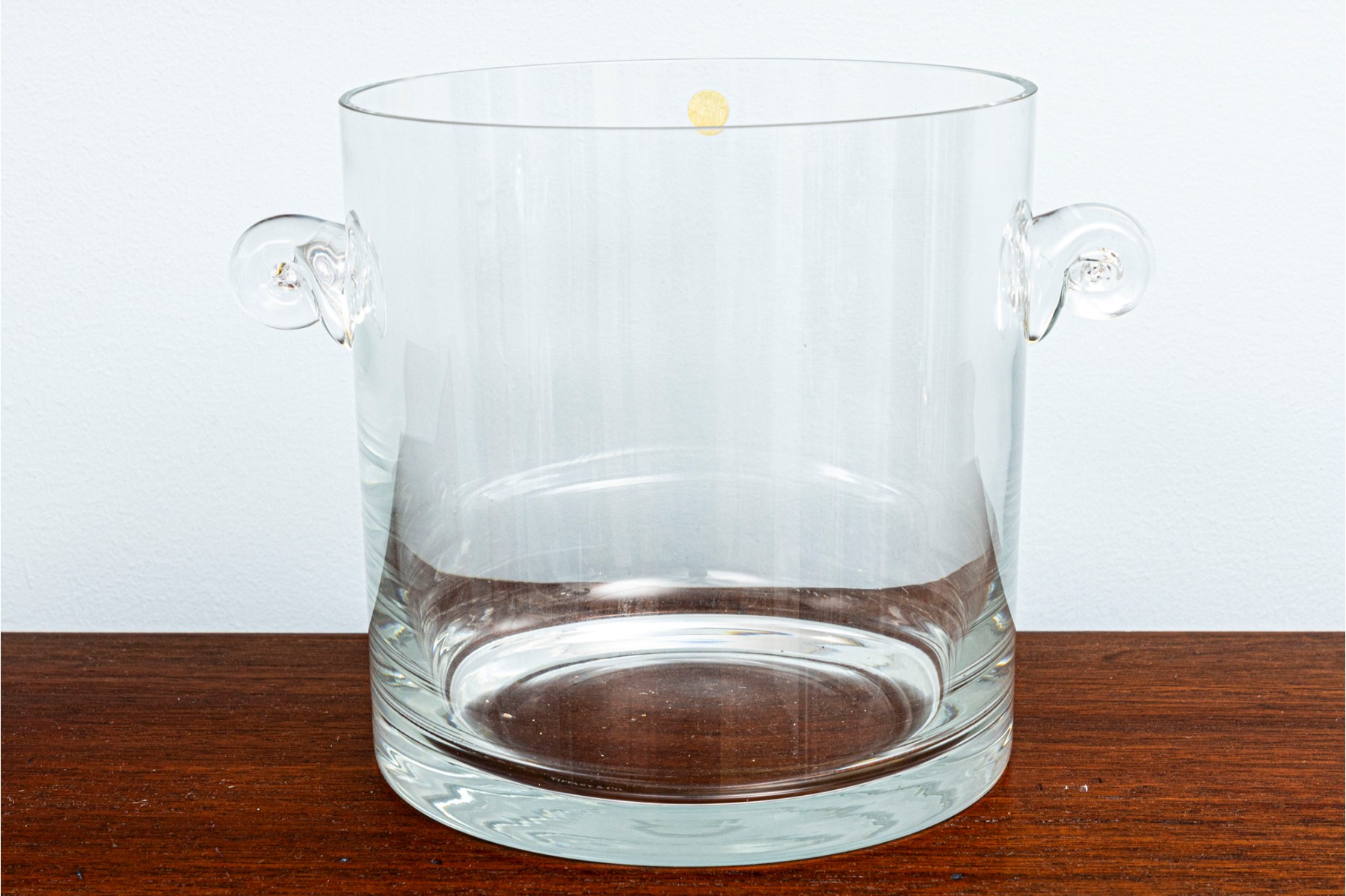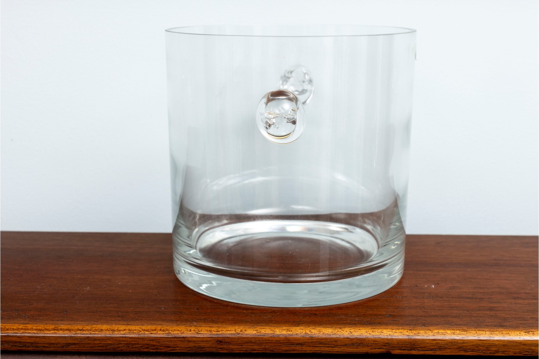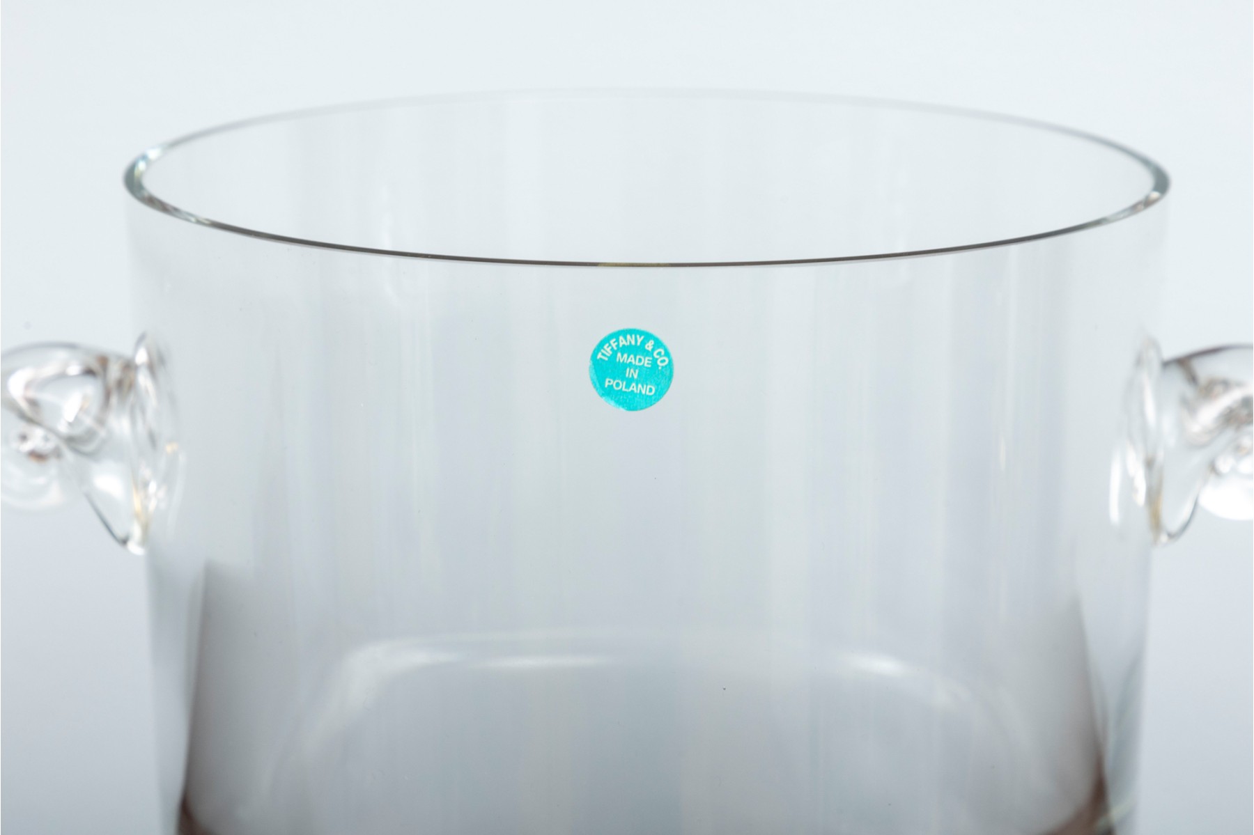 A wonderful vintage Tiffany & Co. crystal ice bucket with a cylindrical body flanked by stout scrolled handles.