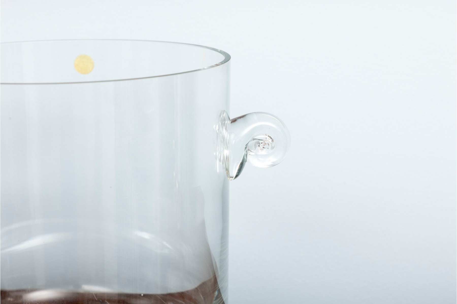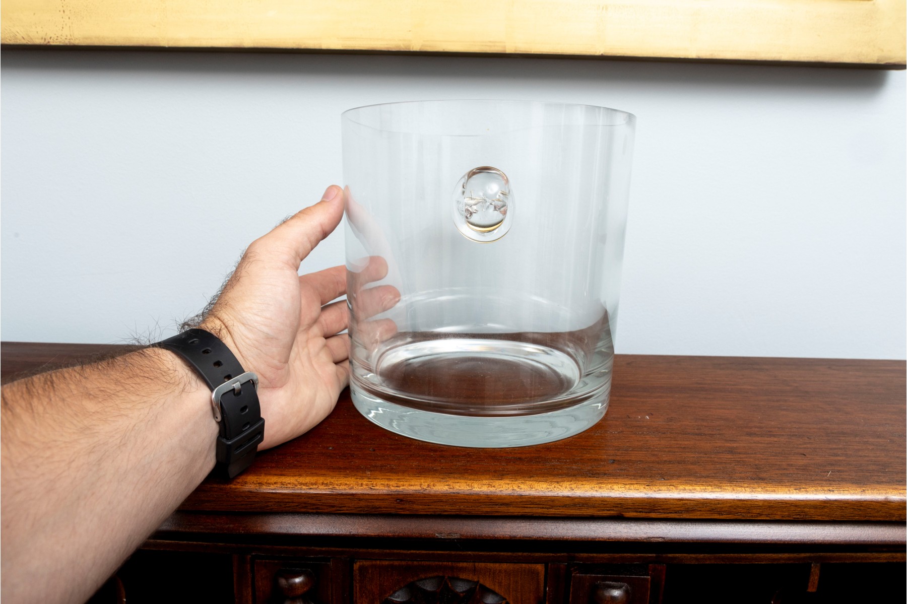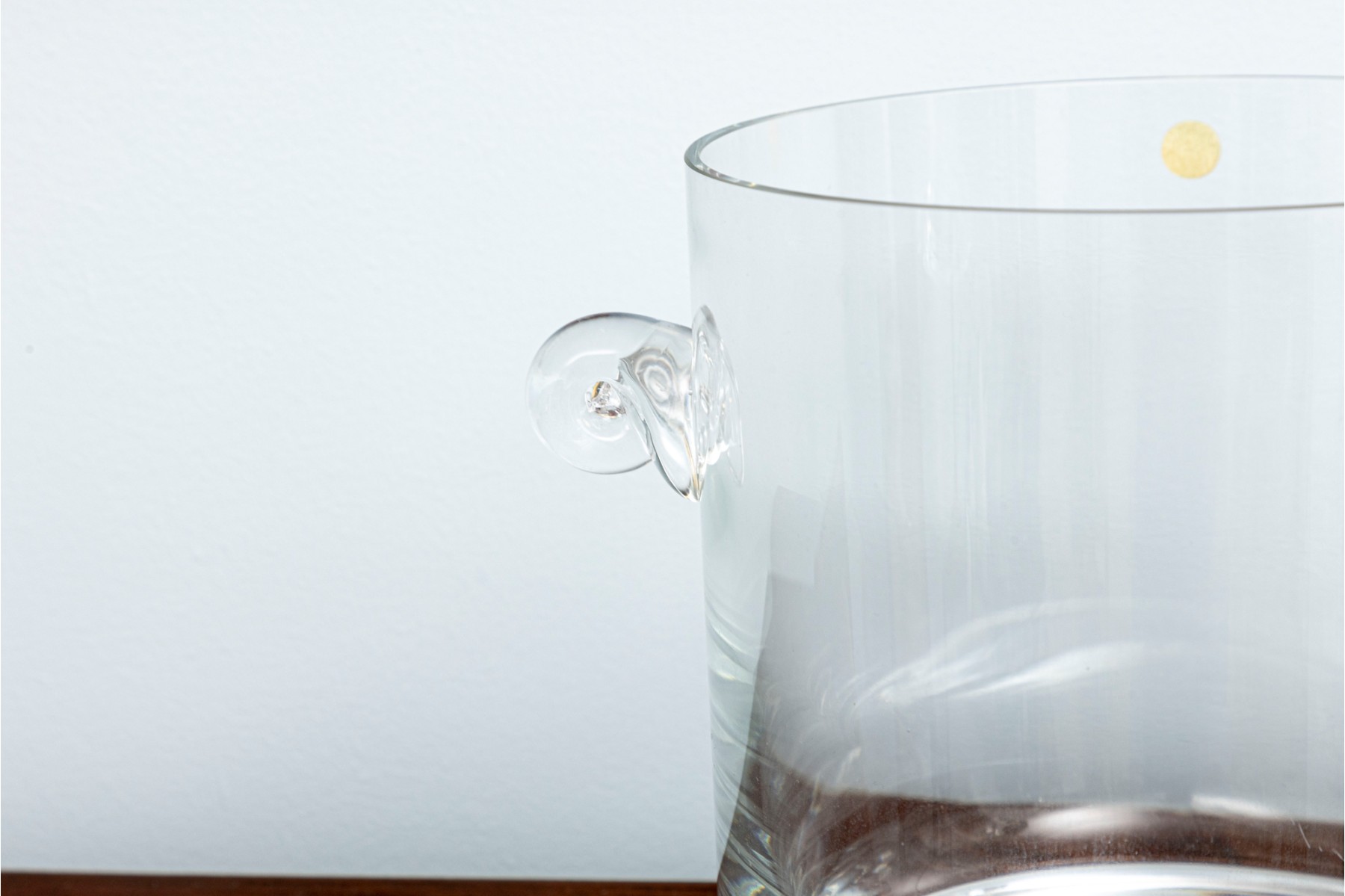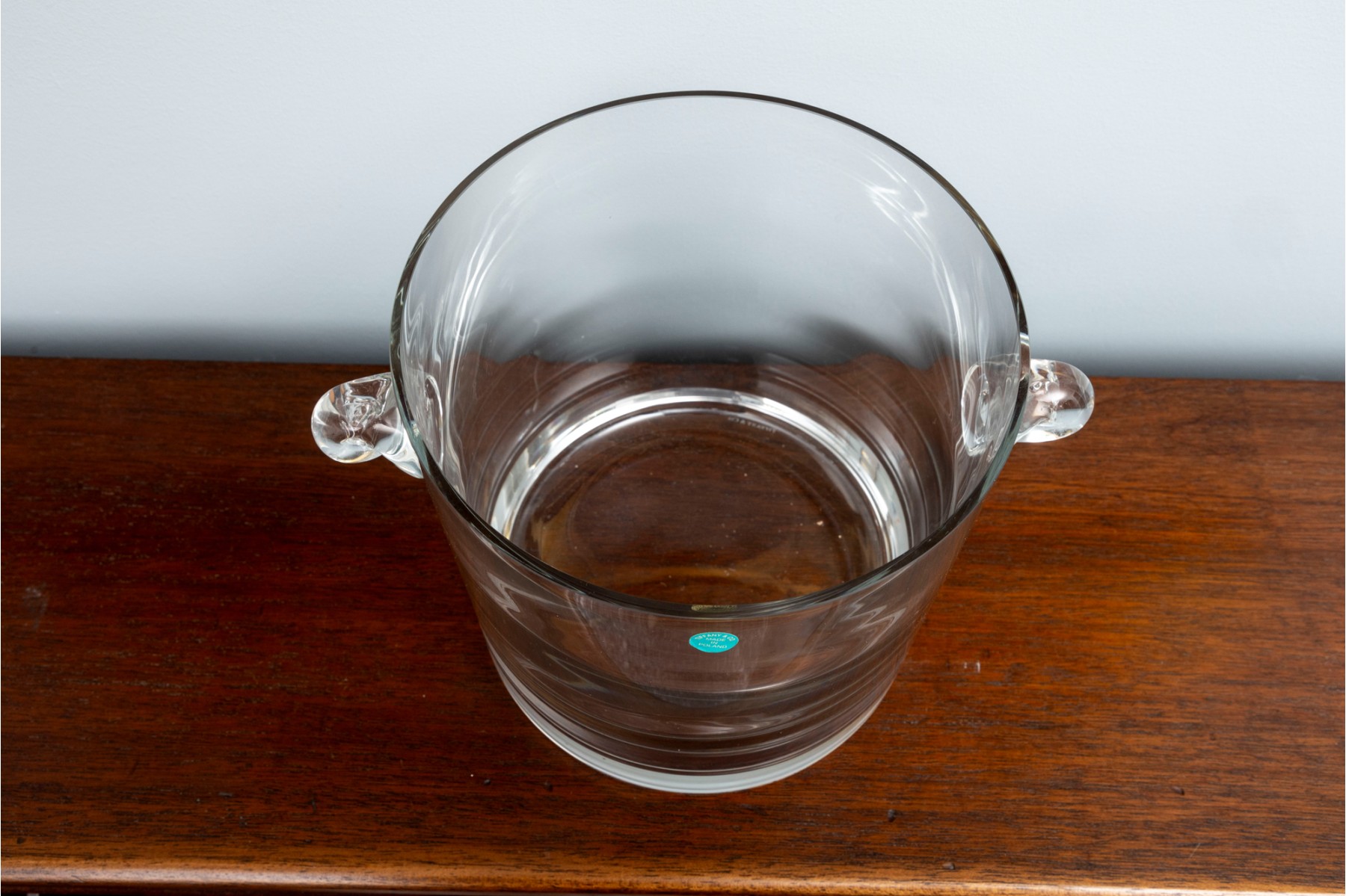 A wonderful vintage Tiffany & Co. crystal ice bucket with a cylindrical body flanked by stout scrolled handles.