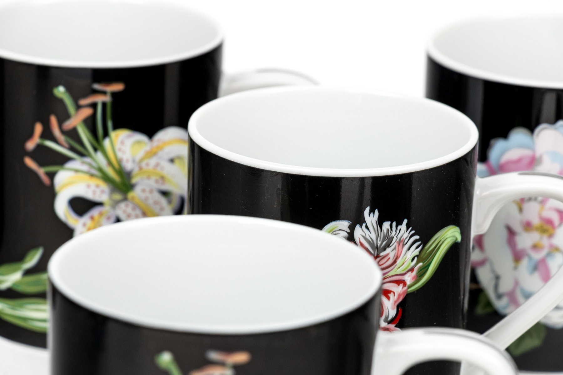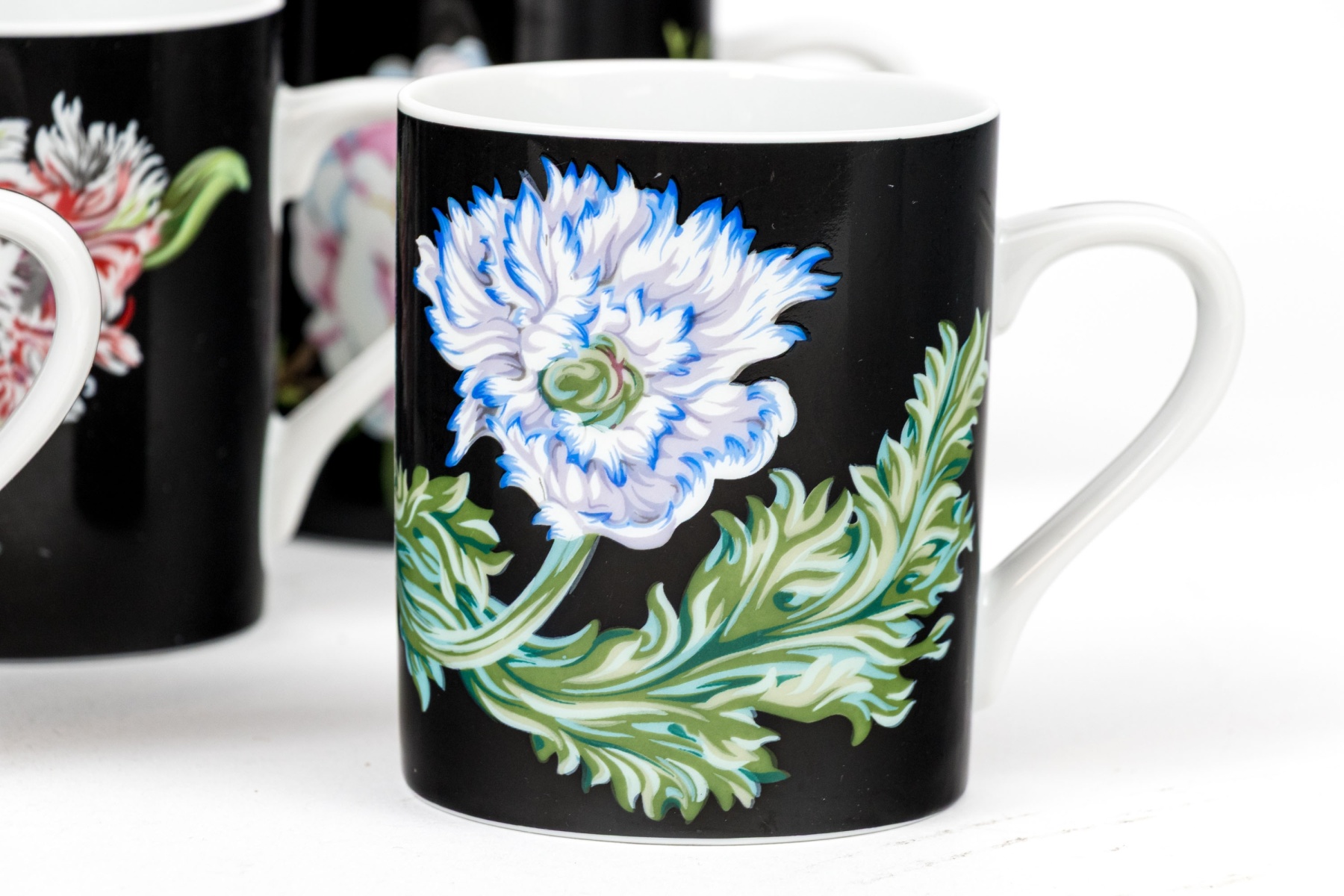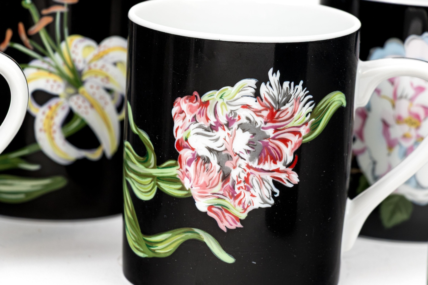 A beautiful set of eight Tiffany & Co. “Mrs. Delany’s Flowers” coffee cups, each decorated with meticulously rendered botanical illustrations inspired by the famed floral collages of Mary Delany. The delicate blooms and crisp porcelain forms create a refined, garden-inspired presentation. An elegant and collectible service from one of Tiffany’s most beloved decorative patterns.