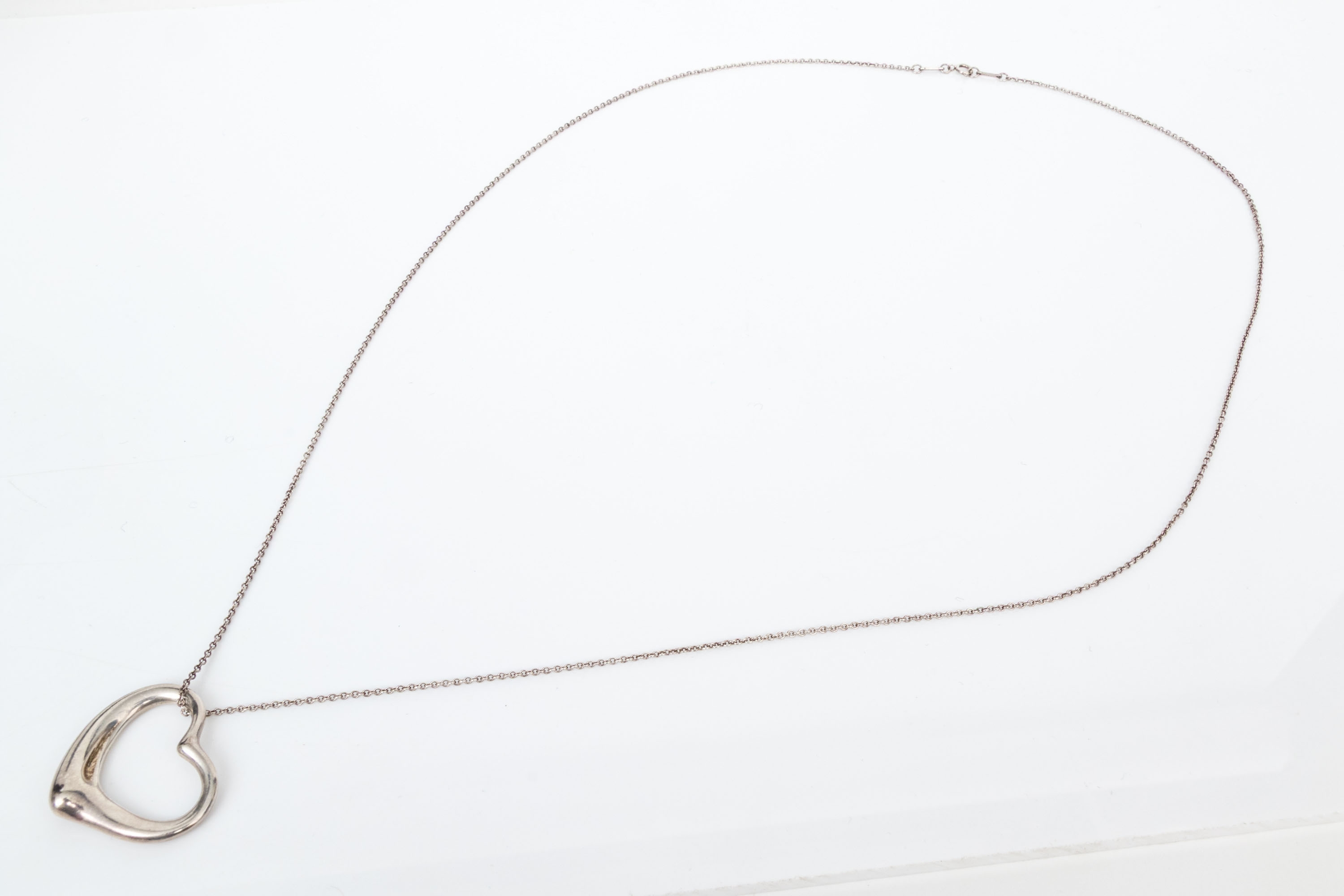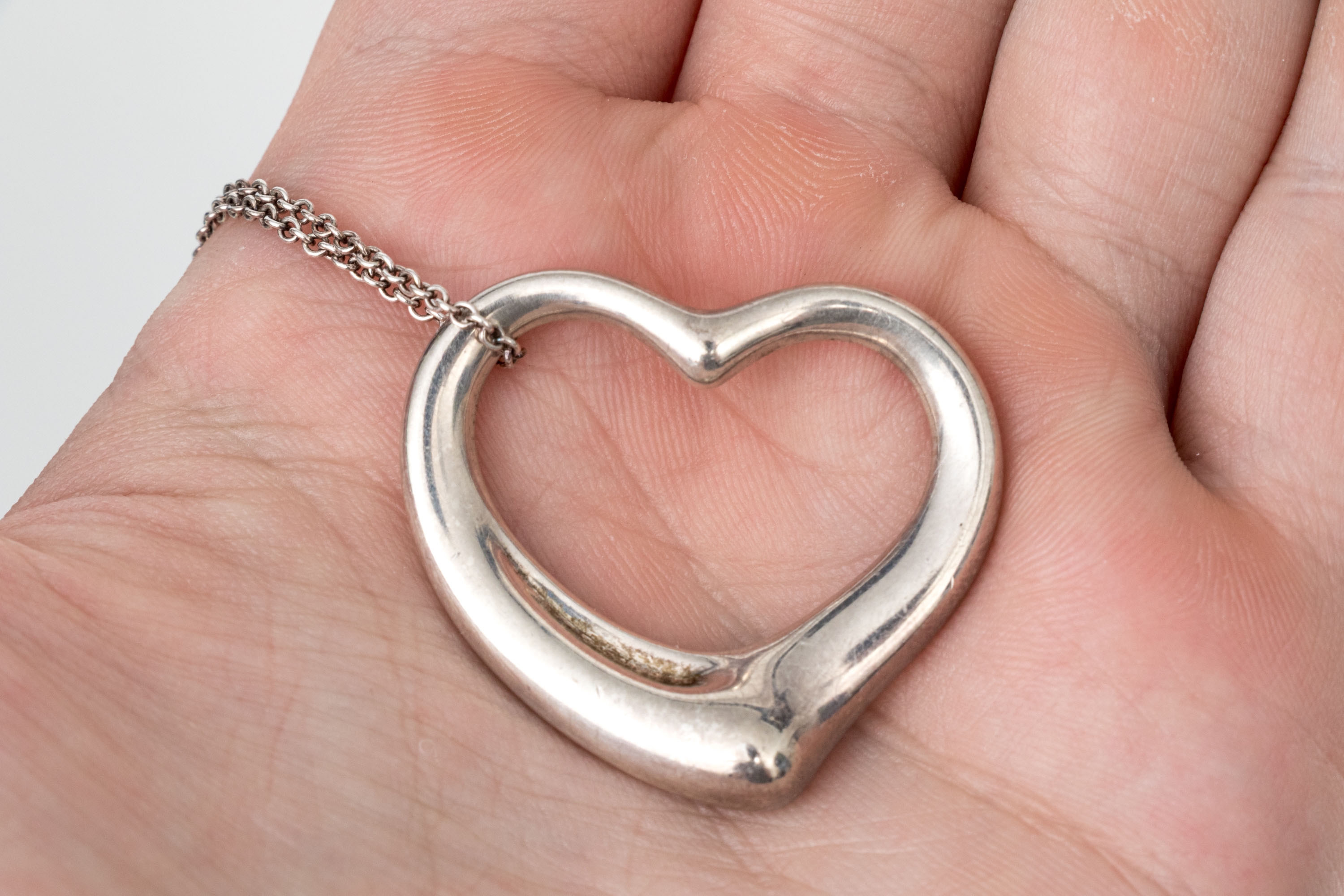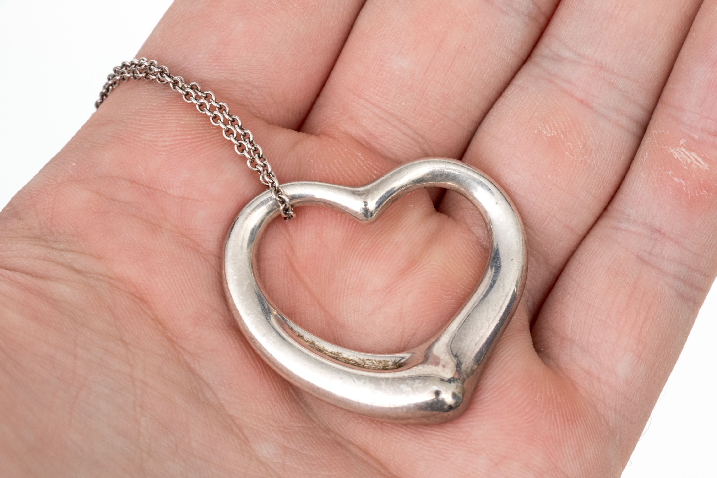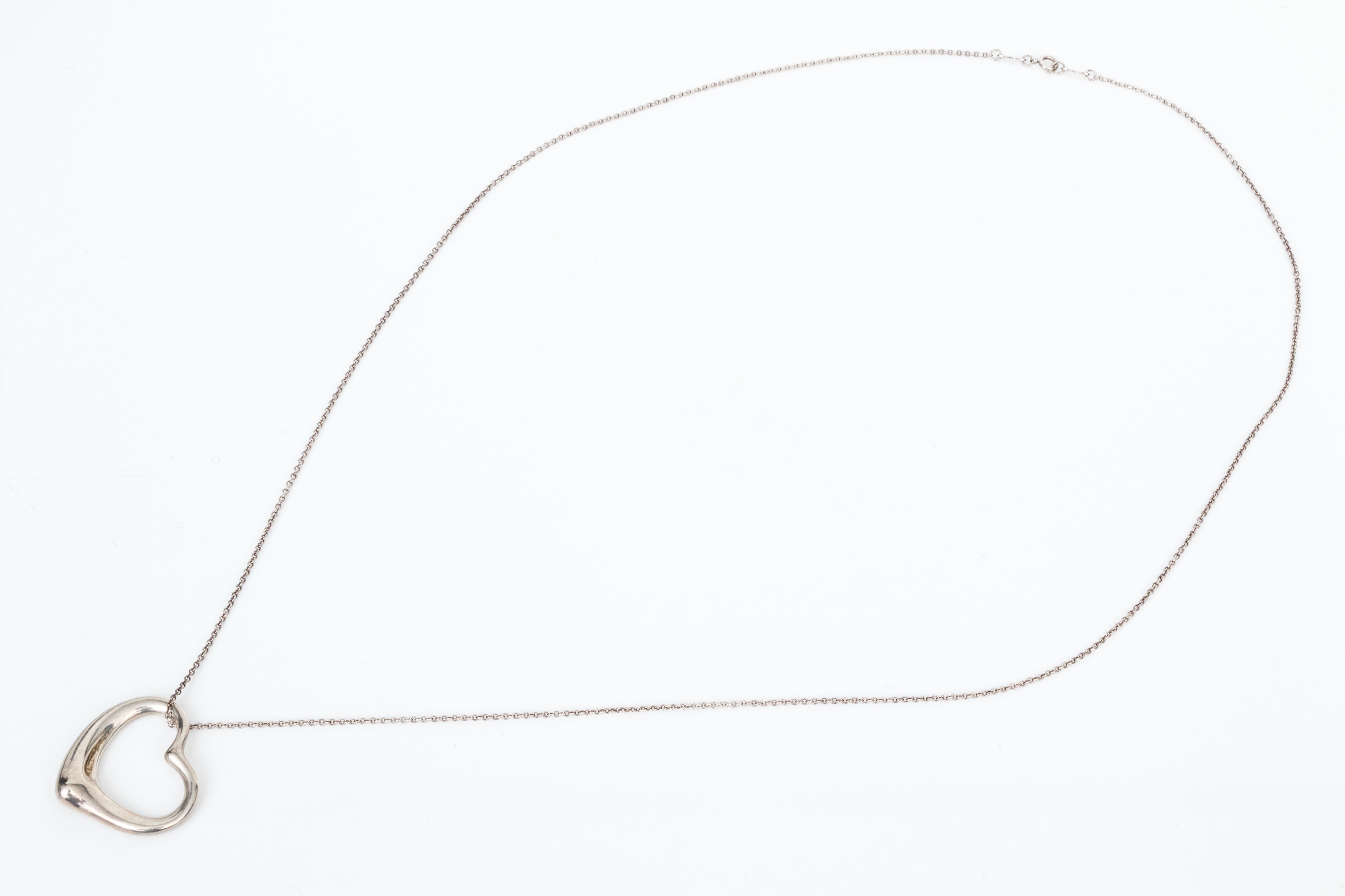 Tiffany & Co. sterling Elsa Peretti large open heart pendant, with opera length chain