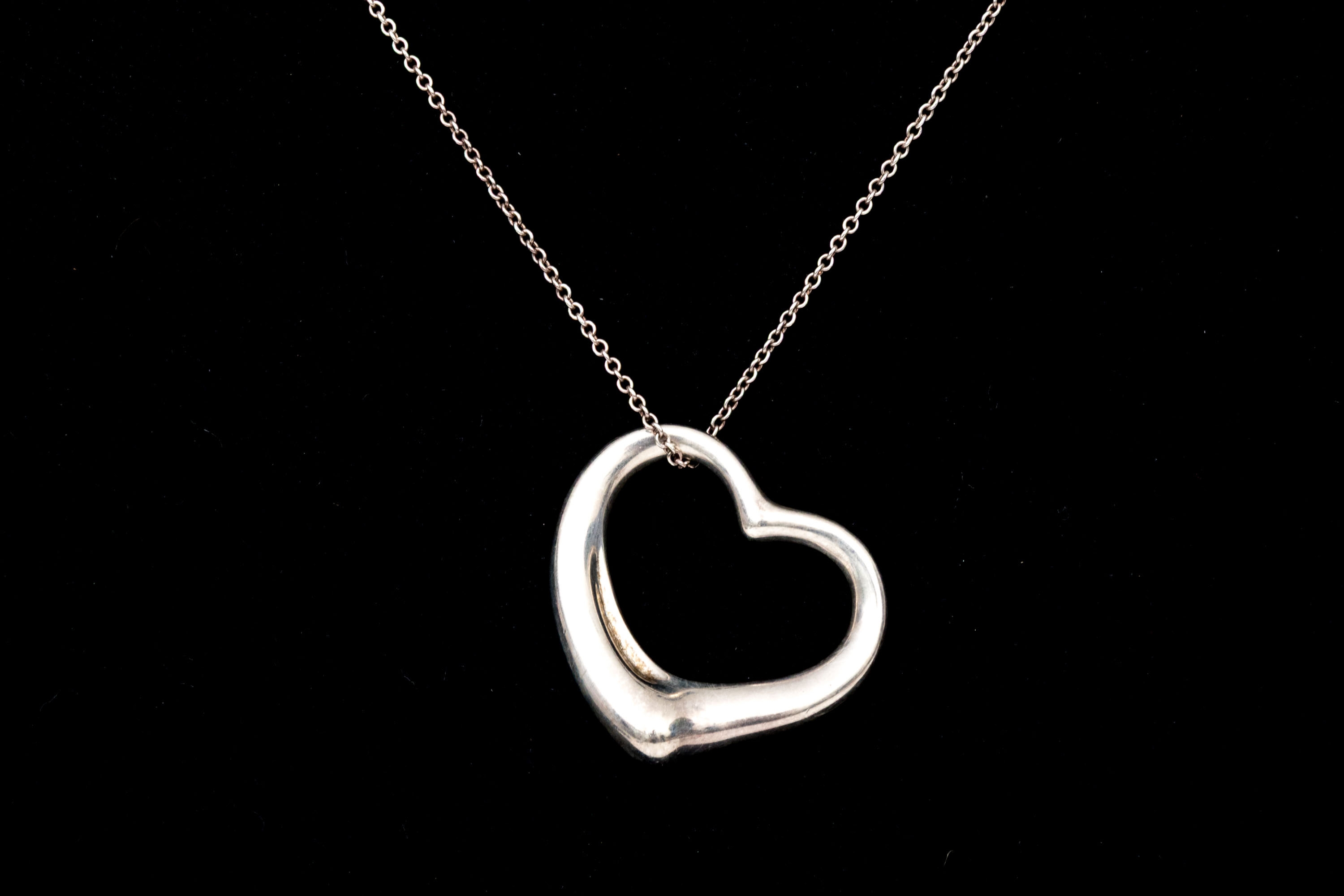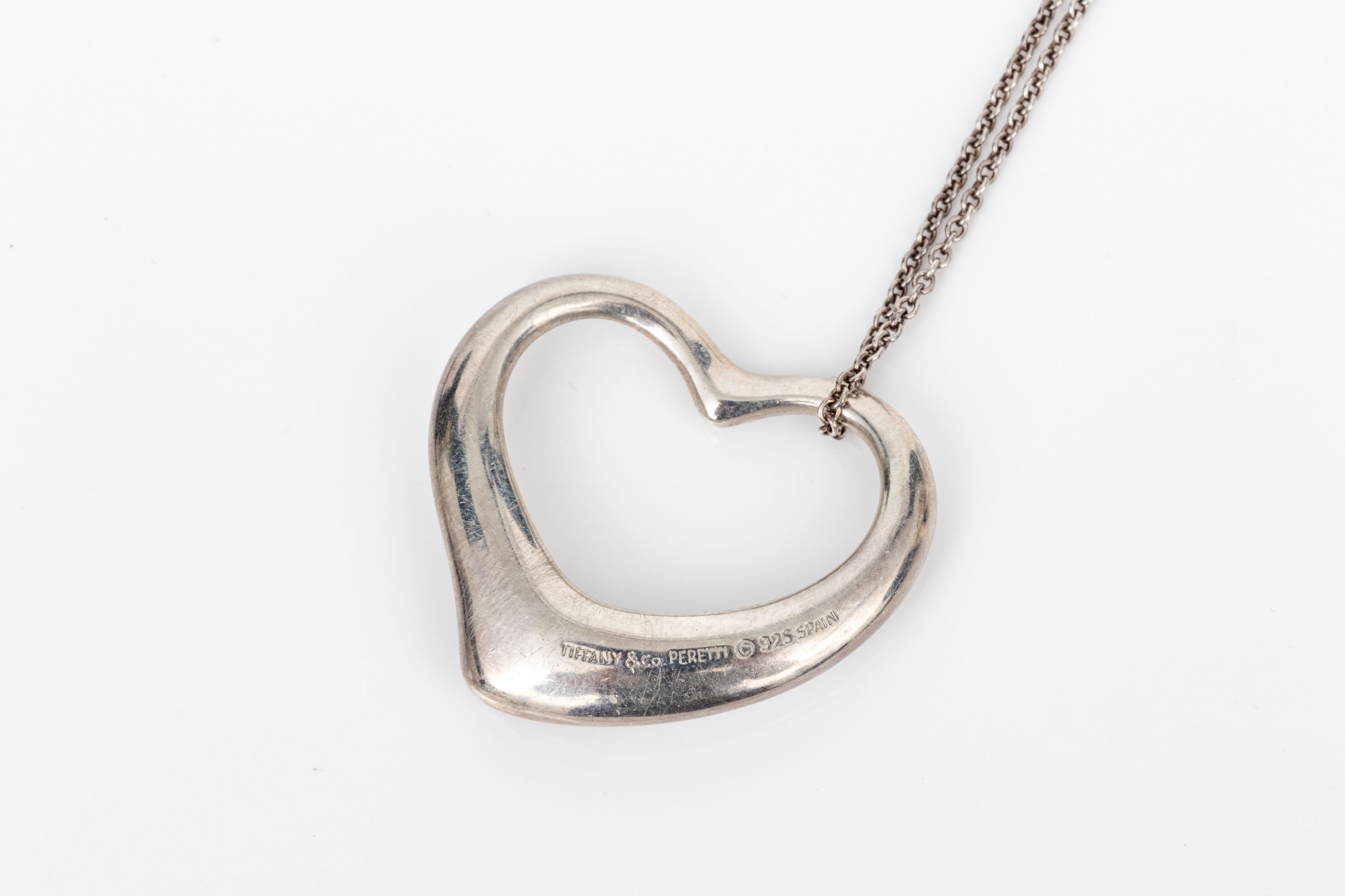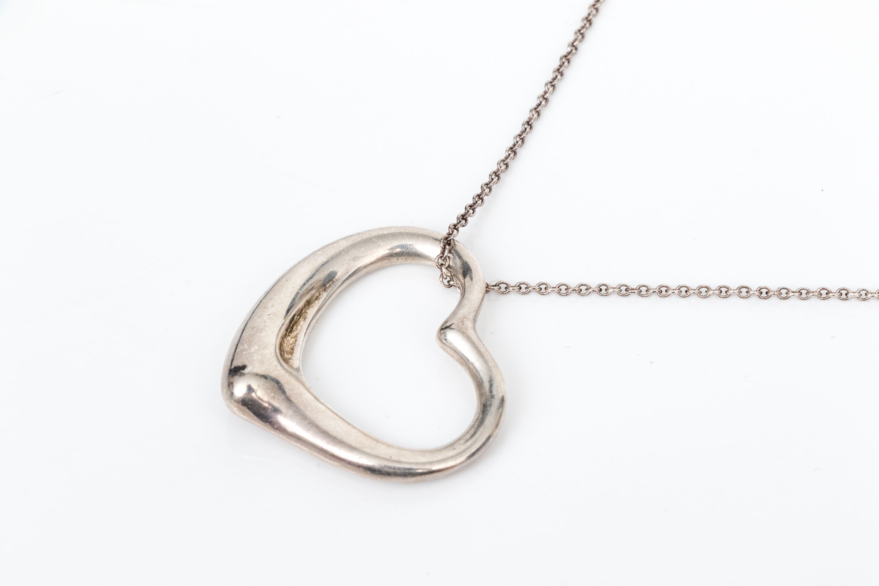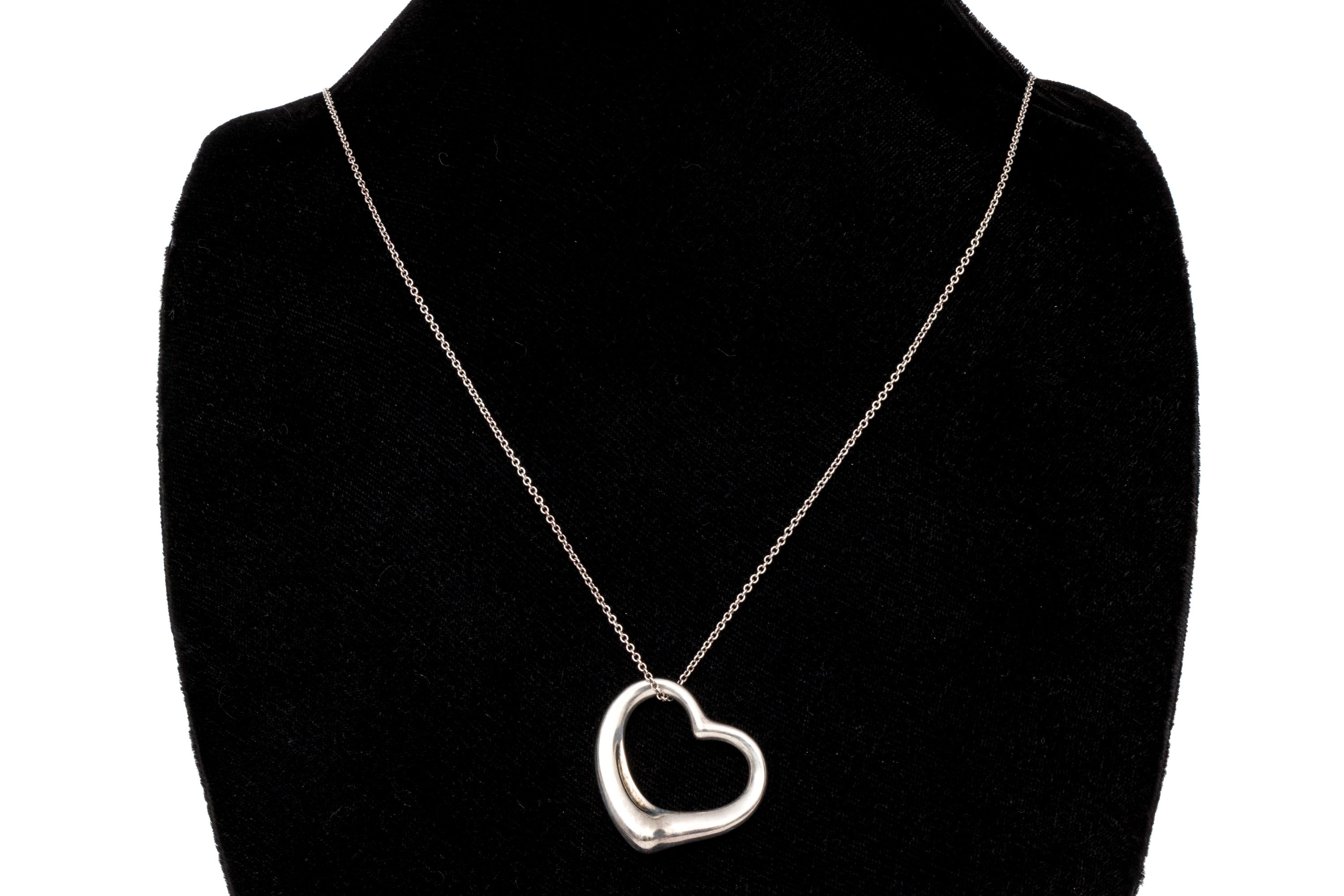 Tiffany & Co. sterling Elsa Peretti large open heart pendant, with opera length chain