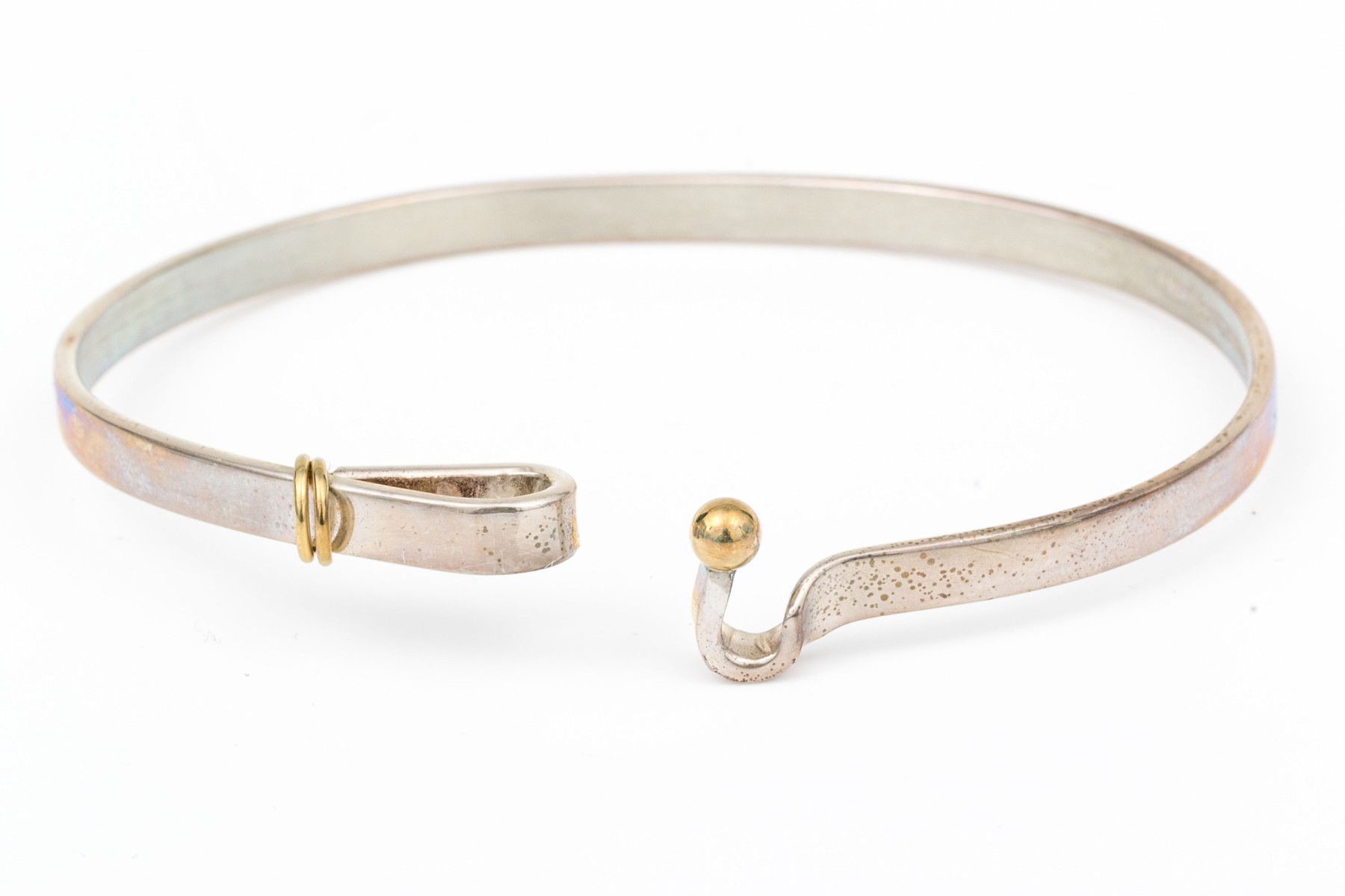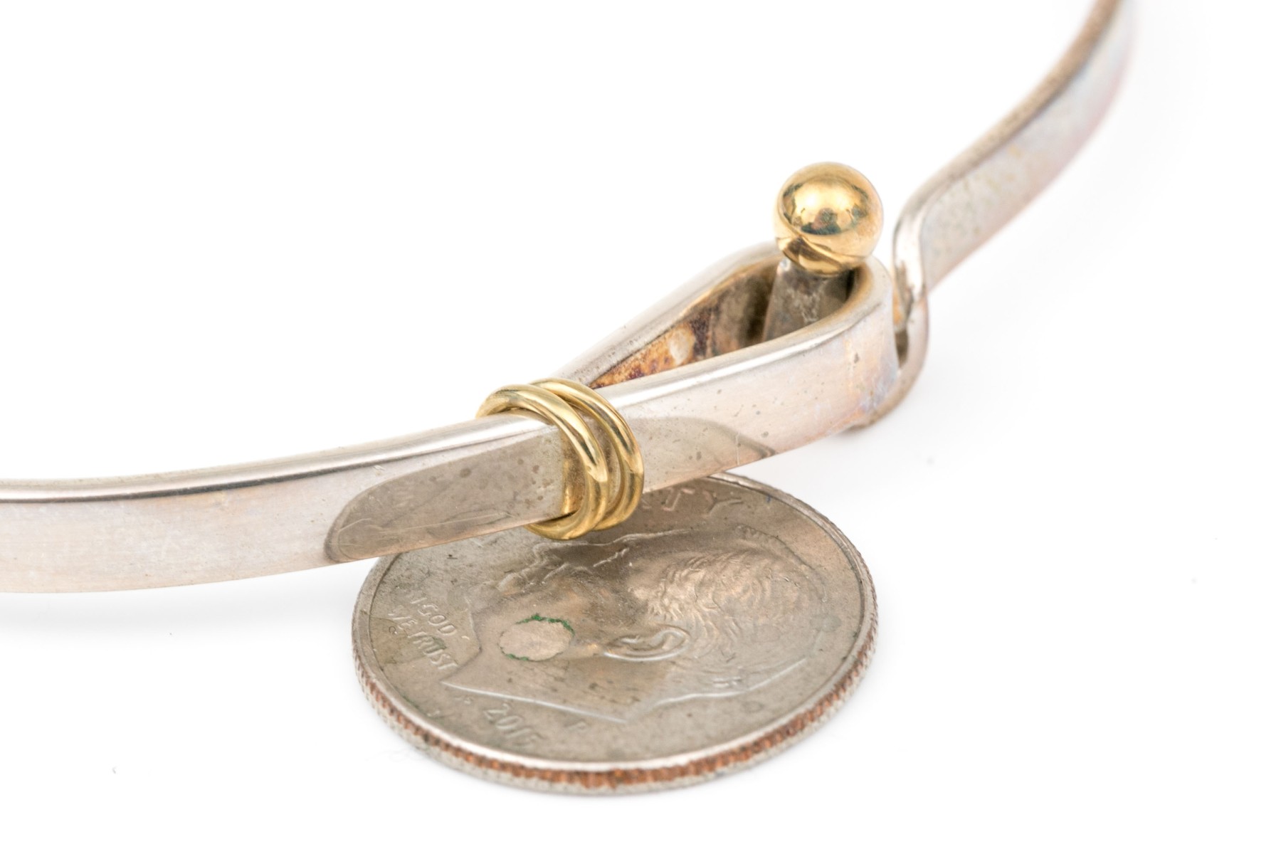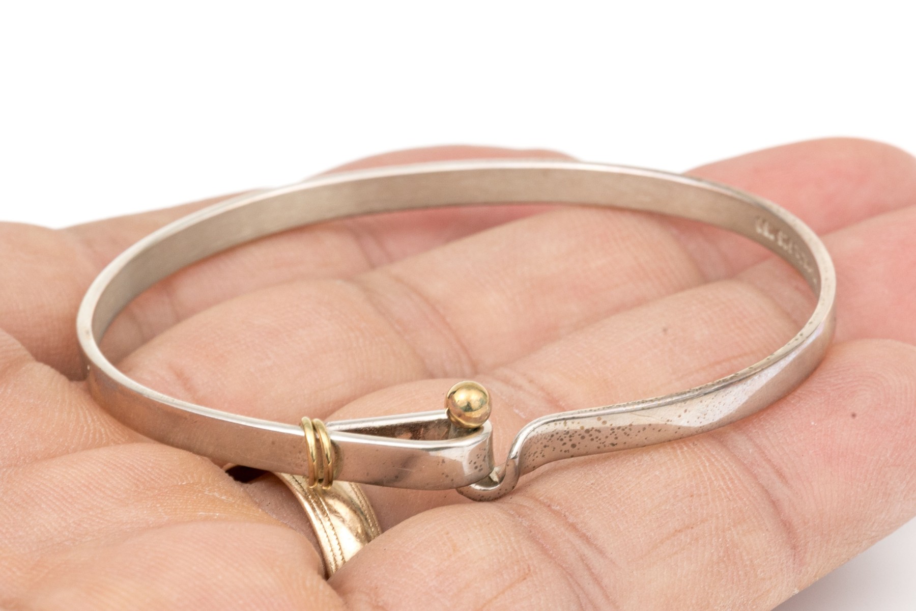 Tiffany & Co. sterling silver and 18k yellow gold ring end hook and eye bangle bracelet