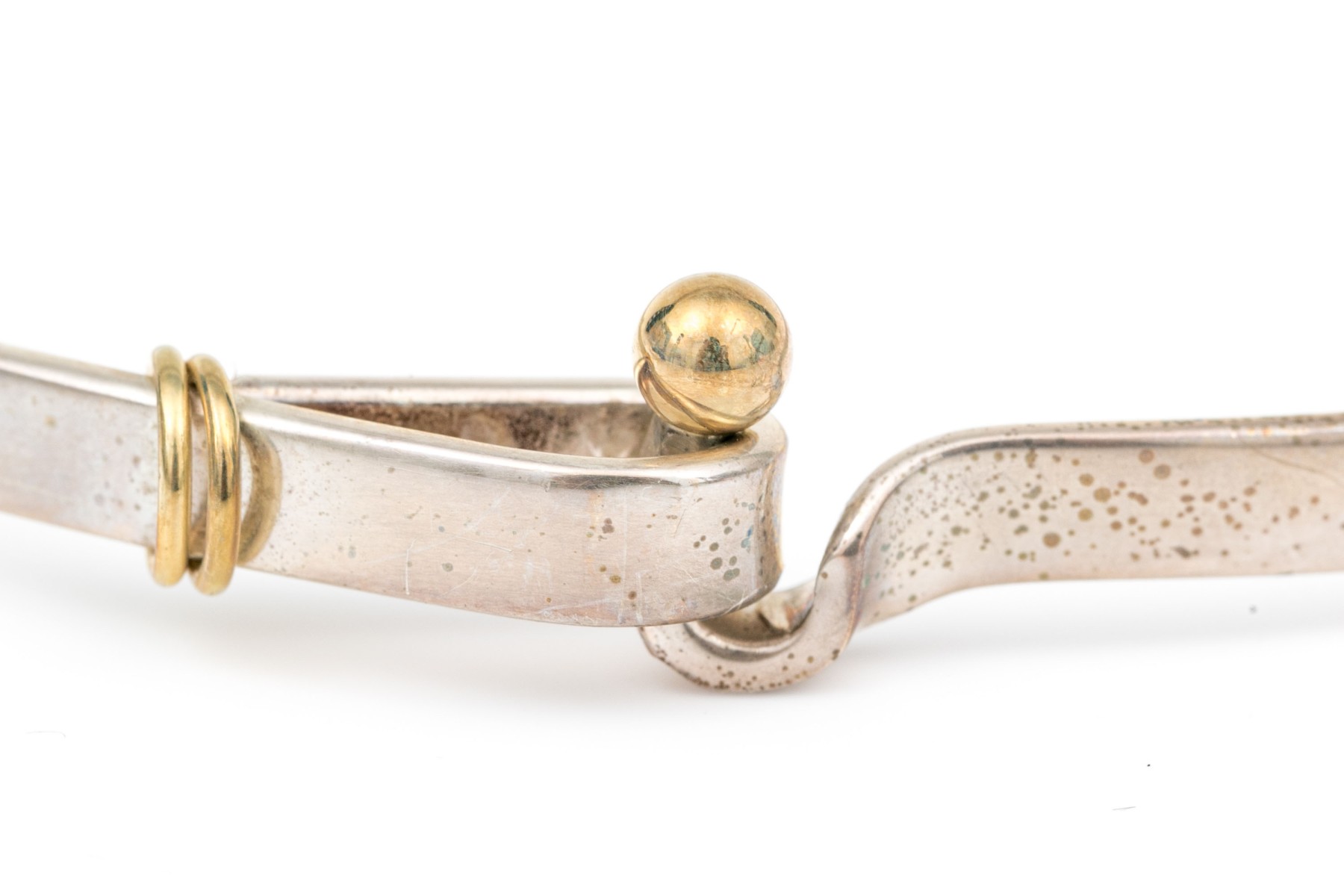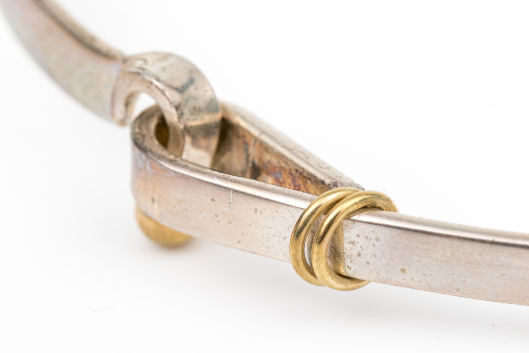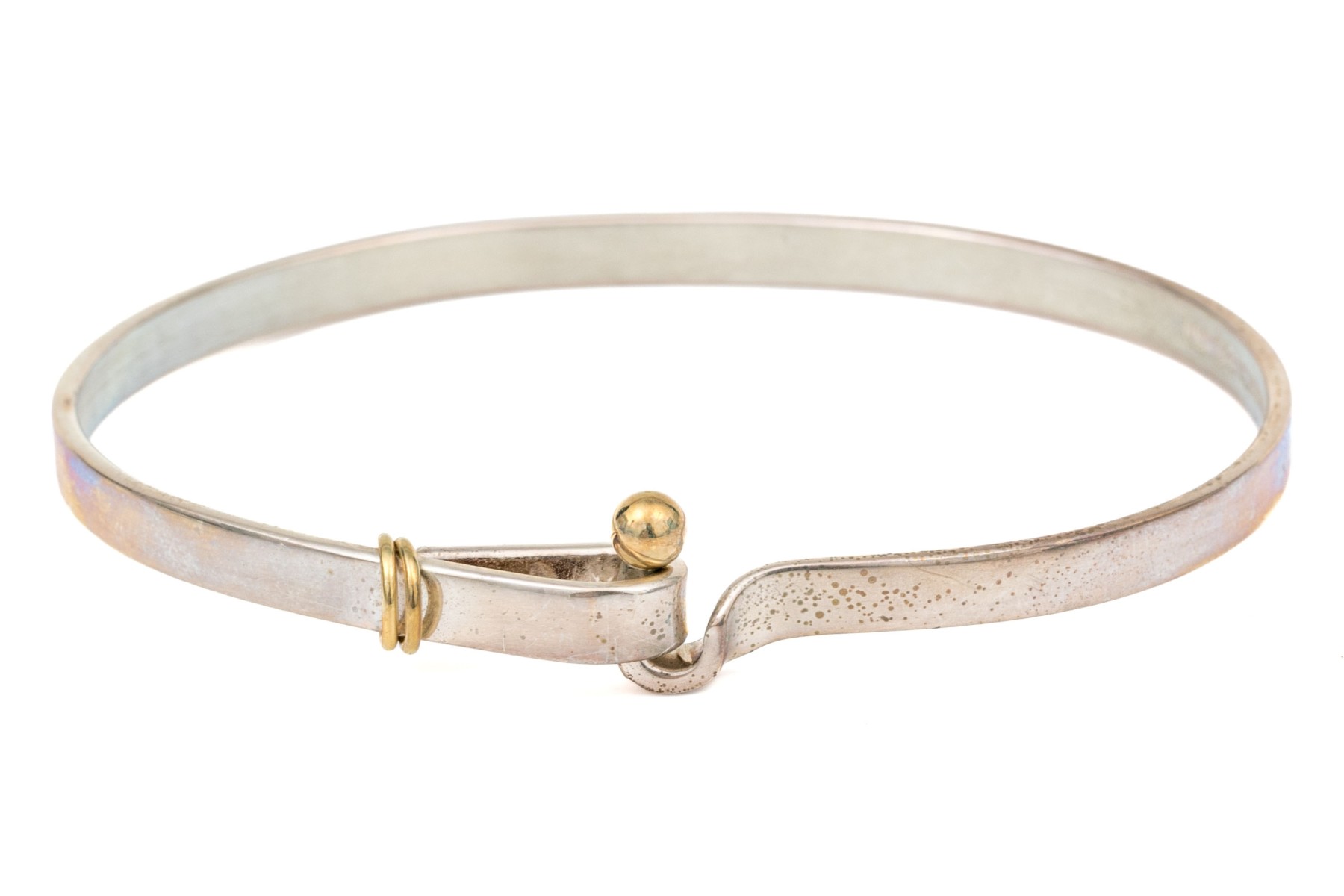 Tiffany & Co. sterling silver and 18k yellow gold ring end hook and eye bangle bracelet