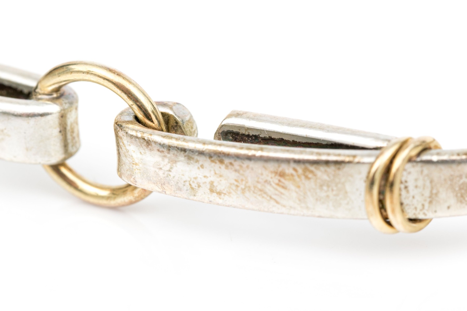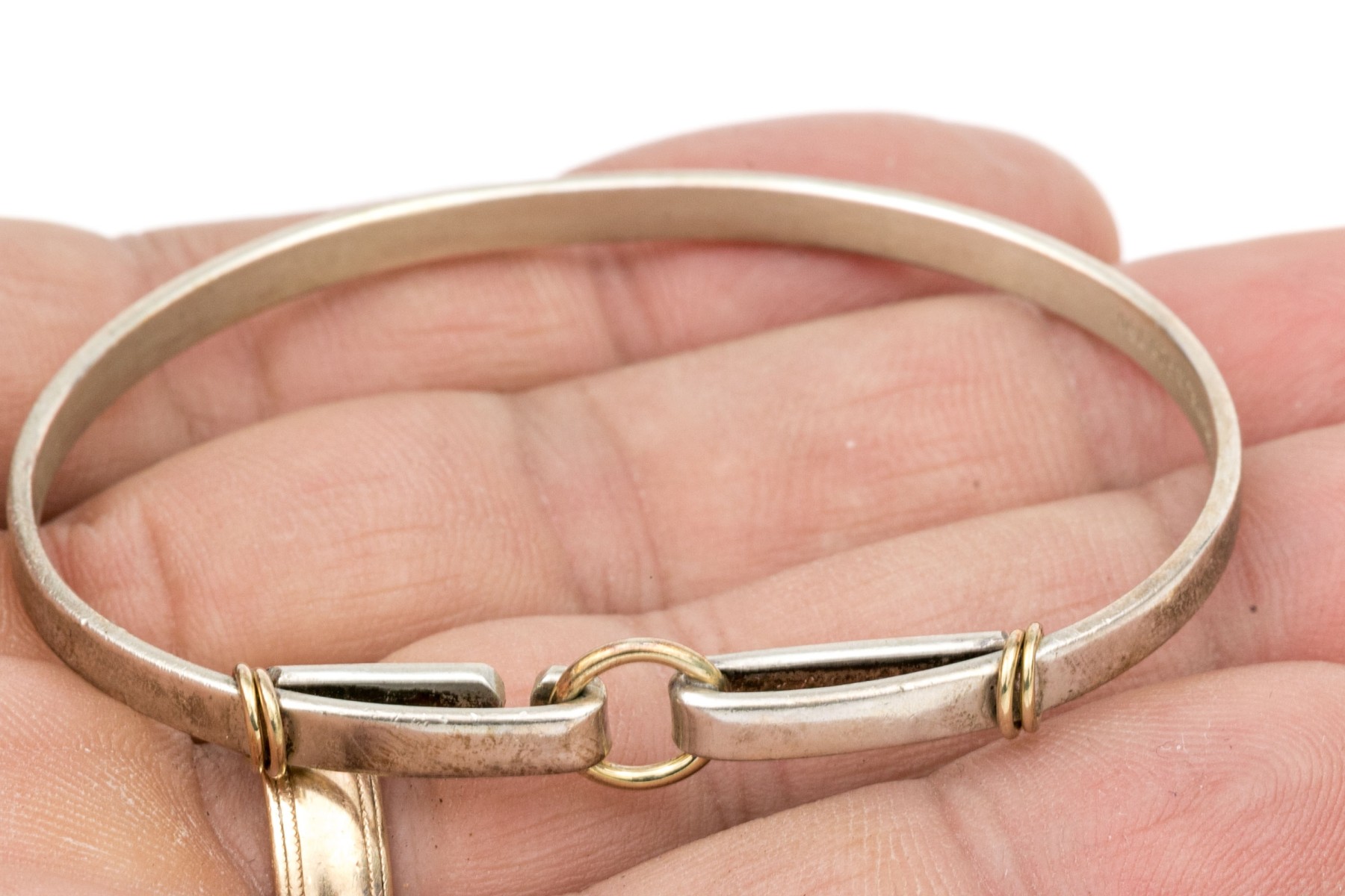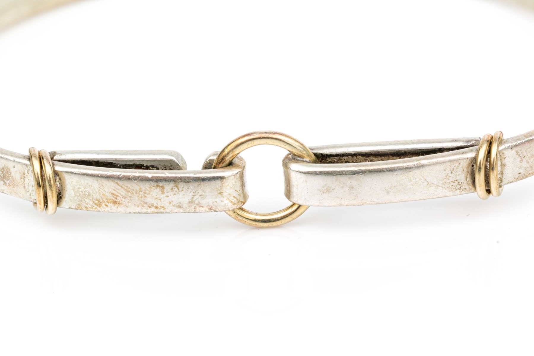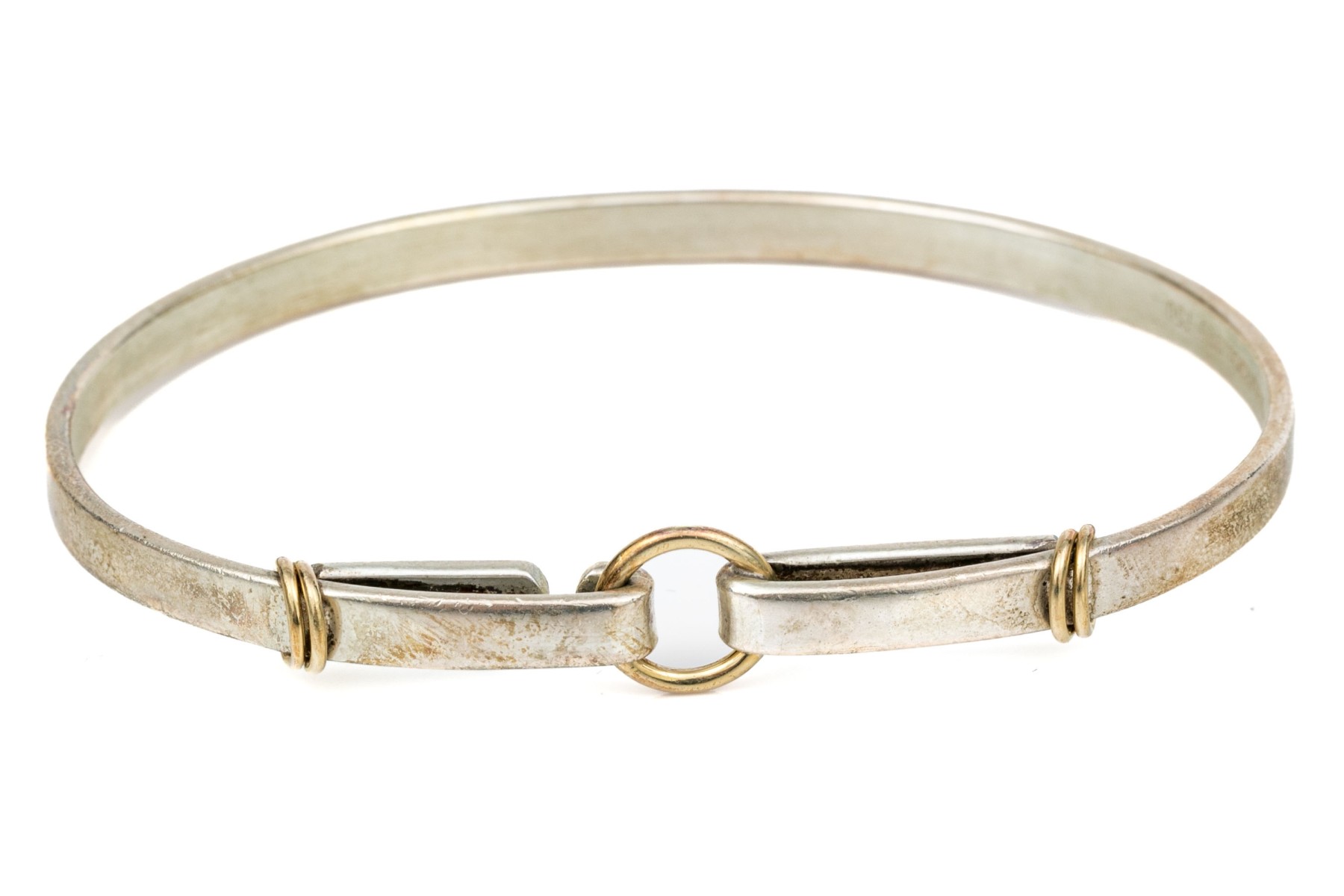 Tiffany & Co. sterling silver and 18k yellow gold striking ring motif bangle bracelet