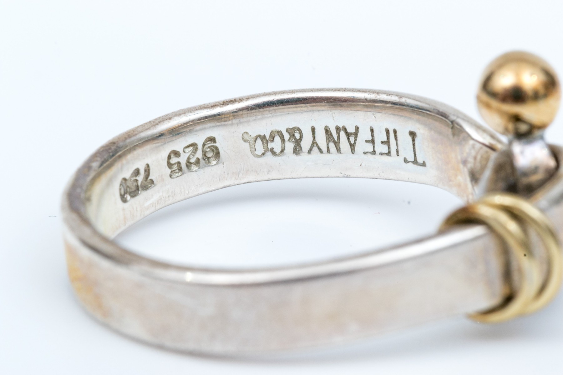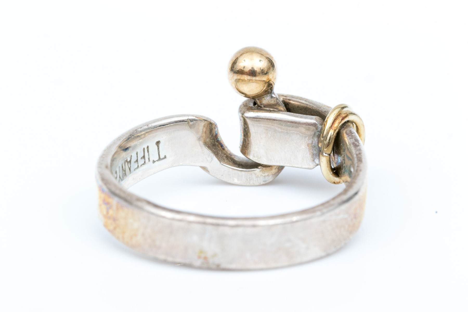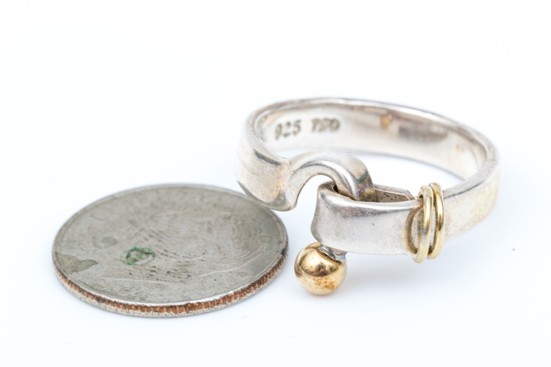 Tiffany & Co. sterling silver and 18k yellow gold classic hook and eye ring, size 7