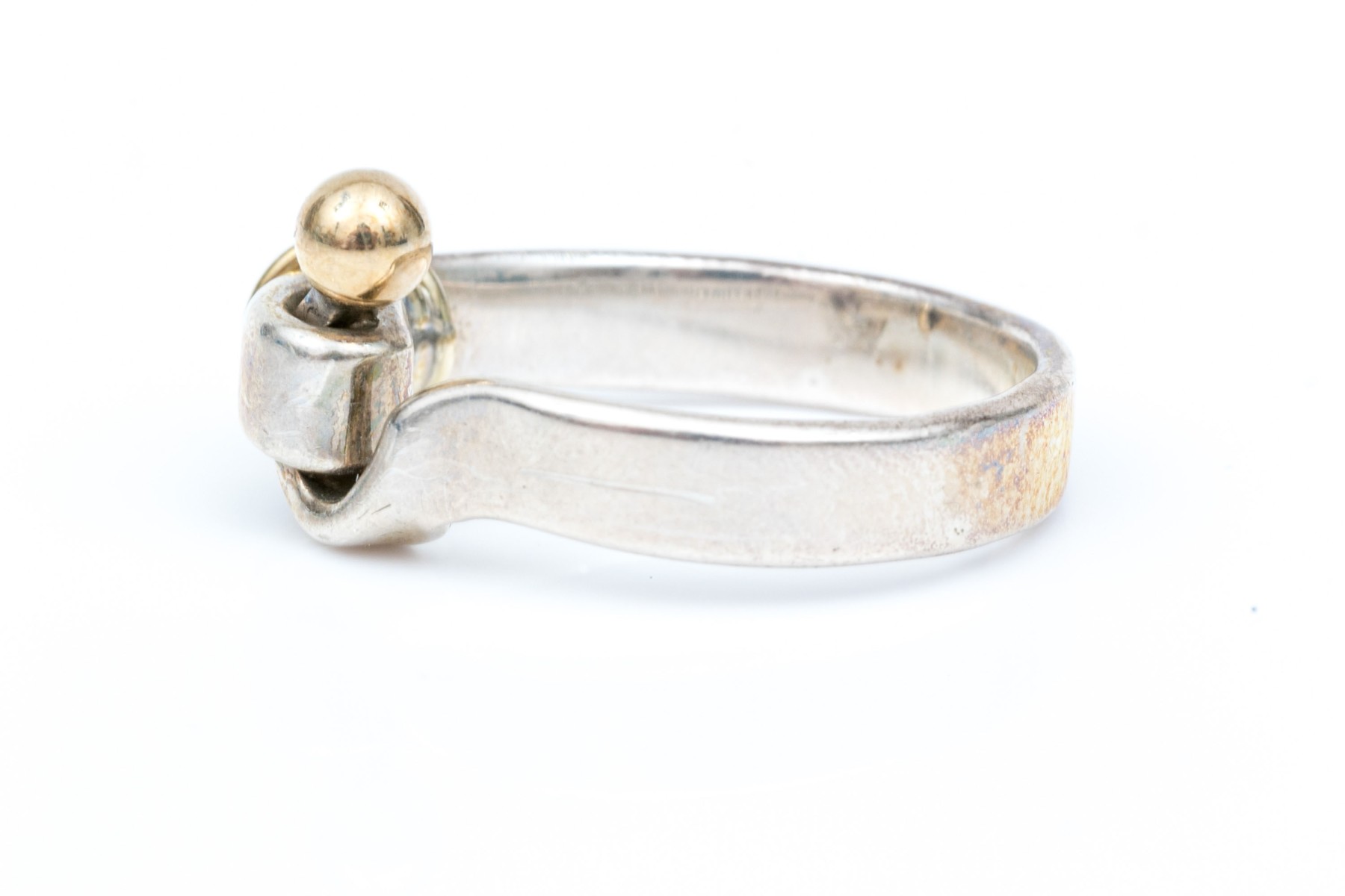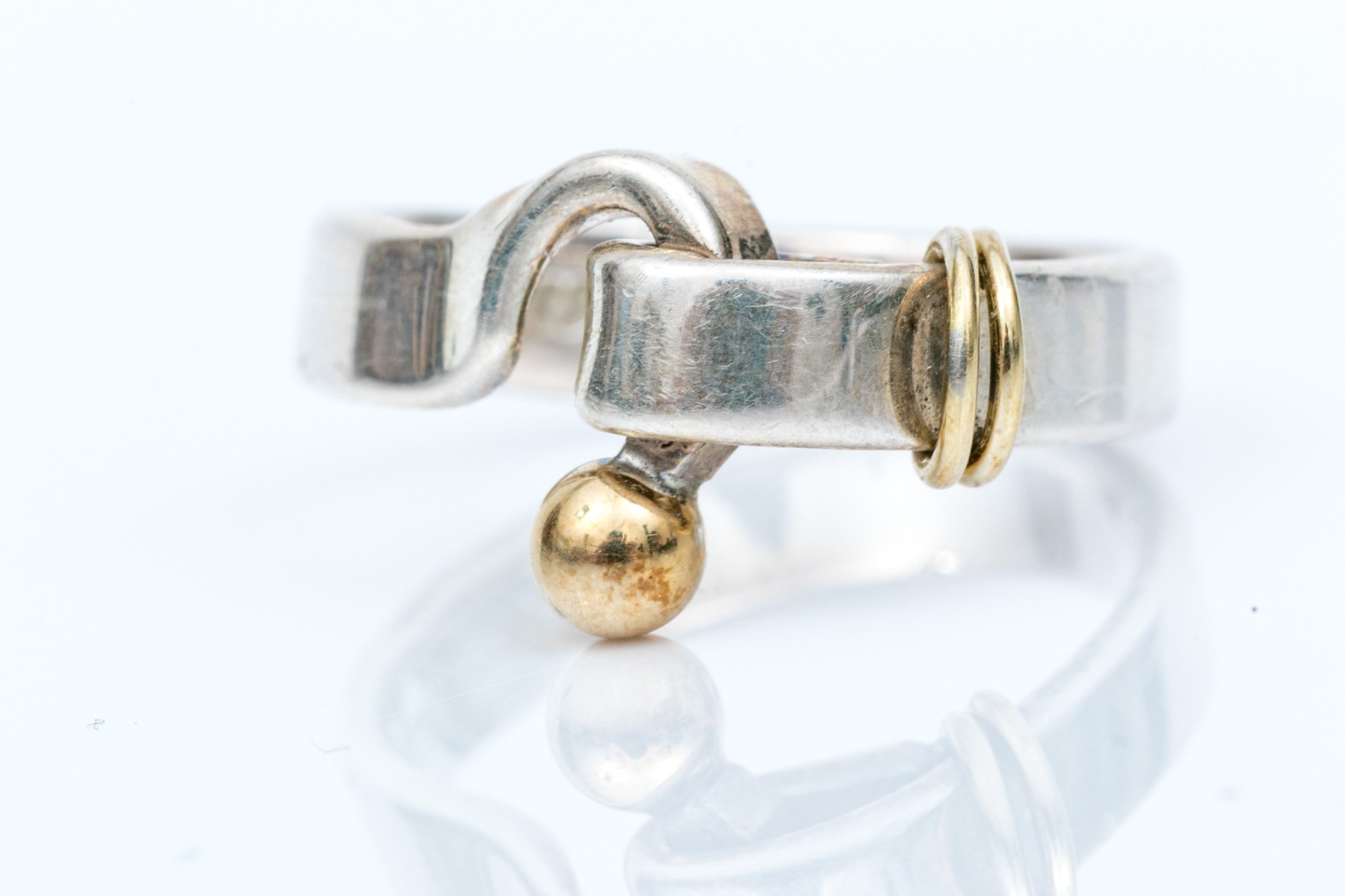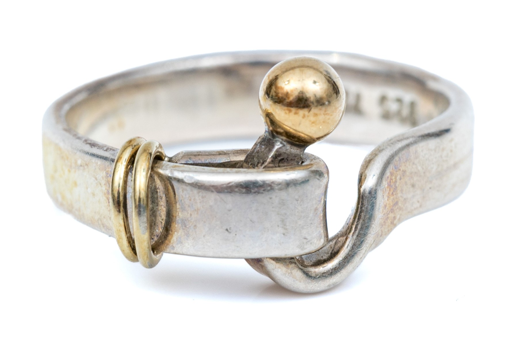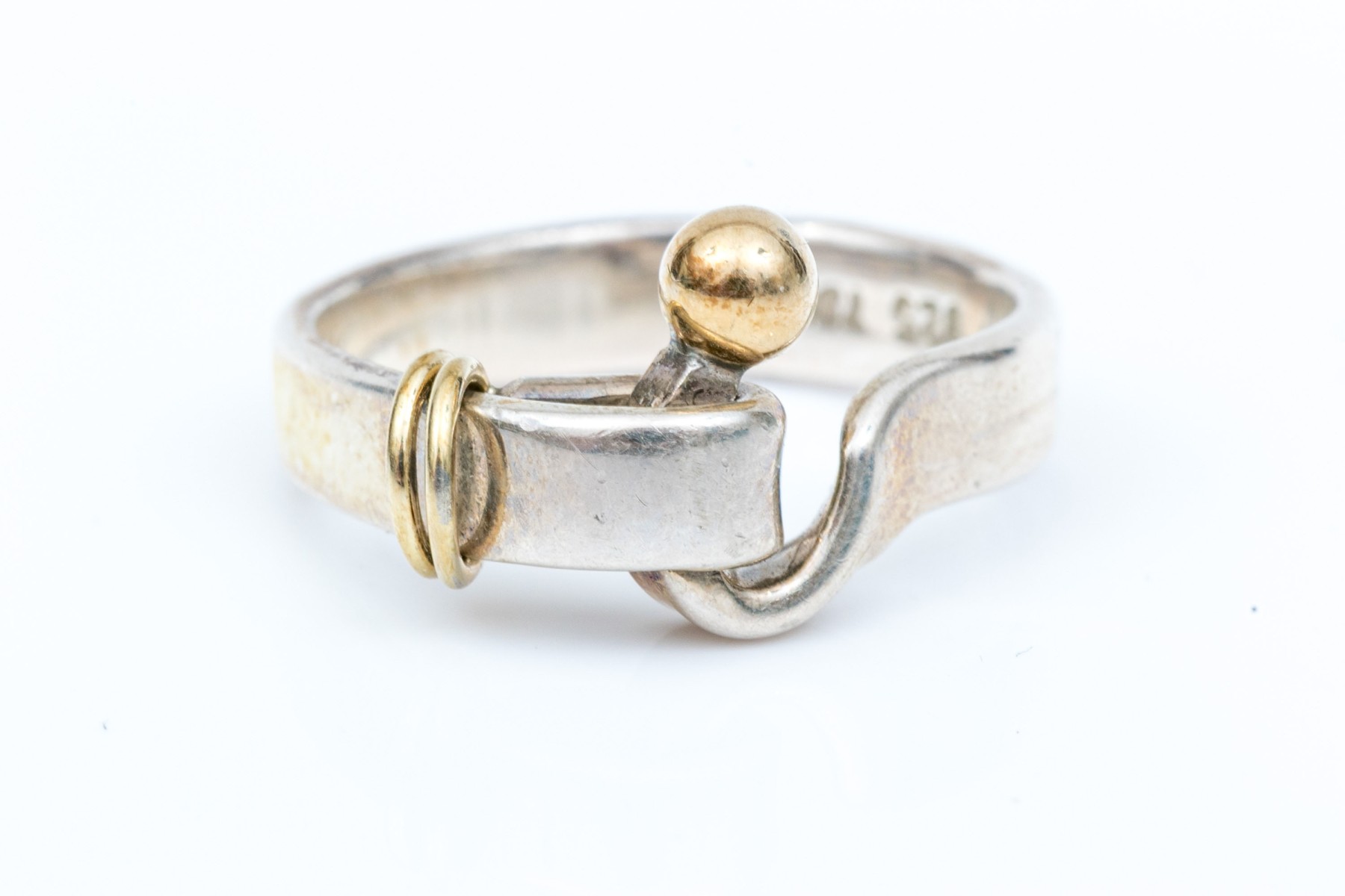 Tiffany & Co. sterling silver and 18k yellow gold classic hook and eye ring, size 7