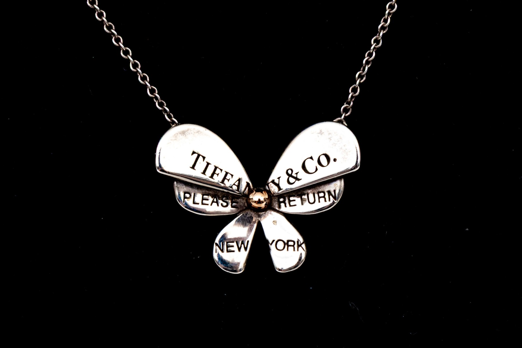 Tiffany & Co. Sterling Silver And 18k Yellow Gold "Return To Tiffany" Butterfly Motif Necklace #461024. Black Rock Galleries provides high end estate liquidation services through online estate auctions and a 50,000 sq ft designer showroom. estate liquidator, estate sale, online auction, antiques, fine art, liquidation, clean outs, auction, consignment, interior design, fine jewelry, collectibles, appraisals, estate appraisals, estate services, decor, furniture, furniture consignment, antique center, consignment shop. We offer appraisal services and specialize in fine art, jewelry, antiques and decorative arts. Sell with us. Black Rock Galleries is the tri-state's largest estate liquidator serving New England and the greater New York City area. We are the trusted source for expert appraisals, auction services, estate sales, and consignments. Black Rock Galleries is the east coast's largest and most trusted estate liquidator, with locations in Connecticut, greater Boston, MA and Raleigh, NC, Fairfield, Southport, Apex, TX. We are the best source for expert appraisals, auction services, estate sales and consignments. We have served thousands of families and estates with compassion, professionalism and expertise. BRG works with attorneys, executors, realtors and families to bring the greatest return on personal and estate property in the current market. Our unique combination of services make us the easy choice to get the job done in a timely and stress-free manner. We are with you from the initial consultation to the final clean out. Our house-built online auction software platform offers clients a dynamic approach to liquidating their personal property. This venue is most successful in bringing the best return with the least amount of disruption for our clients. See our services page for a complete description of this offering. Tiffany & Co. Sterling Silver And 18k Yellow Gold "Return To Tiffany" Butterfly Motif Necklace #461024