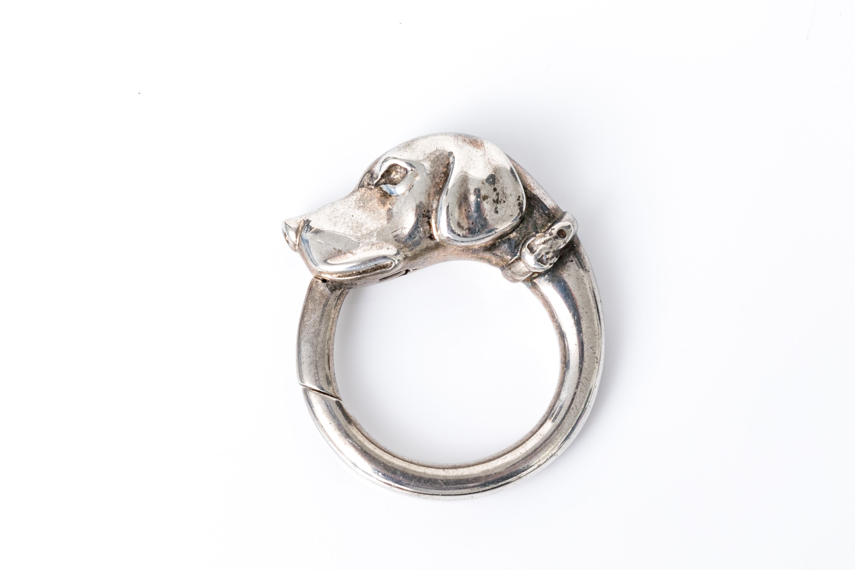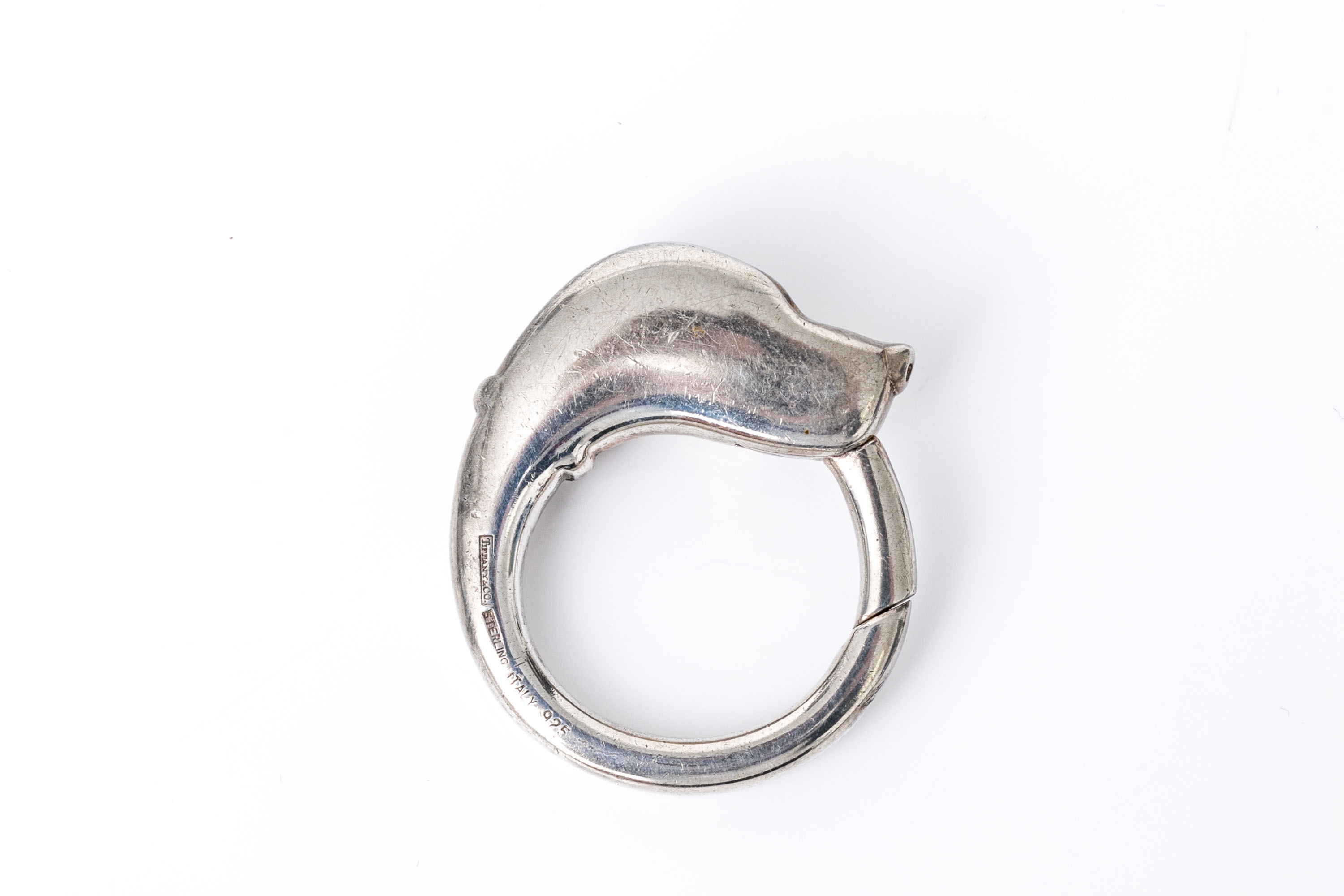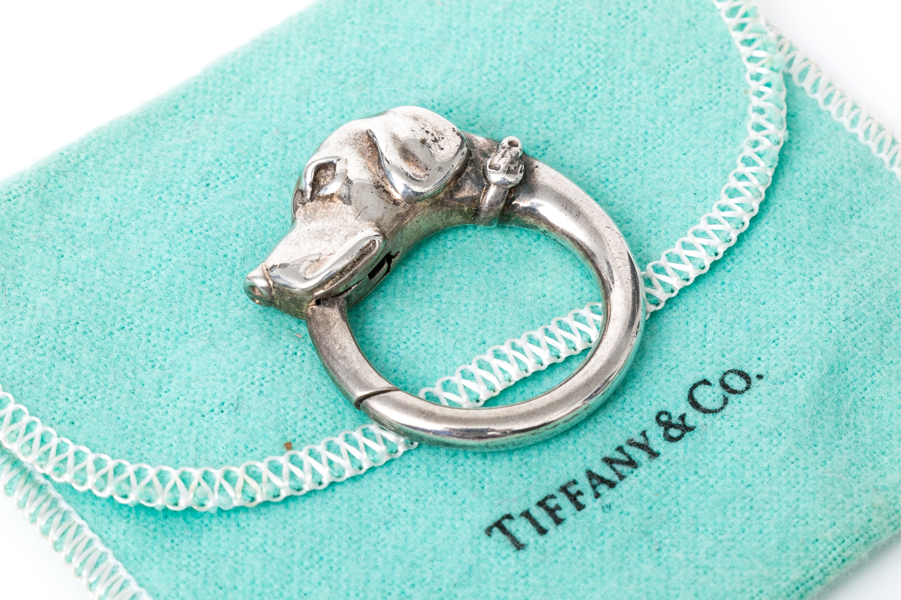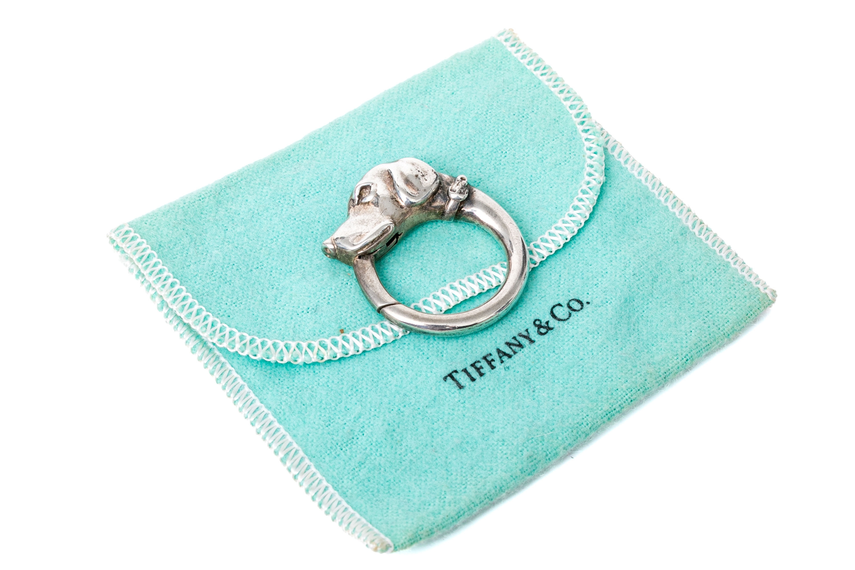 Tiffany & Co. sterling silver beautiful hound ouroboros key ring, with felt