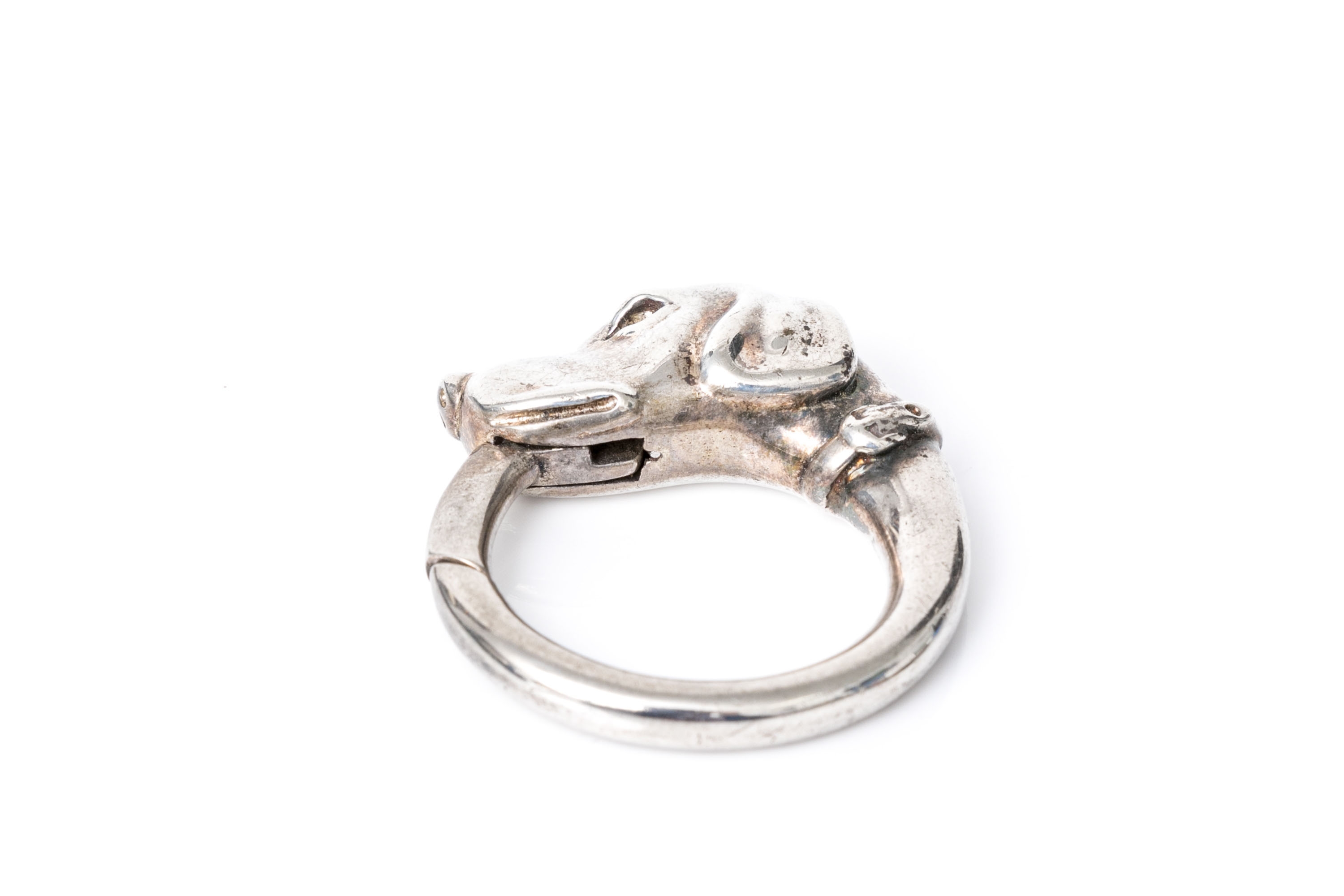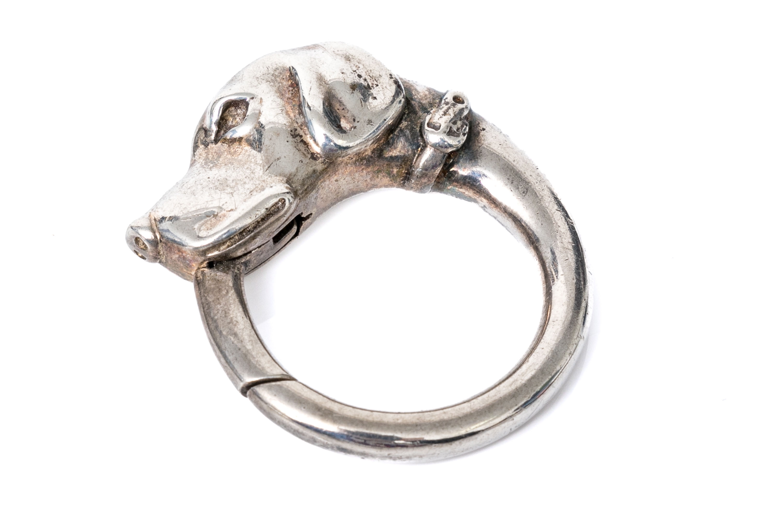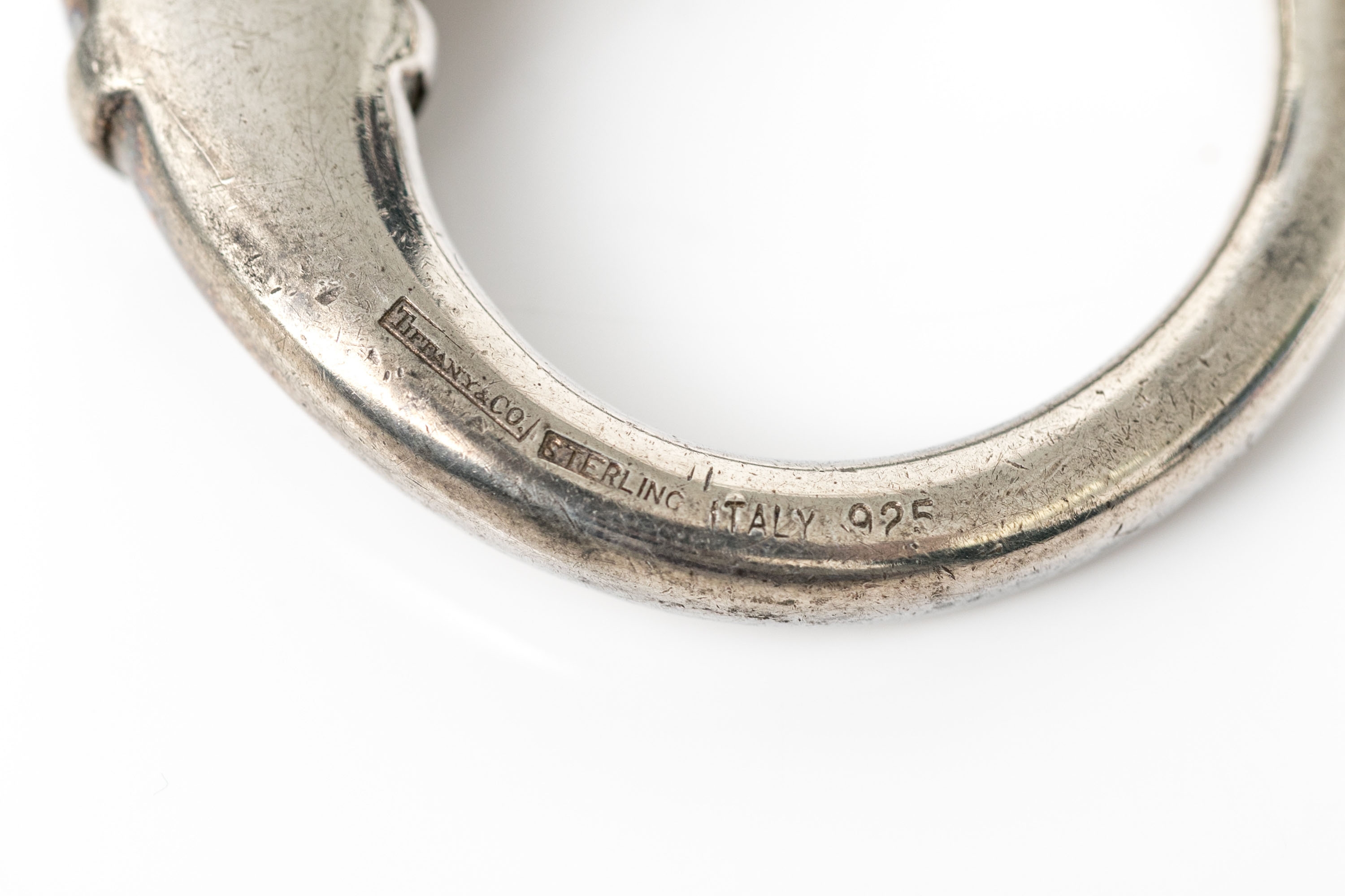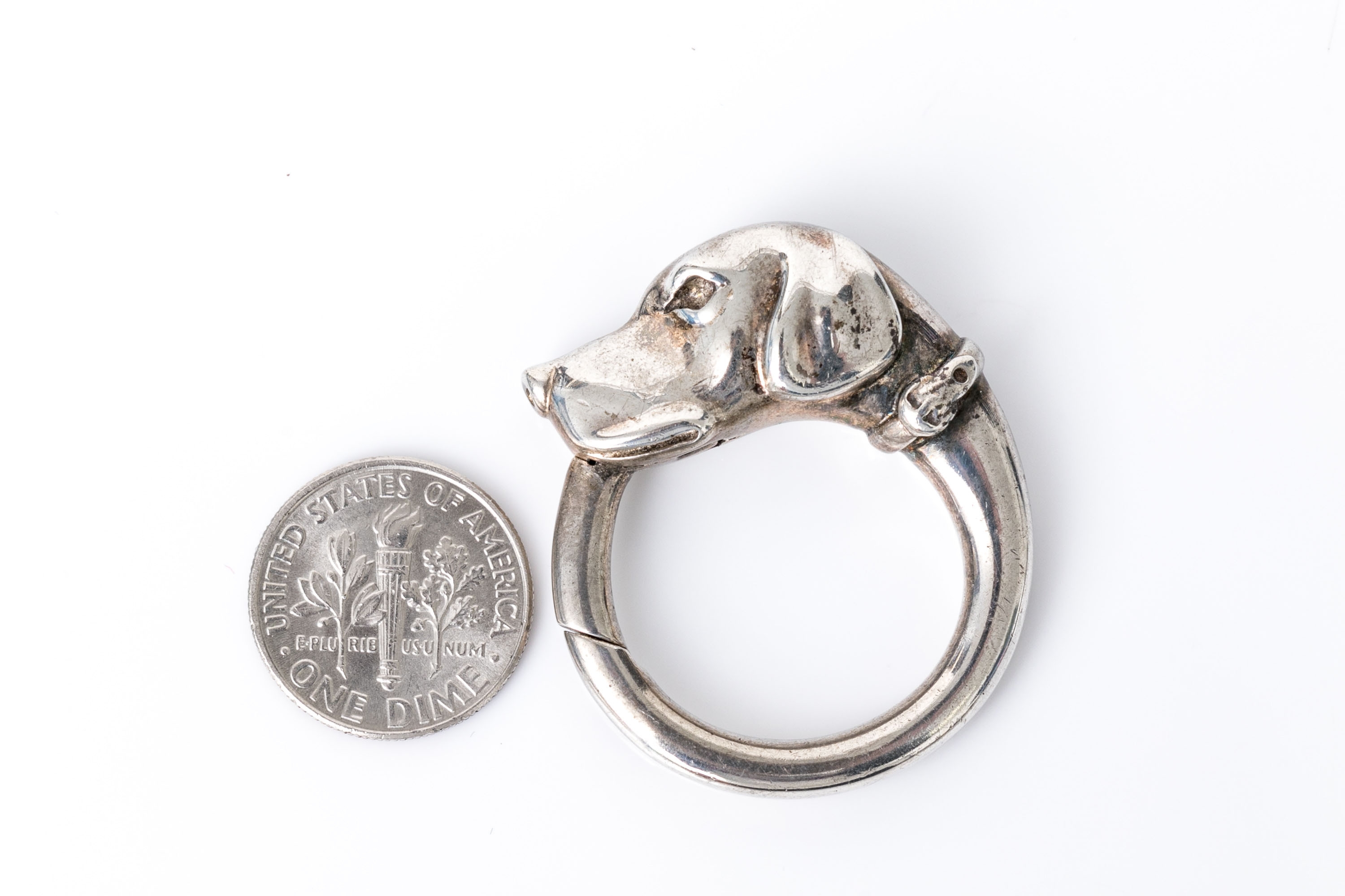 Tiffany & Co. sterling silver beautiful hound ouroboros key ring, with felt