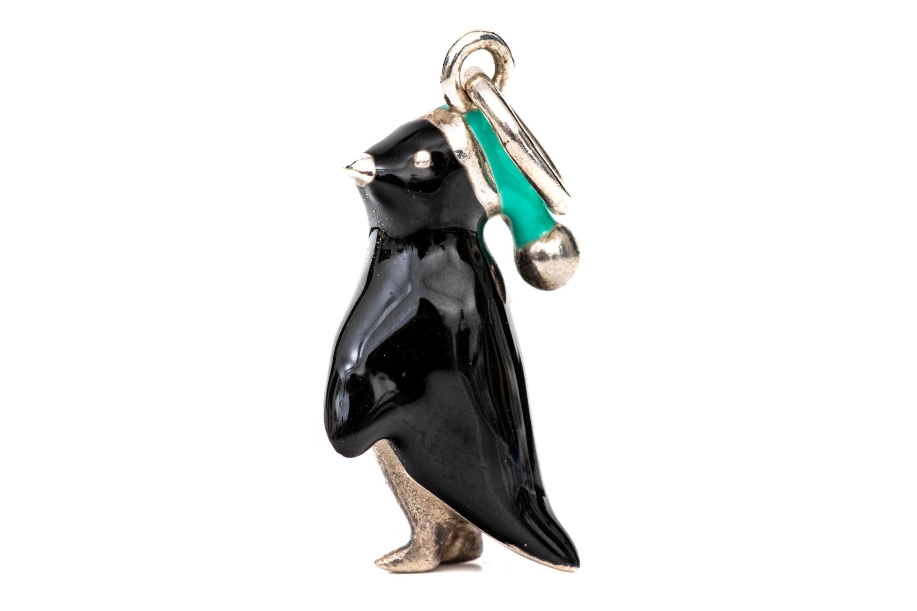 Tiffany & Co. sterling silver charming black and Tiffany blue enamel penguin charm