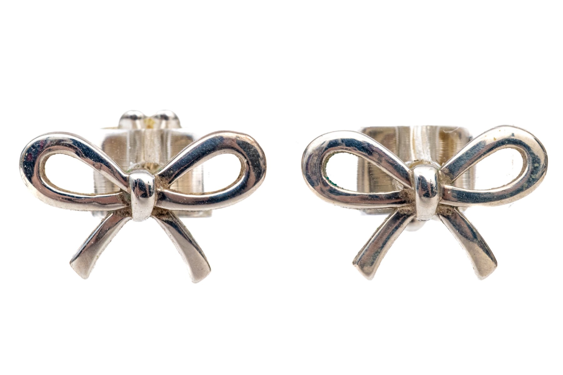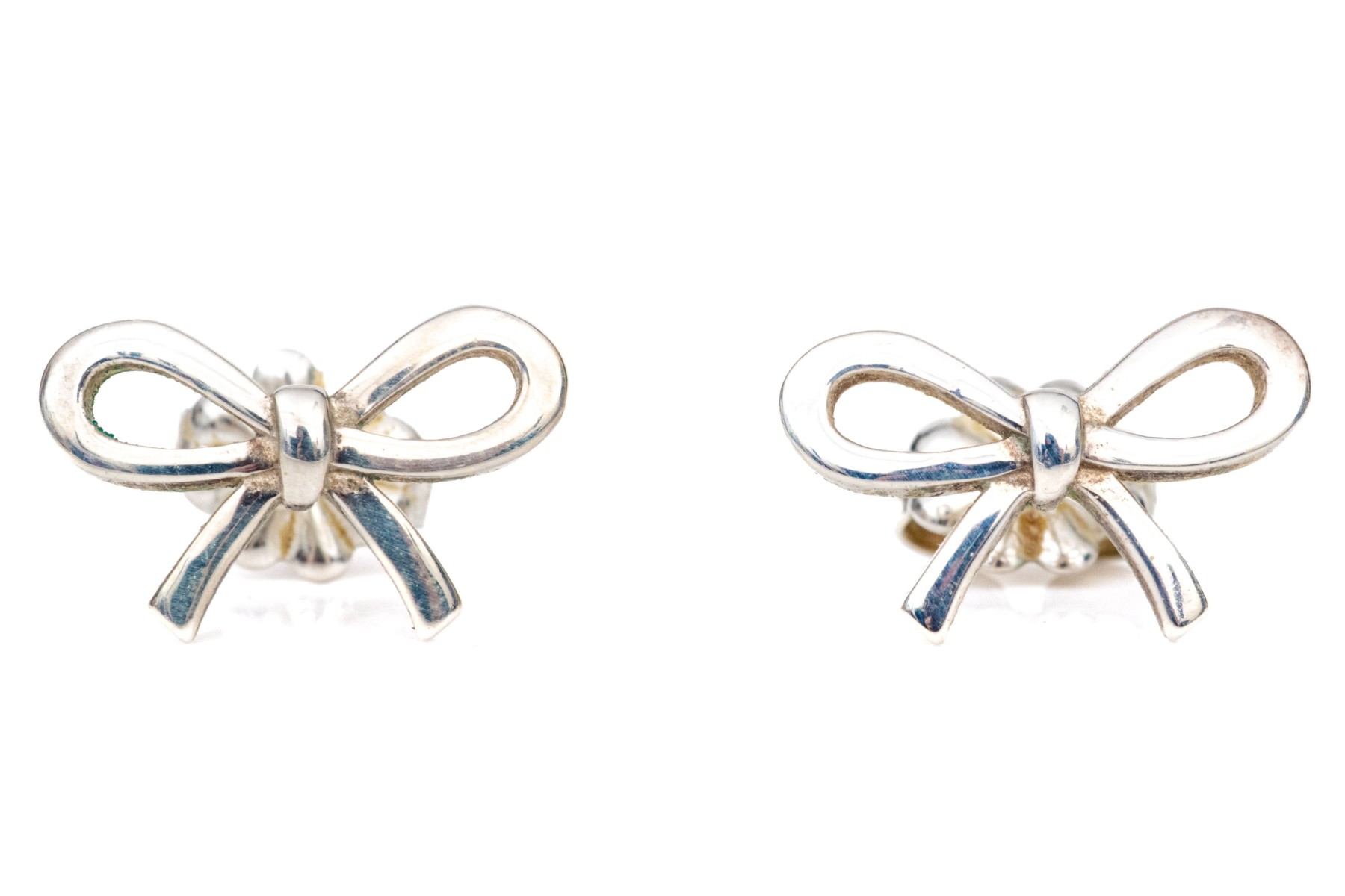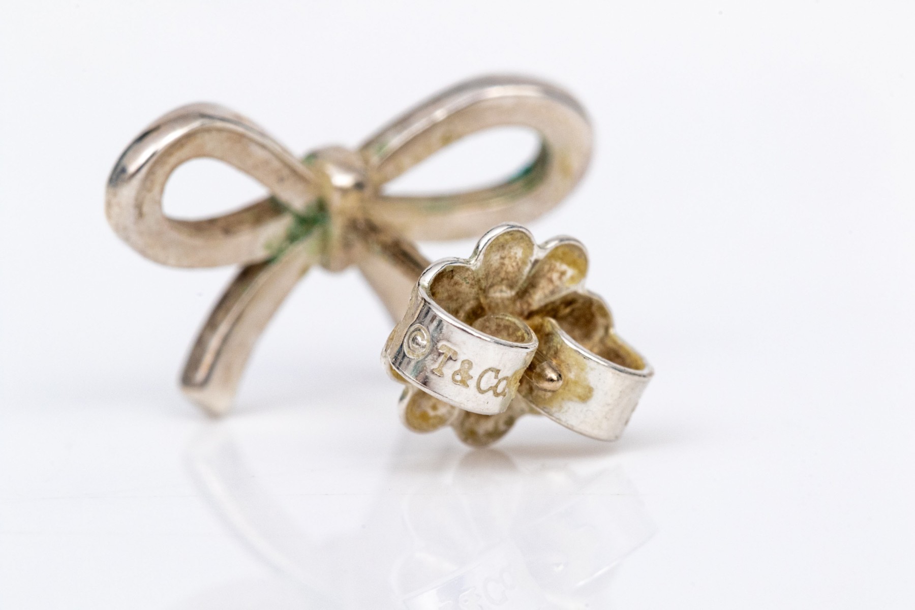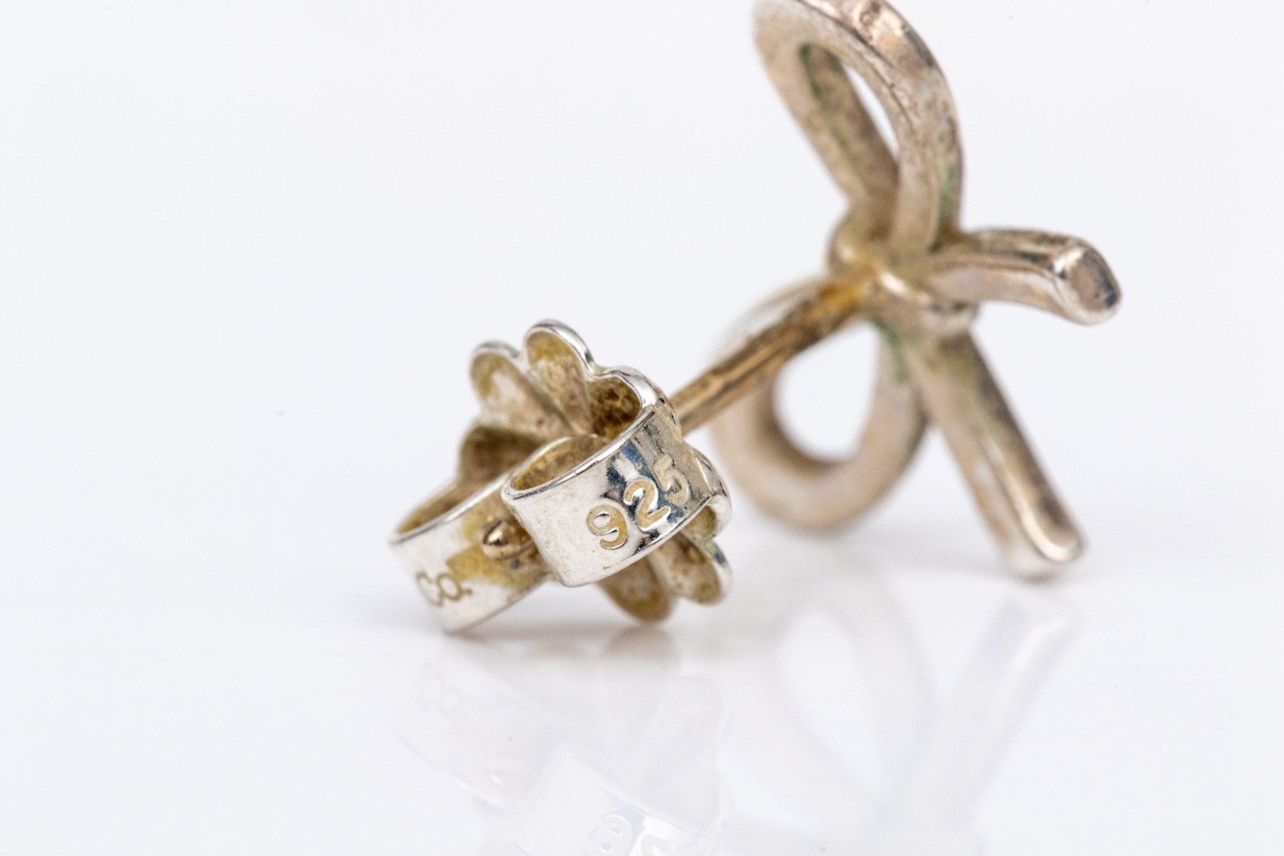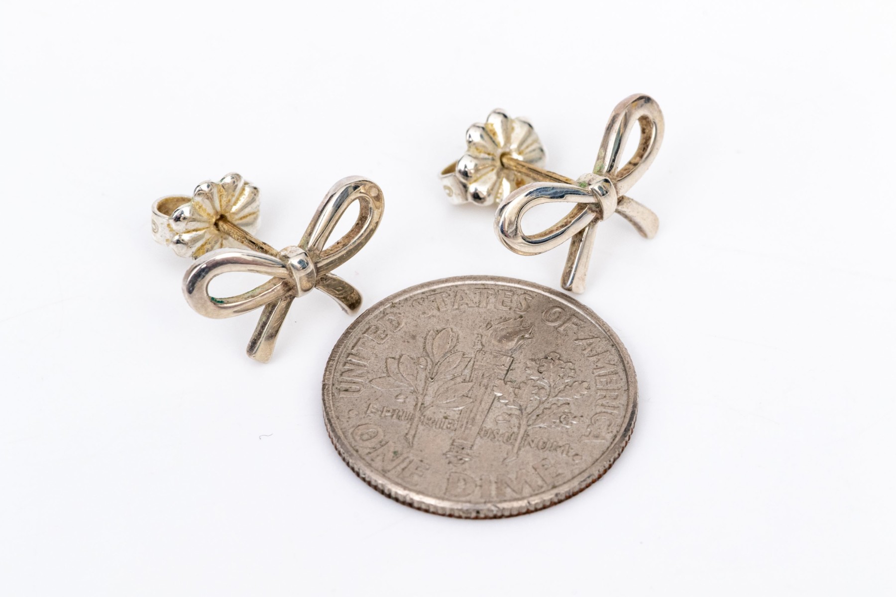Tiffany & Co. sterling silver charming bow motif stud earrings, finished with posts and clutch style backs
