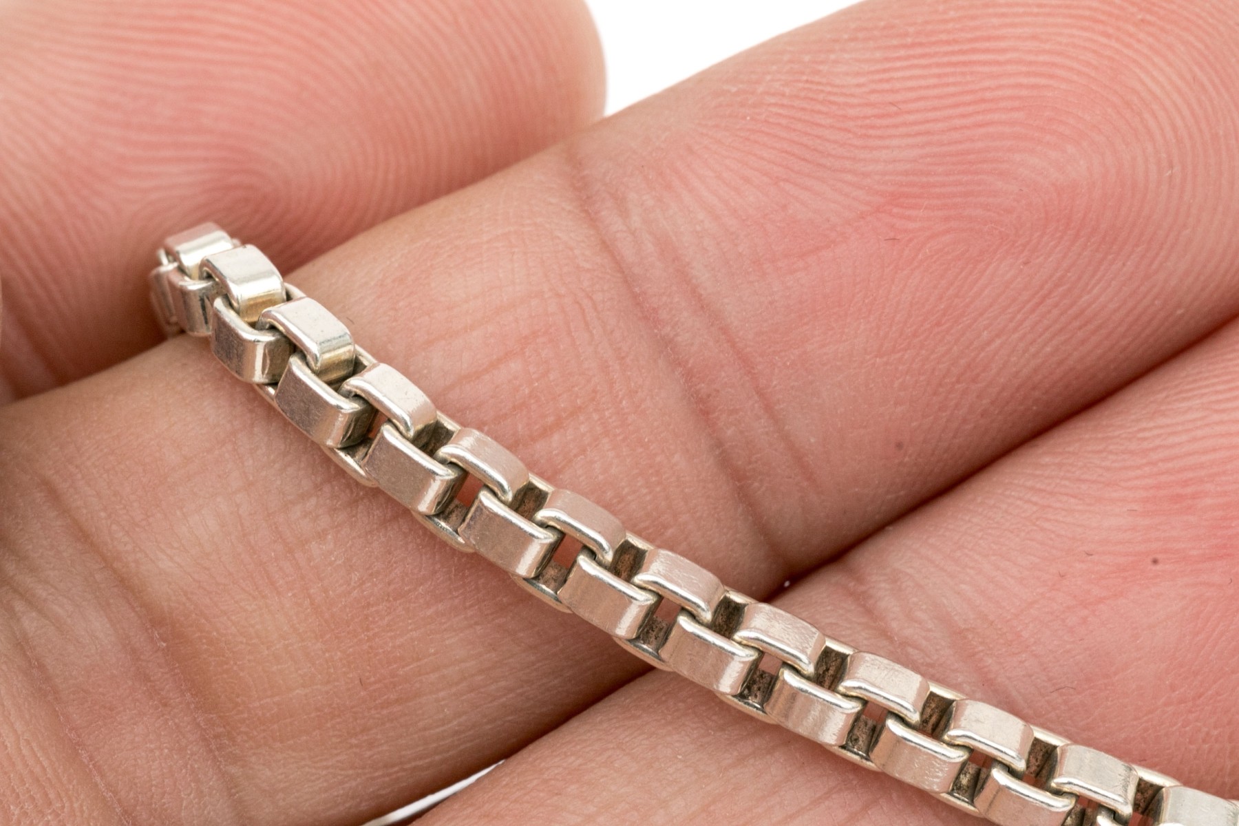 Tiffany & Co. sterling silver chunky box link style bracelet, finished with a lobster claw clasp