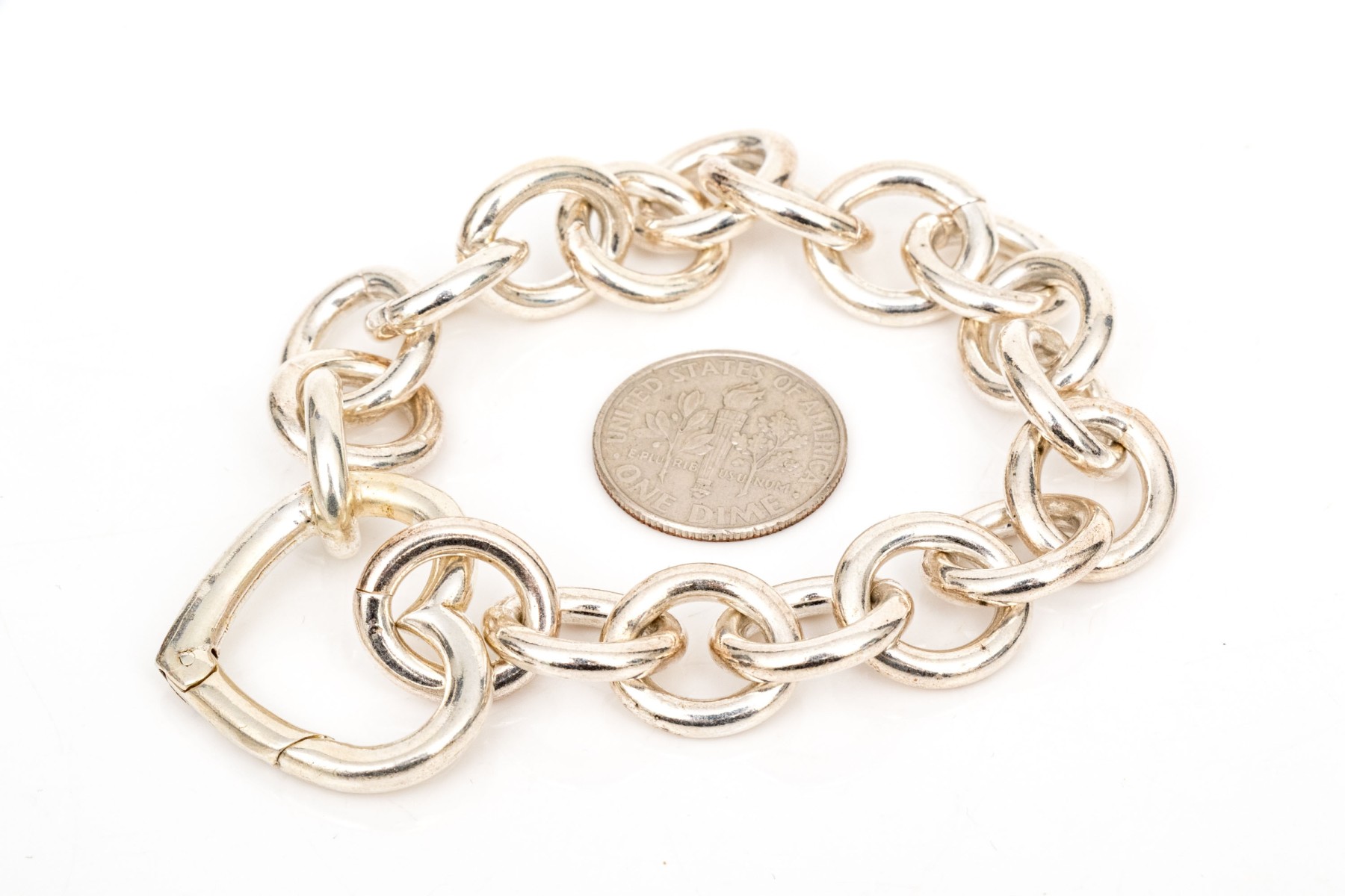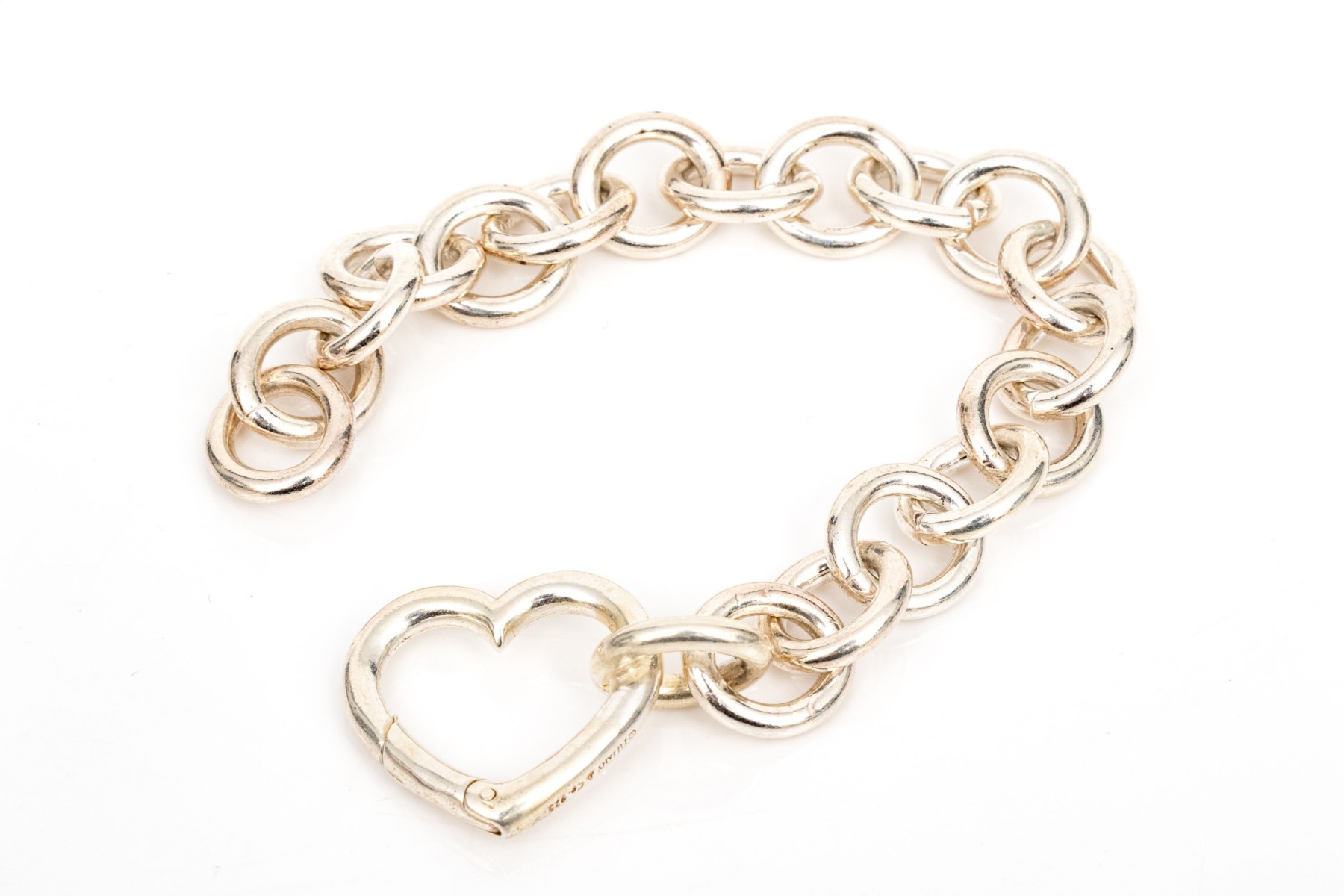 Tiffany & Co. sterling silver chunky link bracelet with heart form clasp