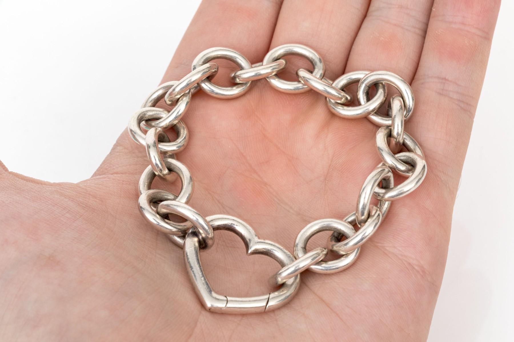 Tiffany & Co. Sterling Silver Chunky Link Bracelet With Heart Form Clasp #459896. Black Rock Galleries provides high end estate liquidation services through online estate auctions and a 50,000 sq ft designer showroom. estate liquidator, estate sale, online auction, antiques, fine art, liquidation, clean outs, auction, consignment, interior design, fine jewelry, collectibles, appraisals, estate appraisals, estate services, decor, furniture, furniture consignment, antique center, consignment shop. We offer appraisal services and specialize in fine art, jewelry, antiques and decorative arts. Sell with us. Black Rock Galleries is the tri-state's largest estate liquidator serving New England and the greater New York City area. We are the trusted source for expert appraisals, auction services, estate sales, and consignments. Black Rock Galleries is the east coast's largest and most trusted estate liquidator, with locations in Connecticut, greater Boston, MA and Raleigh, NC, Fairfield, Southport, Apex, TX. We are the best source for expert appraisals, auction services, estate sales and consignments. We have served thousands of families and estates with compassion, professionalism and expertise. BRG works with attorneys, executors, realtors and families to bring the greatest return on personal and estate property in the current market. Our unique combination of services make us the easy choice to get the job done in a timely and stress-free manner. We are with you from the initial consultation to the final clean out. Our house-built online auction software platform offers clients a dynamic approach to liquidating their personal property. This venue is most successful in bringing the best return with the least amount of disruption for our clients. See our services page for a complete description of this offering. Tiffany & Co. Sterling Silver Chunky Link Bracelet With Heart Form Clasp #459896