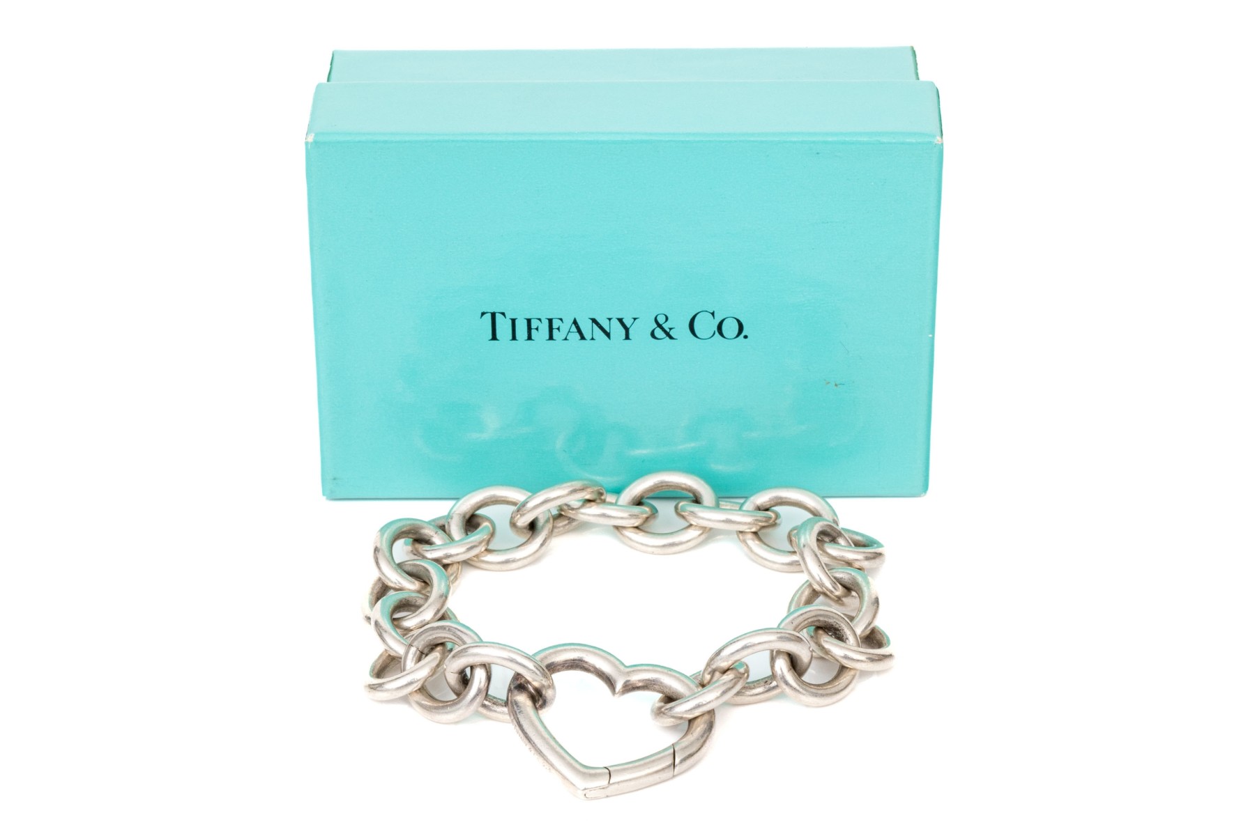 Tiffany & Co. sterling silver chunky link bracelet with heart form clasp, with outer box