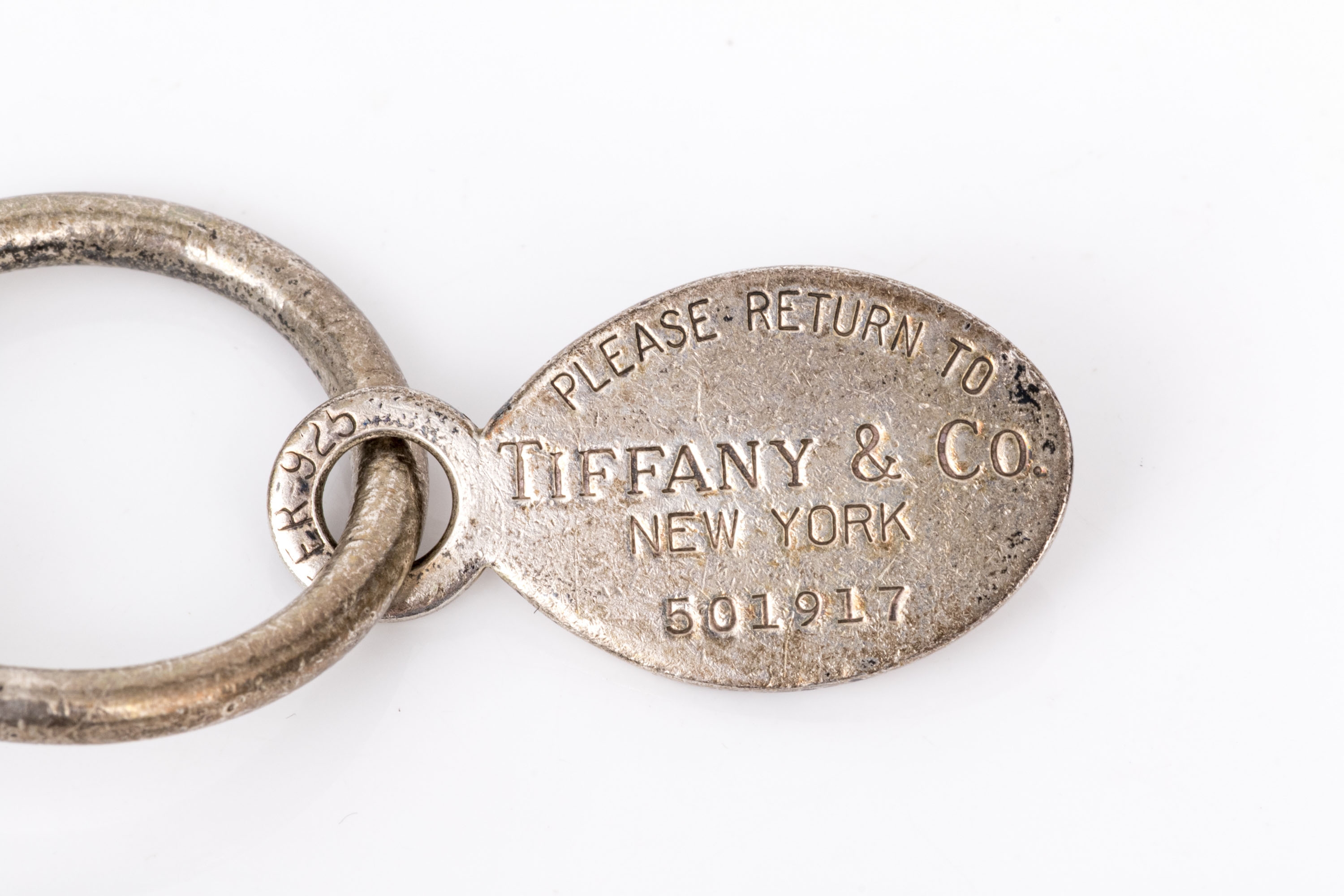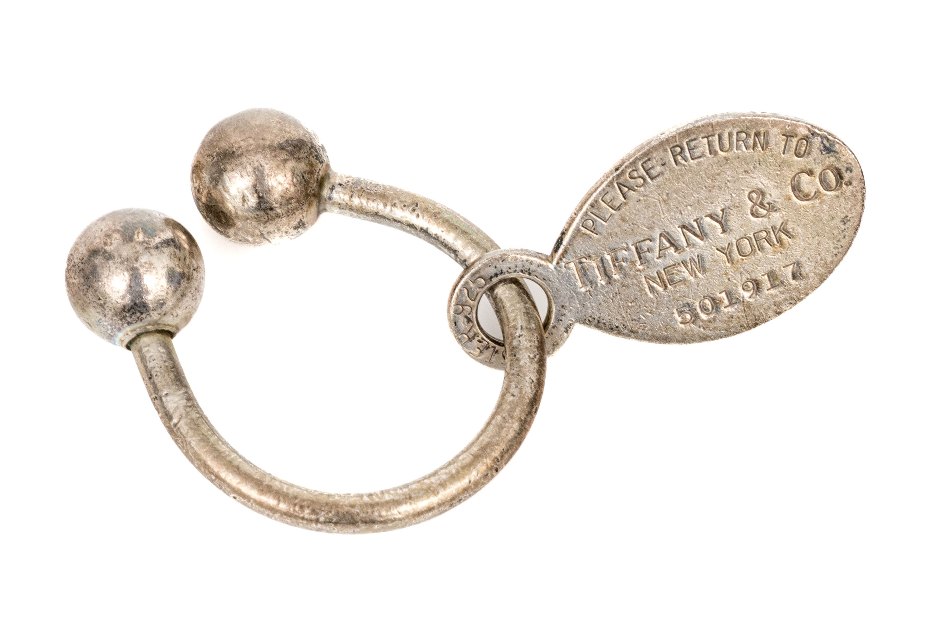 Tiffany & Co. sterling silver classic "Please return to Tiffany" motif "u" shaped key ring