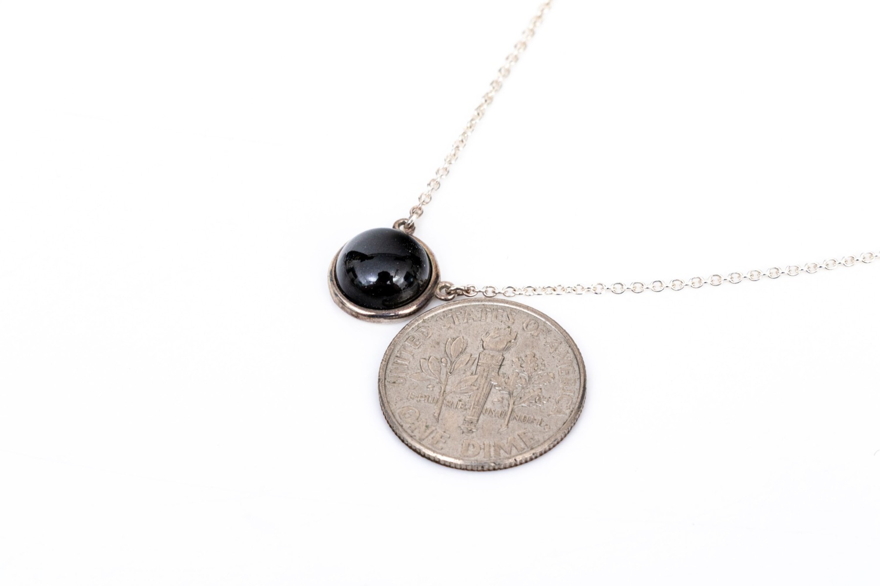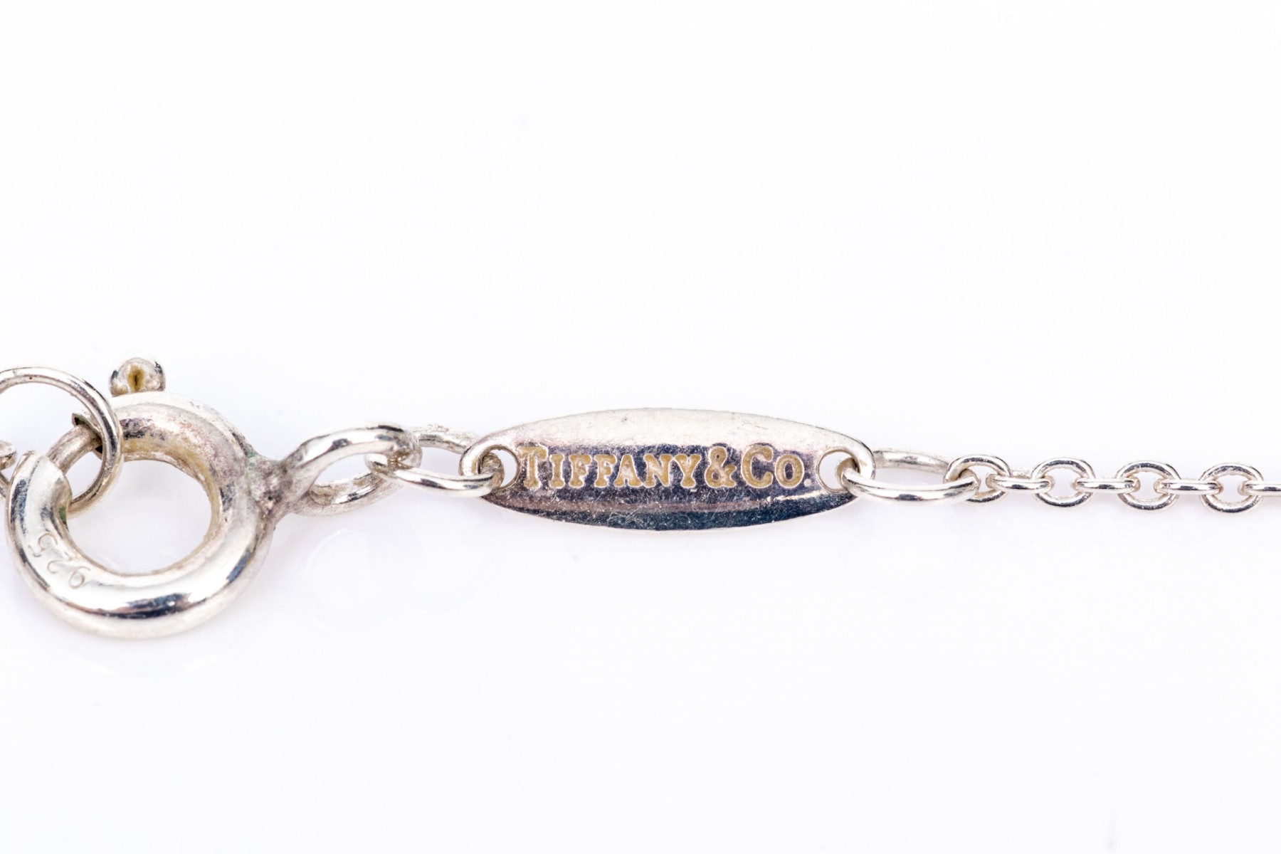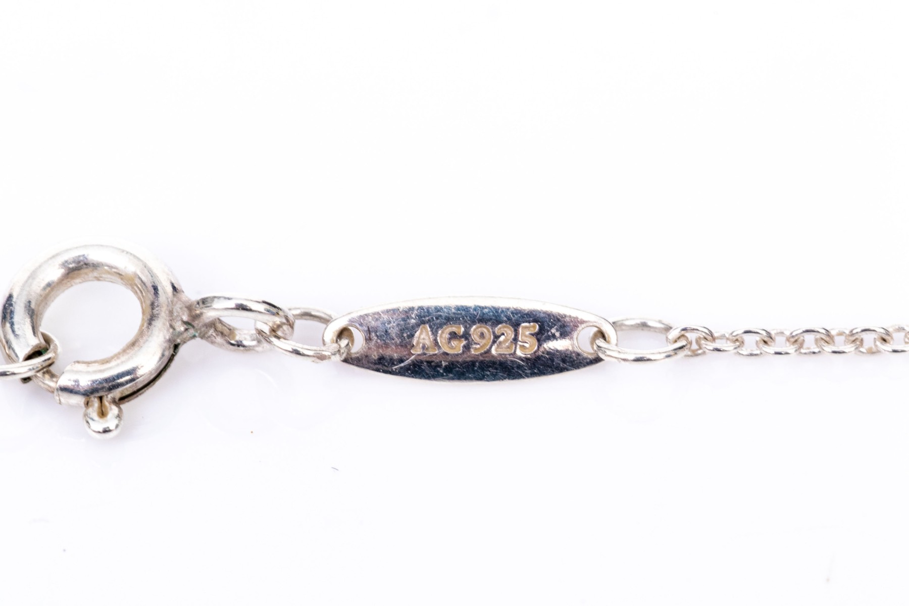 Tiffany & Co. sterling silver Elsa Peretti color by the yard black nephrite necklace. This handsome pendant featured a round black nephrite cabachon center, bezel set, and is displayed on a cable link chain and finished with a spring ring style clasp
