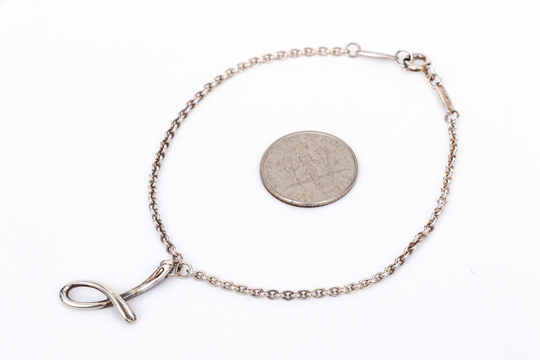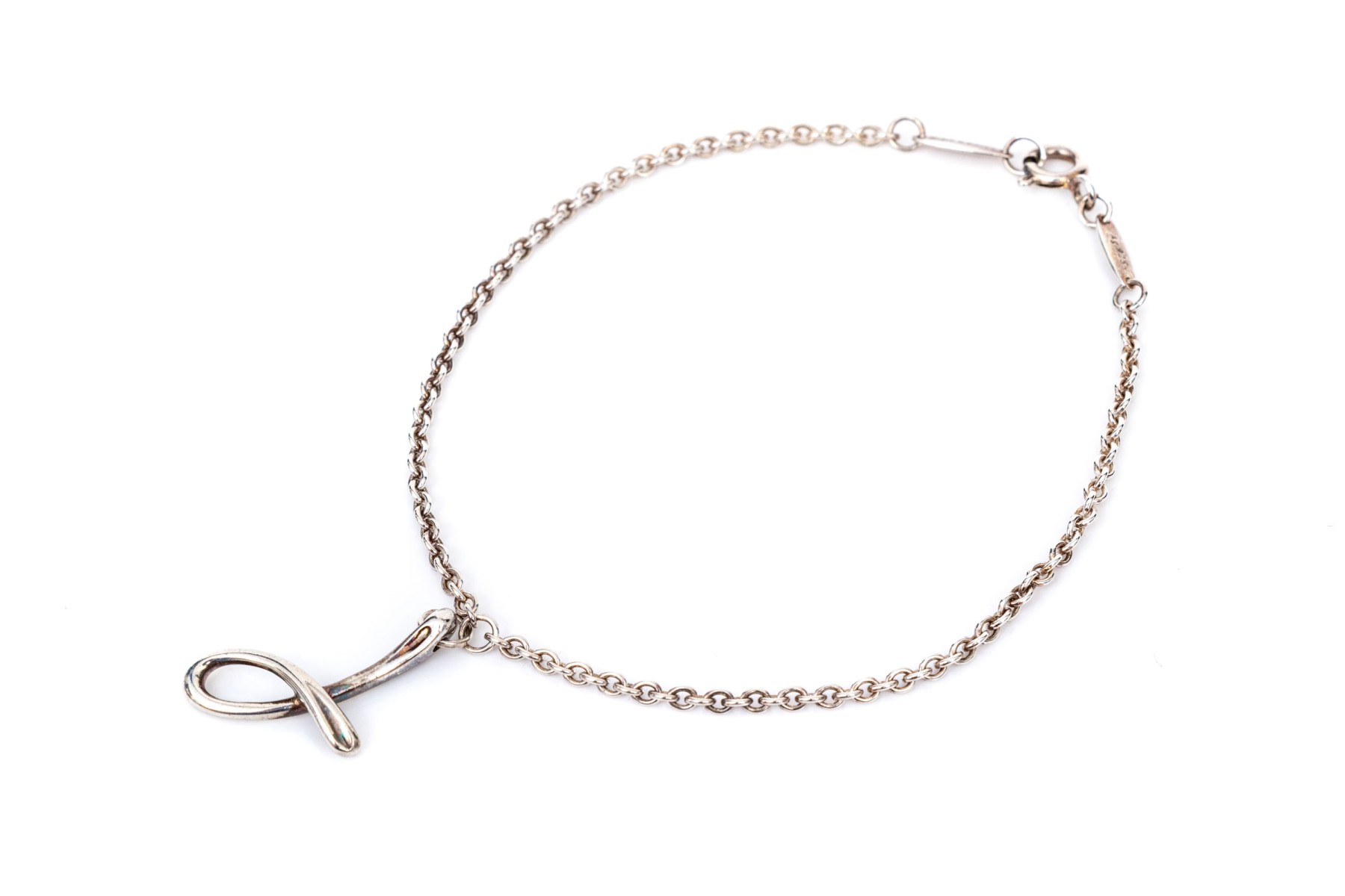 Tiffany & Co. sterling silver Elsa Peretti "Mini Alphabet Bracelet. Letter J", finished with a spring ring style clasp