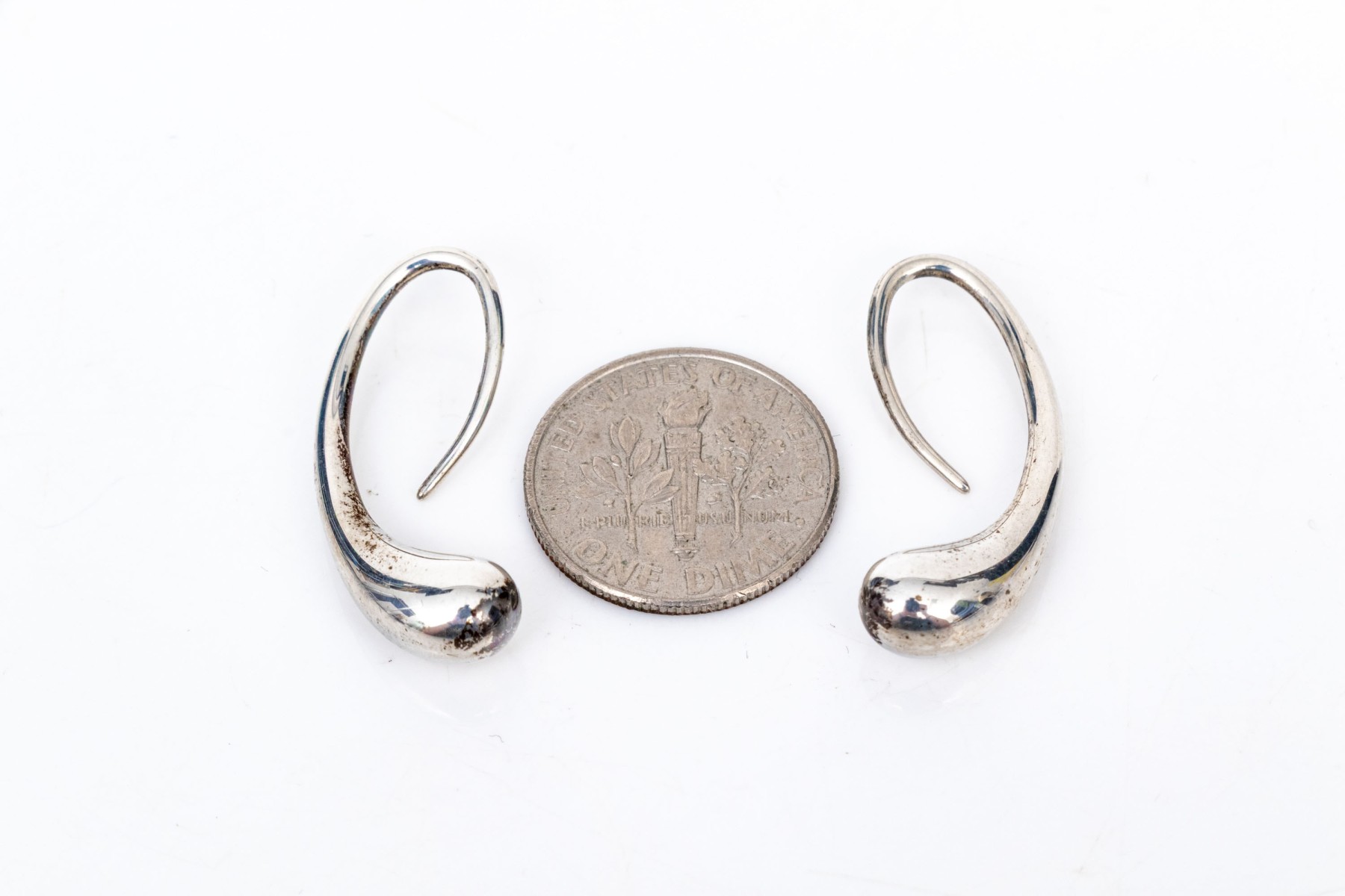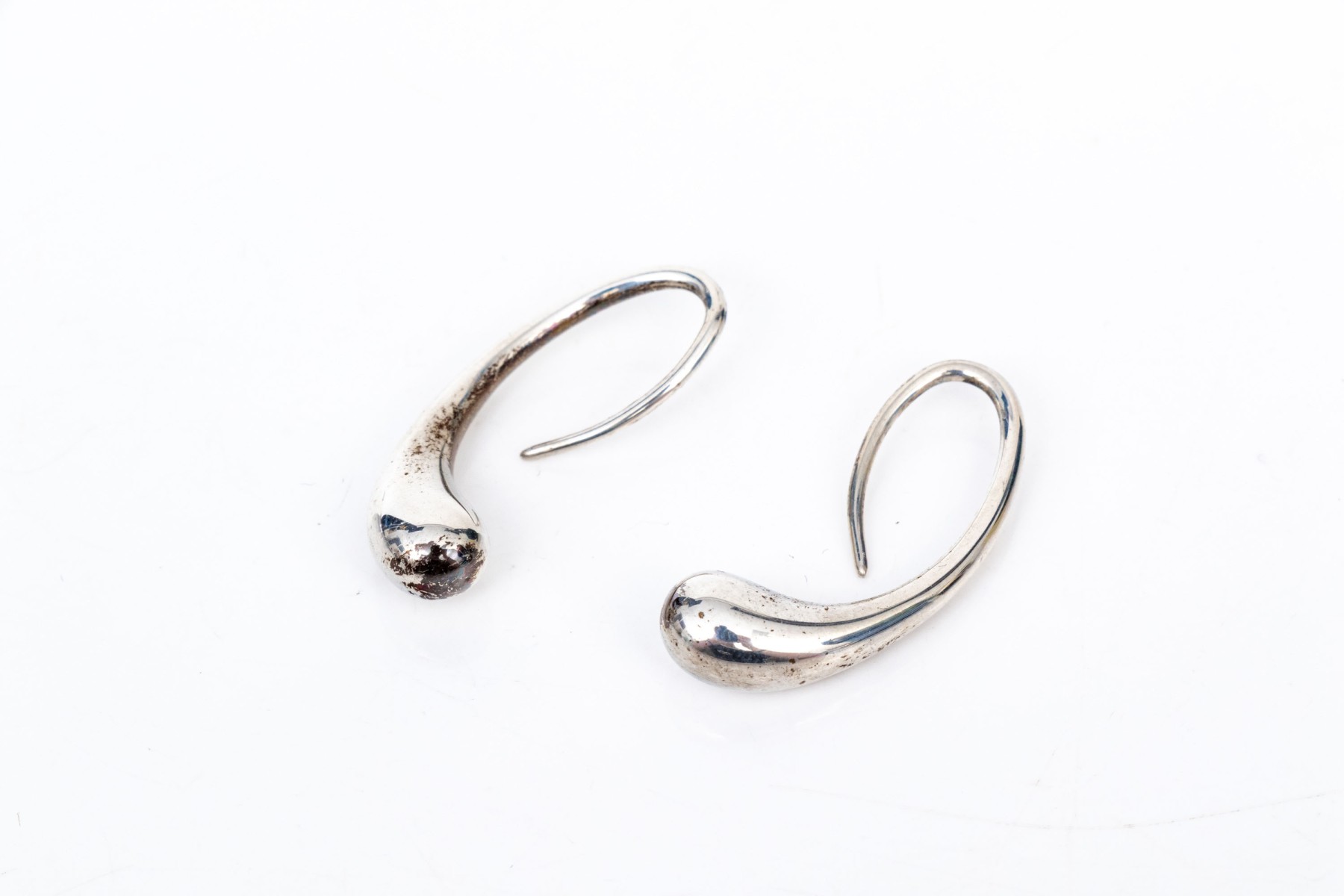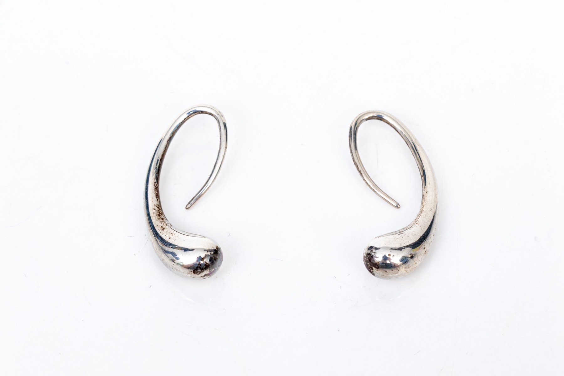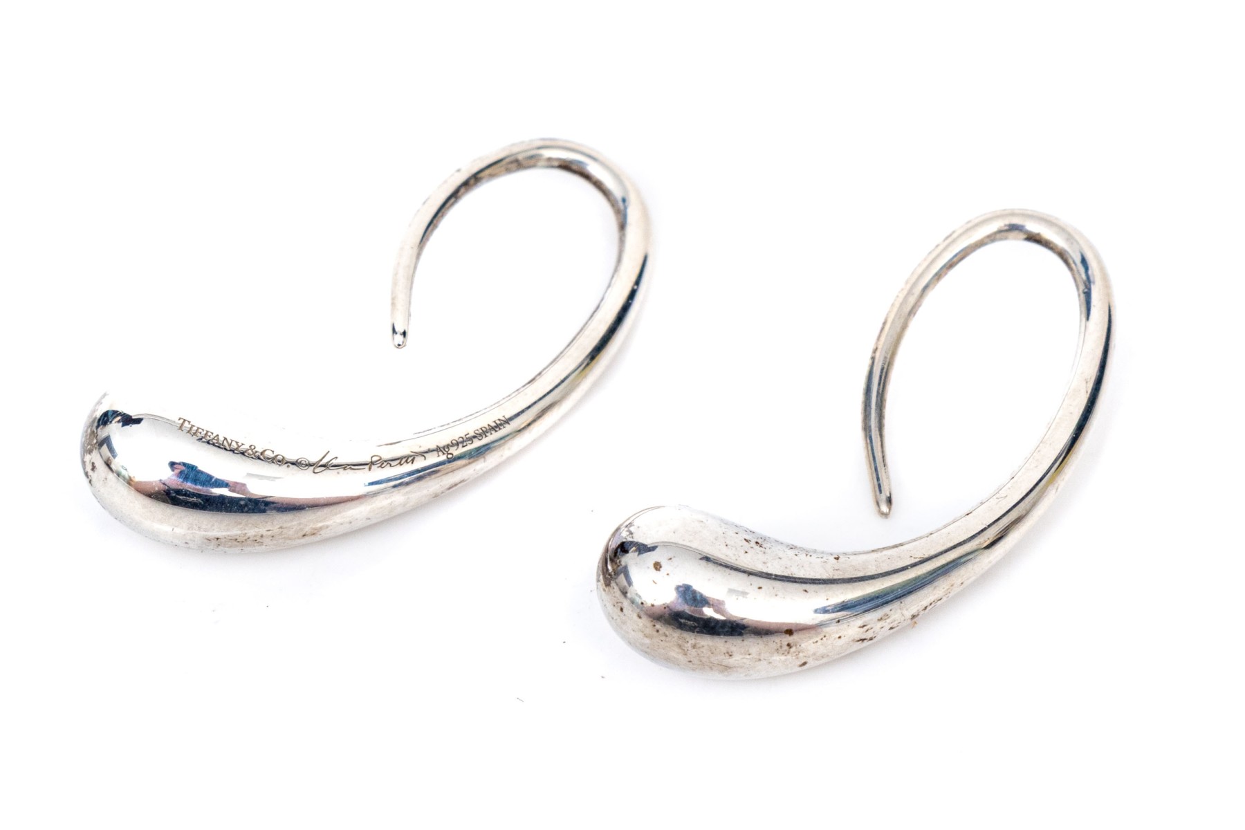 Tiffany & Co. sterling silver Elsa Peretti striking teardrop earrings, finished with shepherd's hook style wires