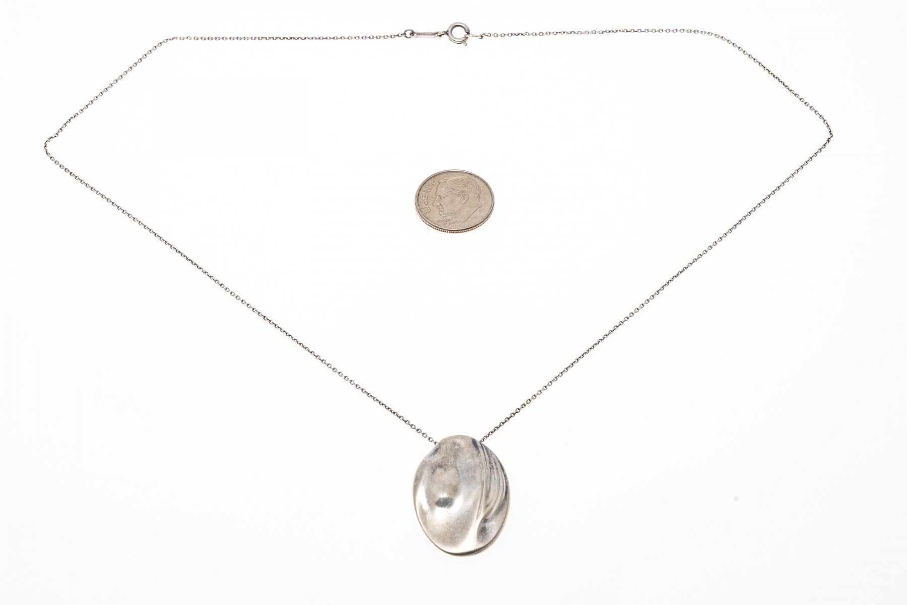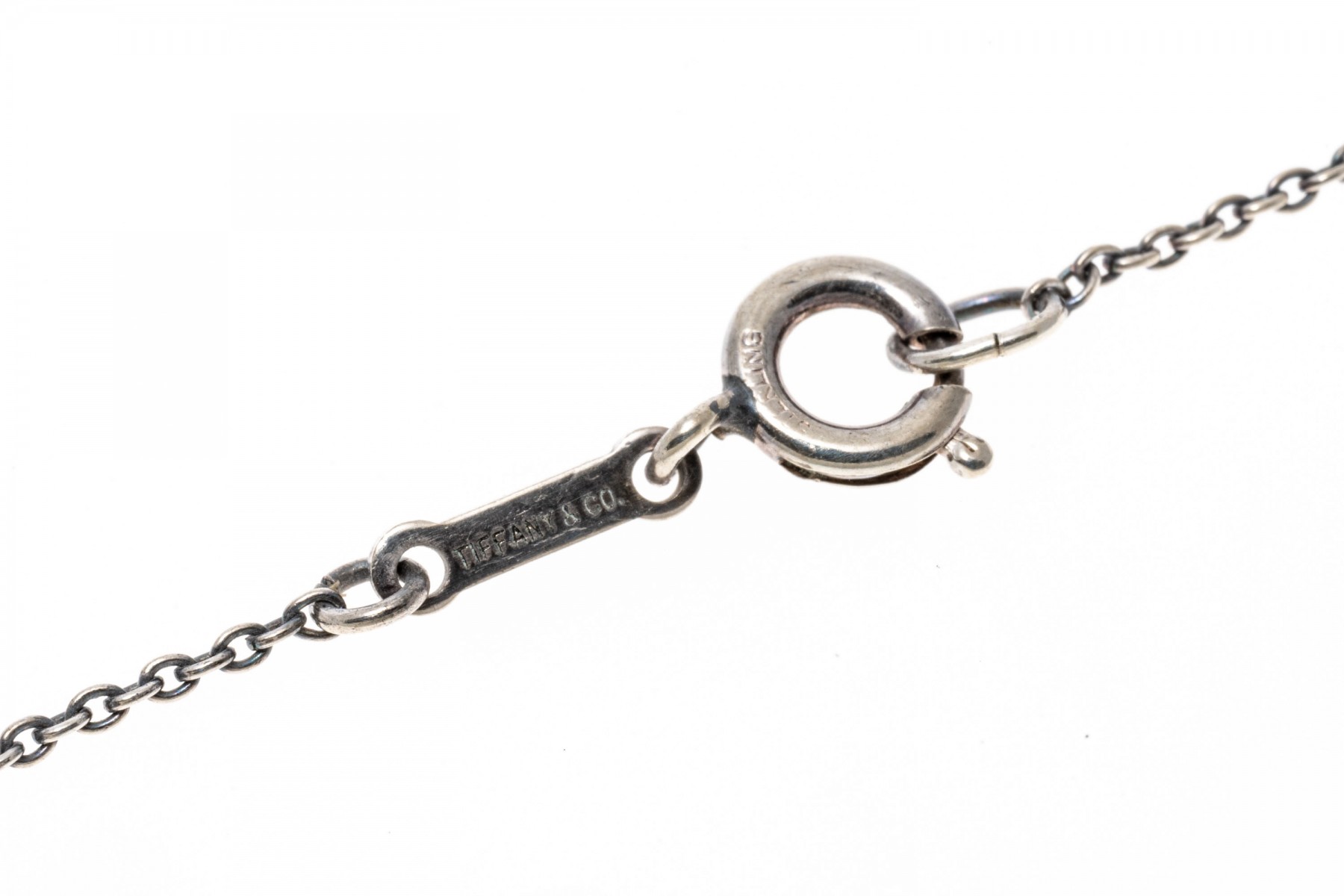 Marks: T & Co Peretti sterling for the chain, 1000 Ag for the pendant