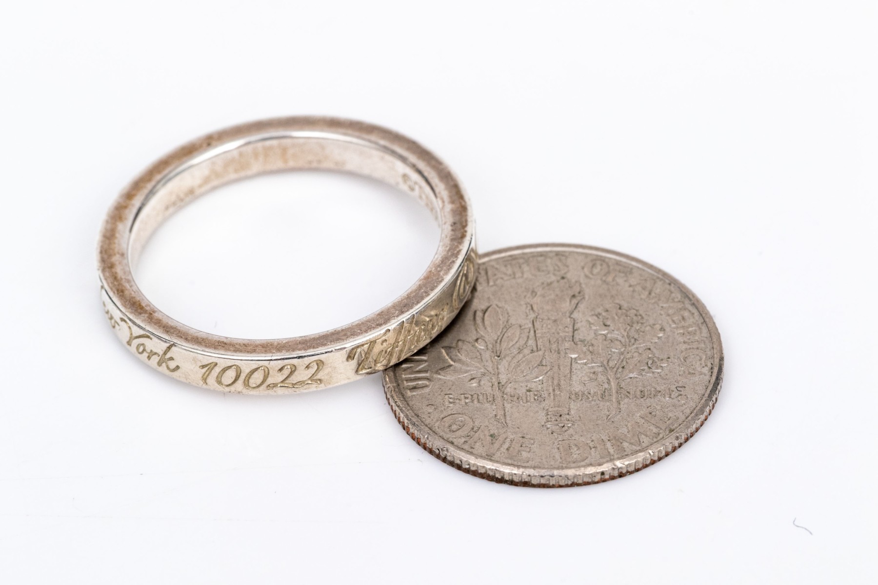 Tiffany & Co. sterling silver fun "727 Fifth Avenue" 2.75 mm band ring, size 6