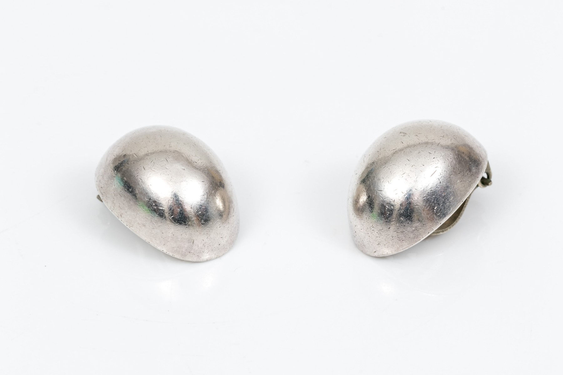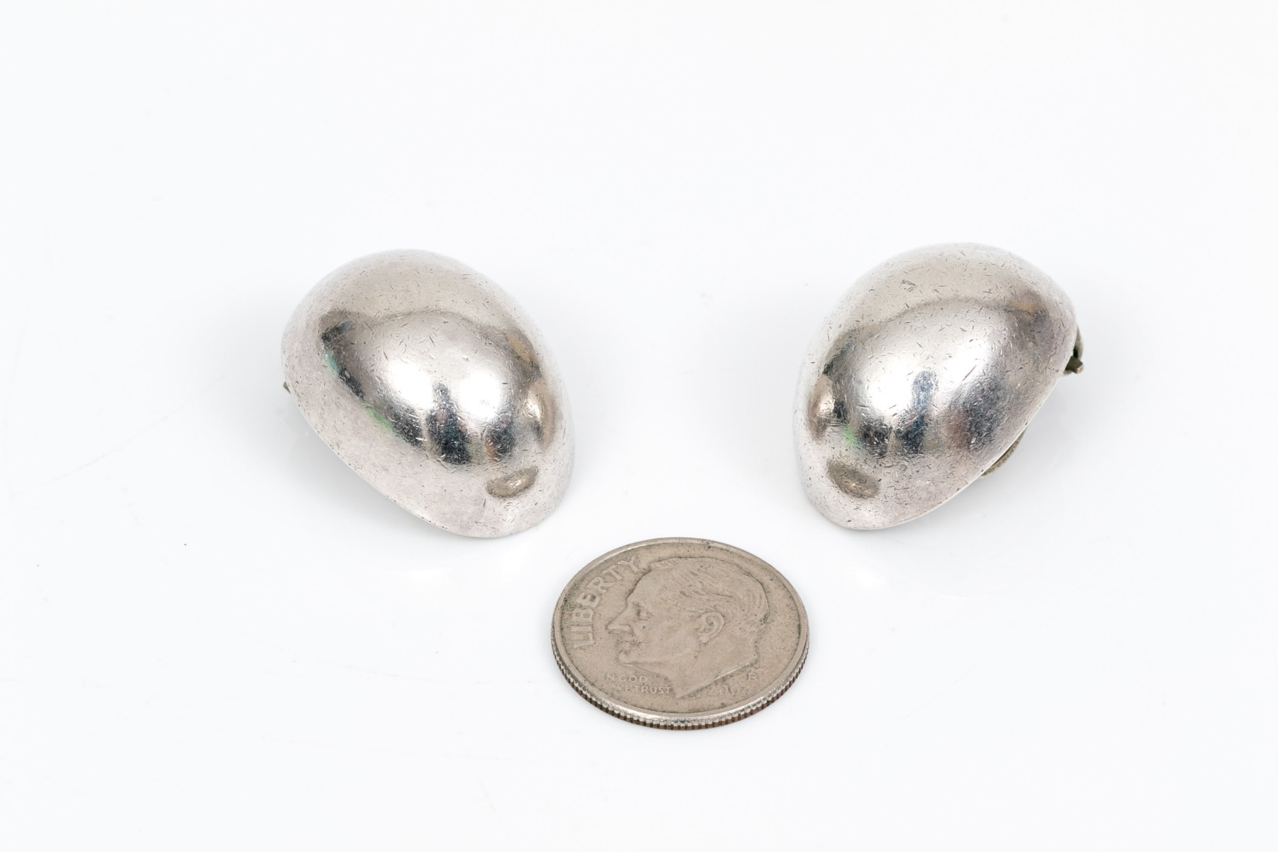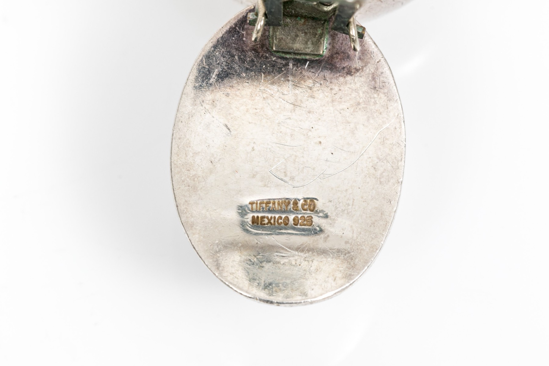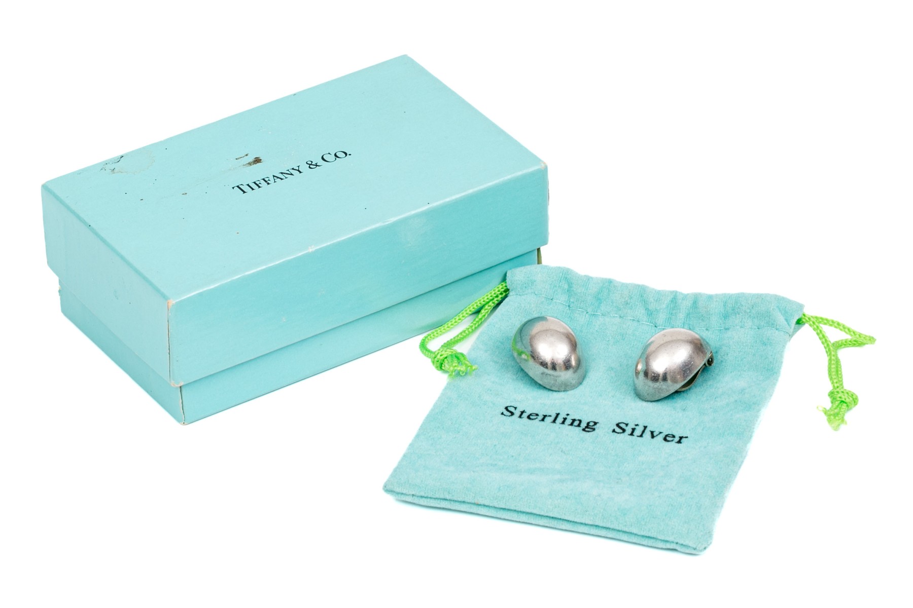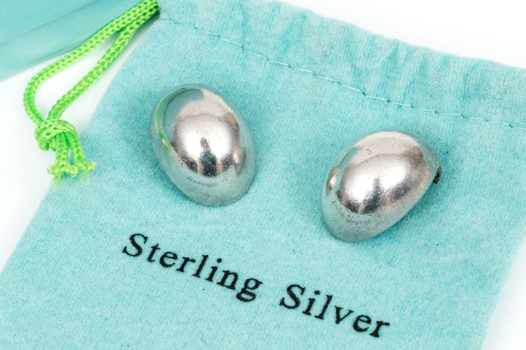 Tiffany & Co. sterling silver handsome oval button earrings, finished with clip on style backs, with outer box