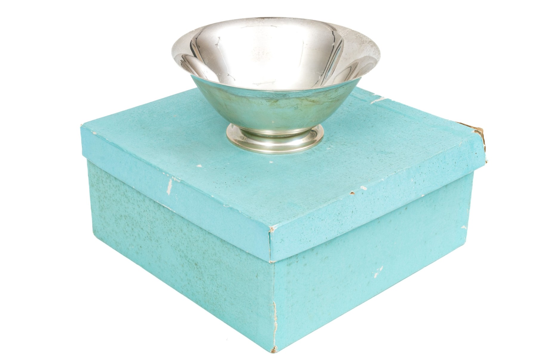 Tiffany & Co. sterling silver handsome traditional Revere style footed bowl, with box