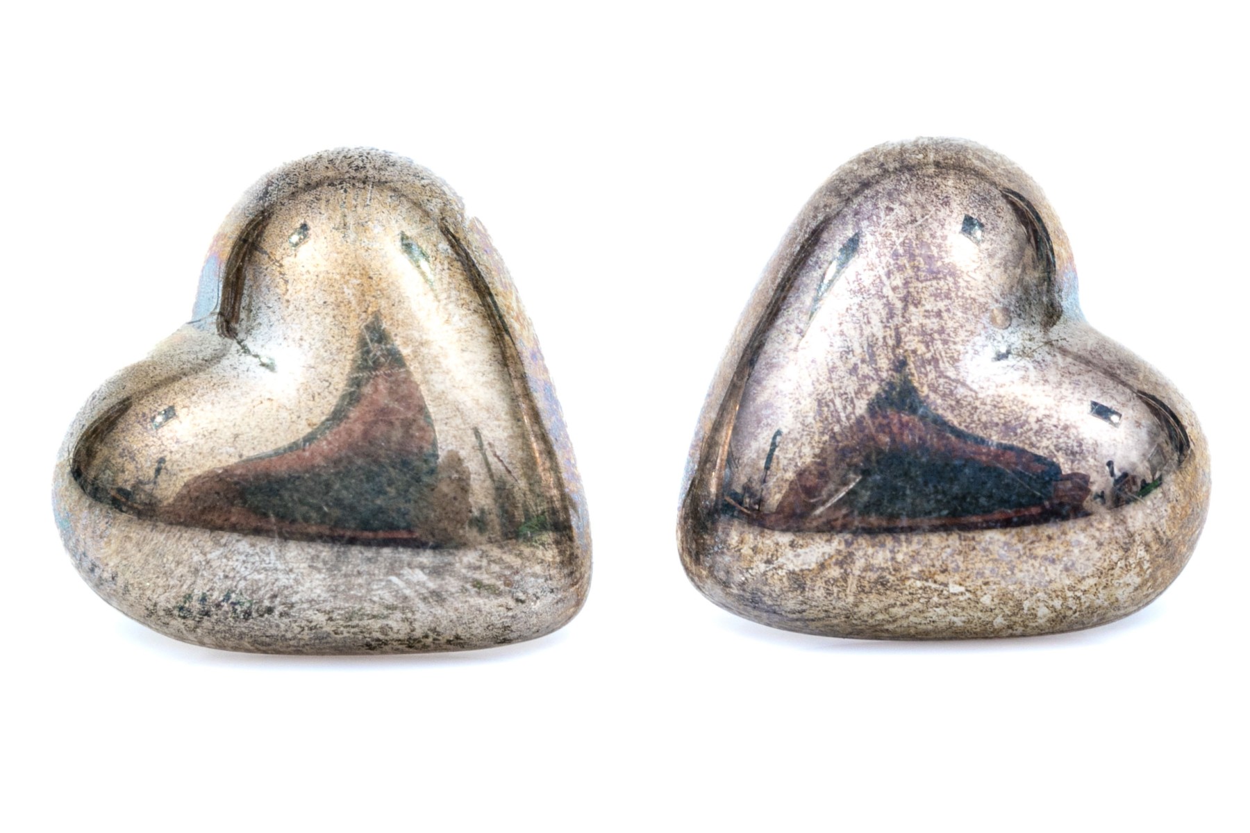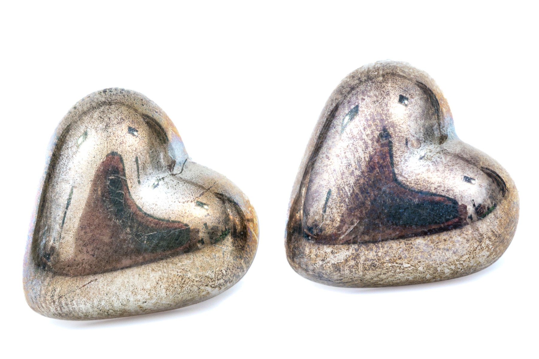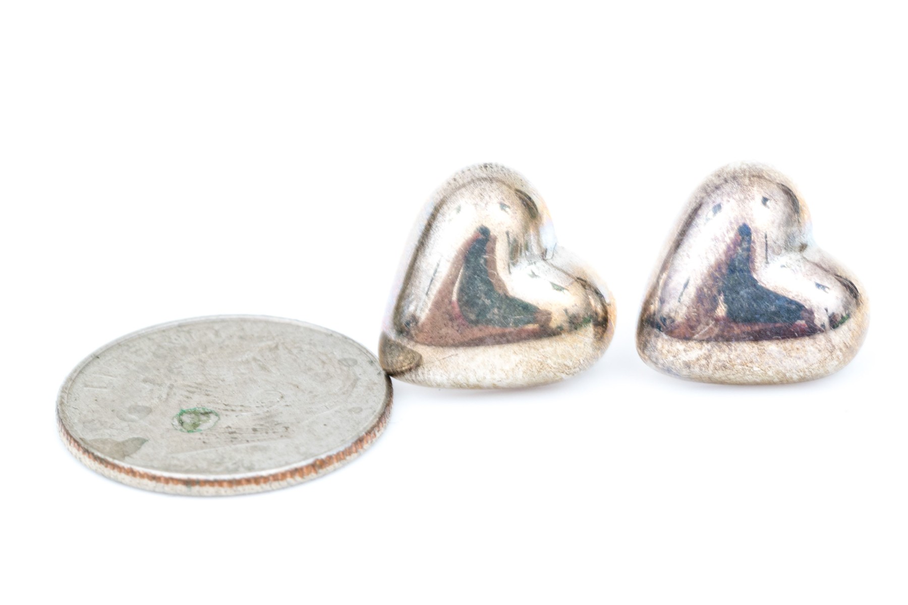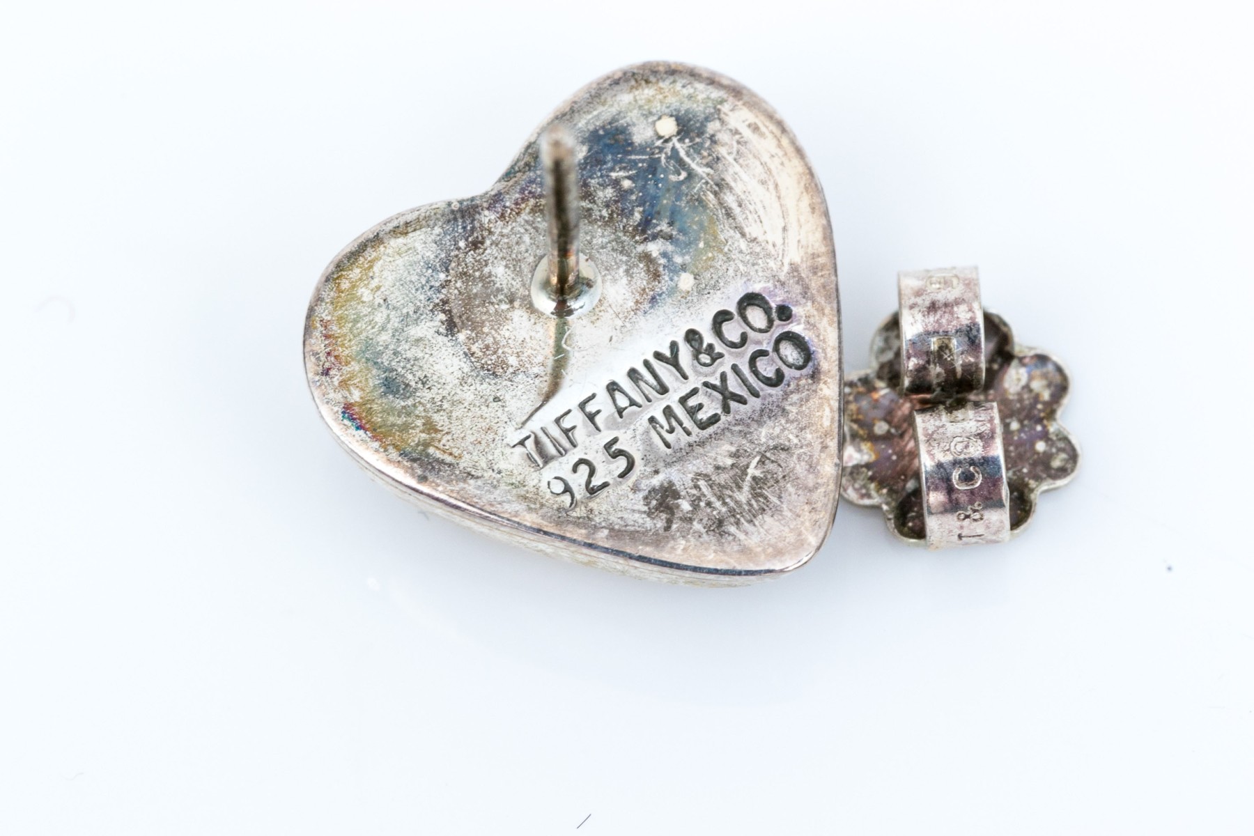 Tiffany & Co. sterling silver heart stud earrings, finished with posts and clutch style backs