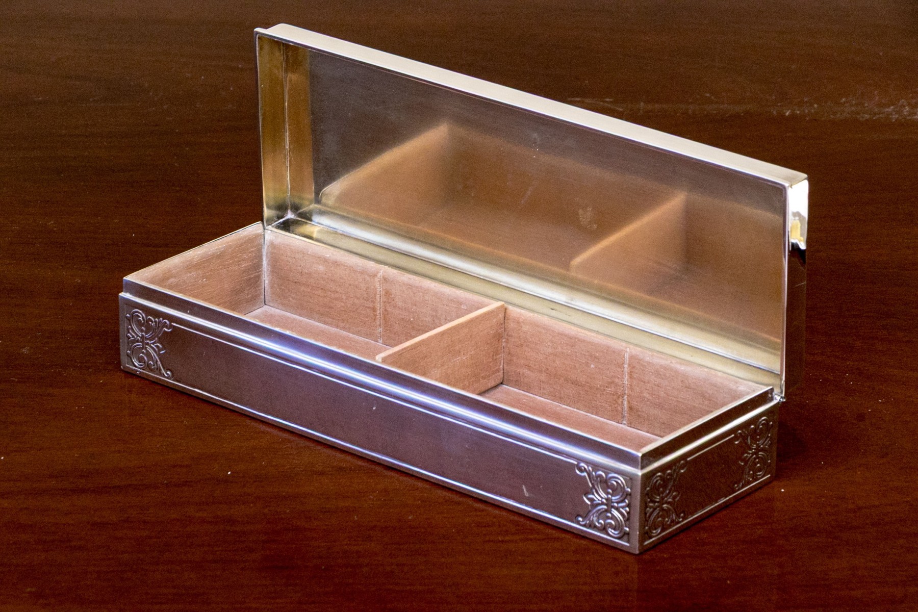 Tiffany & Co. Sterling Silver Hinged Case With Wood Lined Interior, 22.56 Gross Ozt. #441912. Black Rock Galleries provides high end estate liquidation services through online estate auctions and a 50,000 sq ft designer showroom. estate liquidator, estate sale, online auction, antiques, fine art, liquidation, clean outs, auction, consignment, interior design, fine jewelry, collectibles, appraisals, estate appraisals, estate services, decor, furniture, furniture consignment, antique center, consignment shop. We offer appraisal services and specialize in fine art, jewelry, antiques and decorative arts. Sell with us. Black Rock Galleries is the tri-state's largest estate liquidator serving New England and the greater New York City area. We are the trusted source for expert appraisals, auction services, estate sales, and consignments. Black Rock Galleries is the east coast's largest and most trusted estate liquidator, with locations in Connecticut, greater Boston, MA and Raleigh, NC, Fairfield, Southport, Apex, TX. We are the best source for expert appraisals, auction services, estate sales and consignments. We have served thousands of families and estates with compassion, professionalism and expertise. BRG works with attorneys, executors, realtors and families to bring the greatest return on personal and estate property in the current market. Our unique combination of services make us the easy choice to get the job done in a timely and stress-free manner. We are with you from the initial consultation to the final clean out. Our house-built online auction software platform offers clients a dynamic approach to liquidating their personal property. This venue is most successful in bringing the best return with the least amount of disruption for our clients. See our services page for a complete description of this offering. Tiffany & Co. Sterling Silver Hinged Case With Wood Lined Interior, 22.56 Gross Ozt. #441912