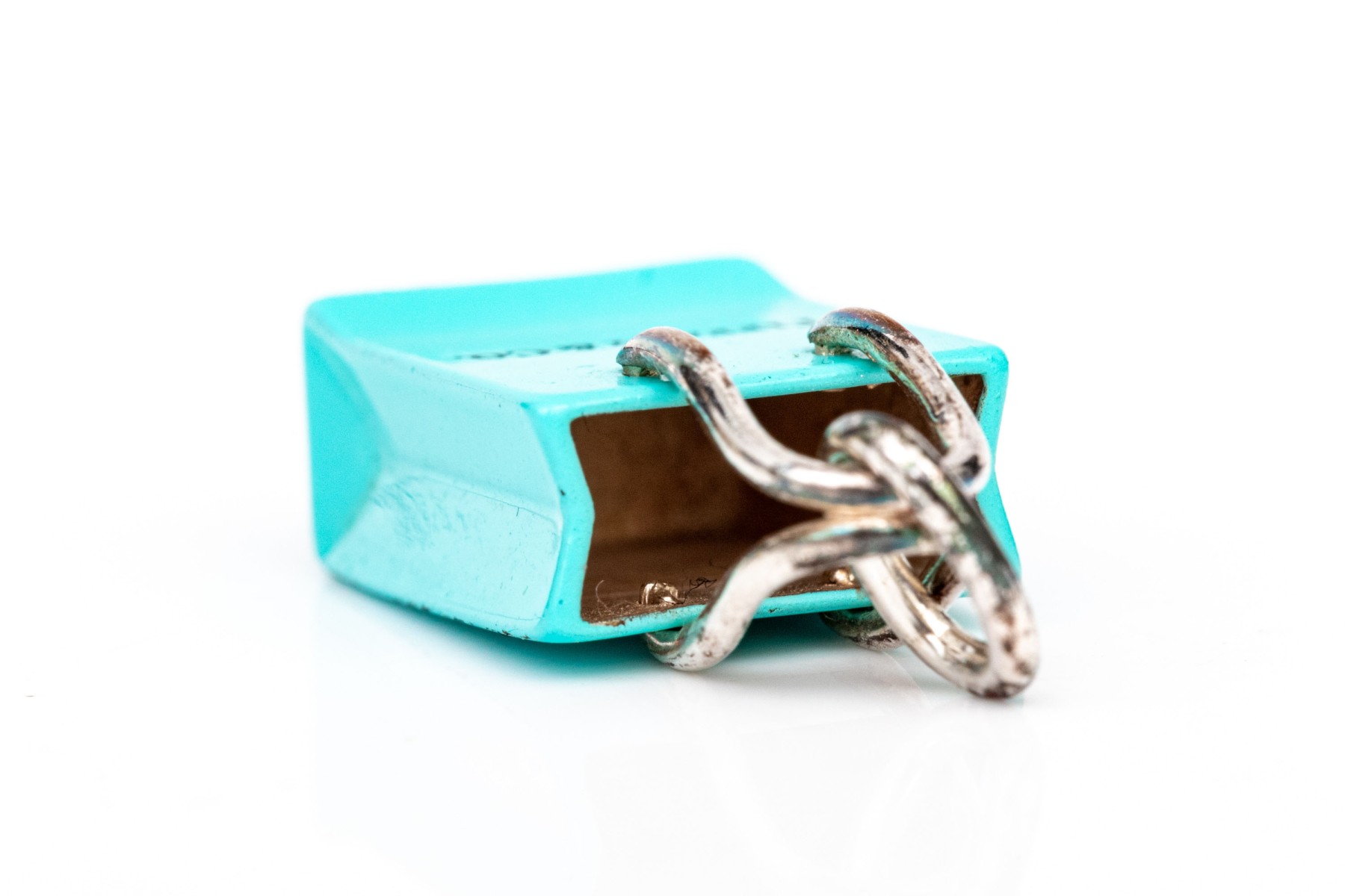 Tiffany & Co. sterling silver iconic Tiffany blue enamel shopping bag charm