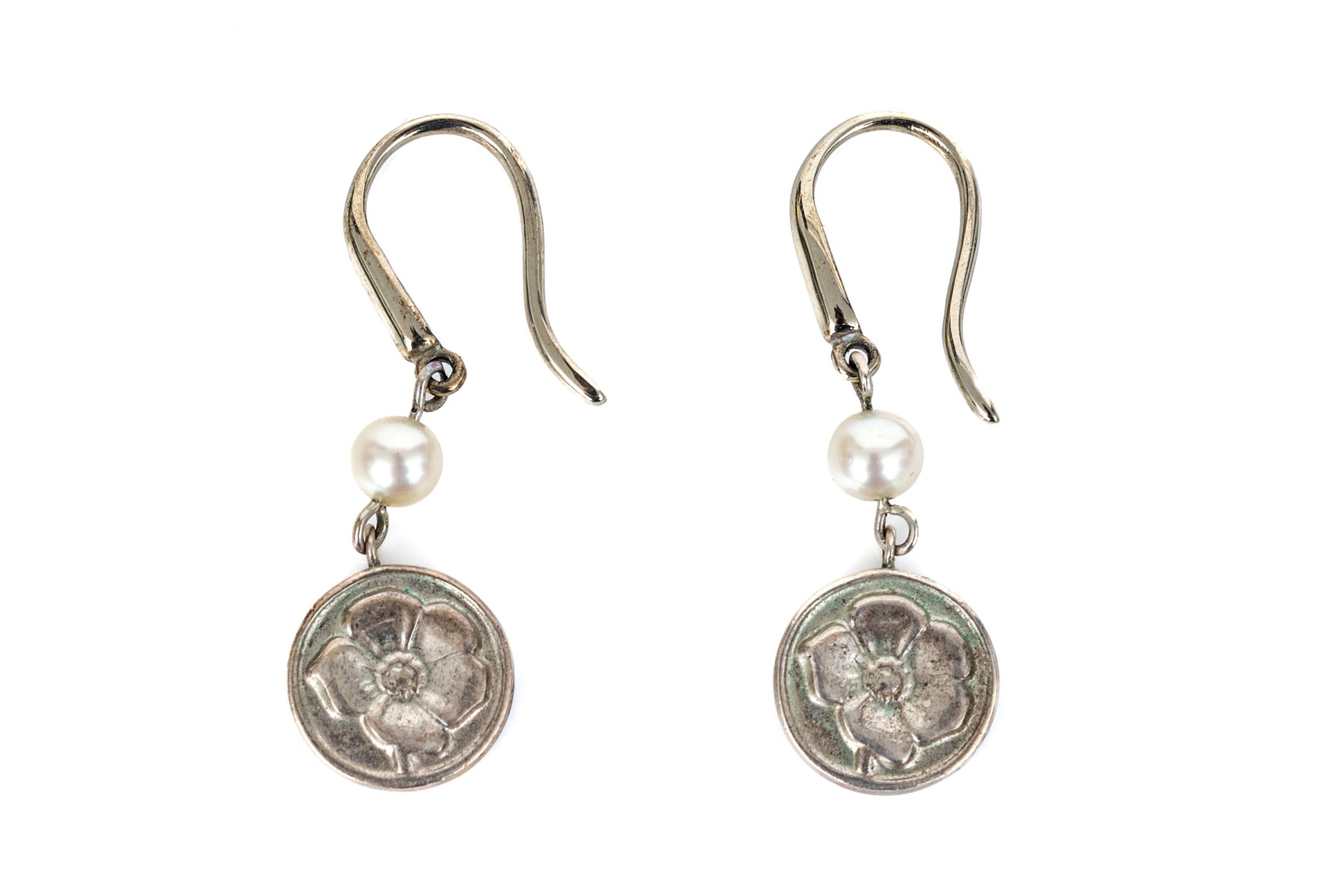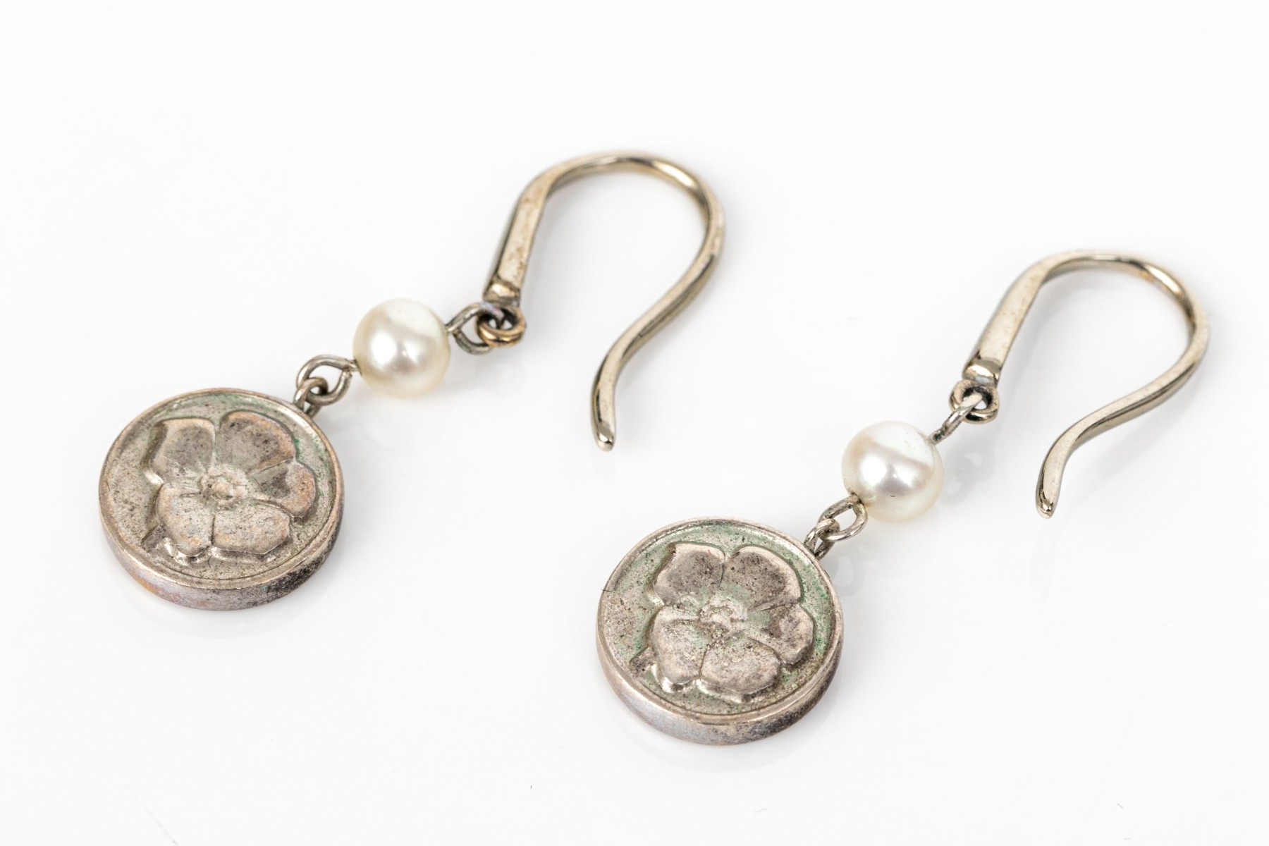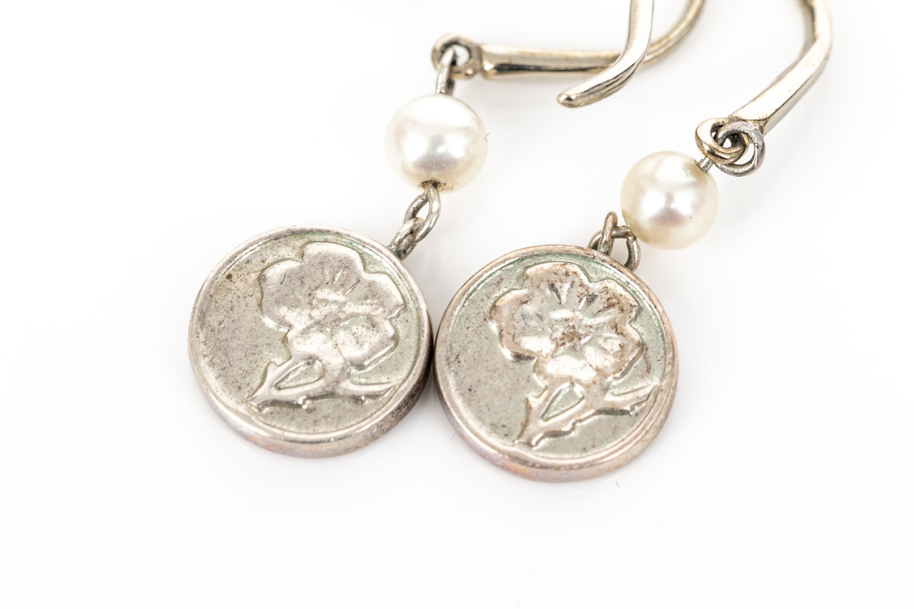 Tiffany & Co. sterling silver lovely "Nature Rose" patterned medallion drop pendant earrings, finished with shepherd's style hooks