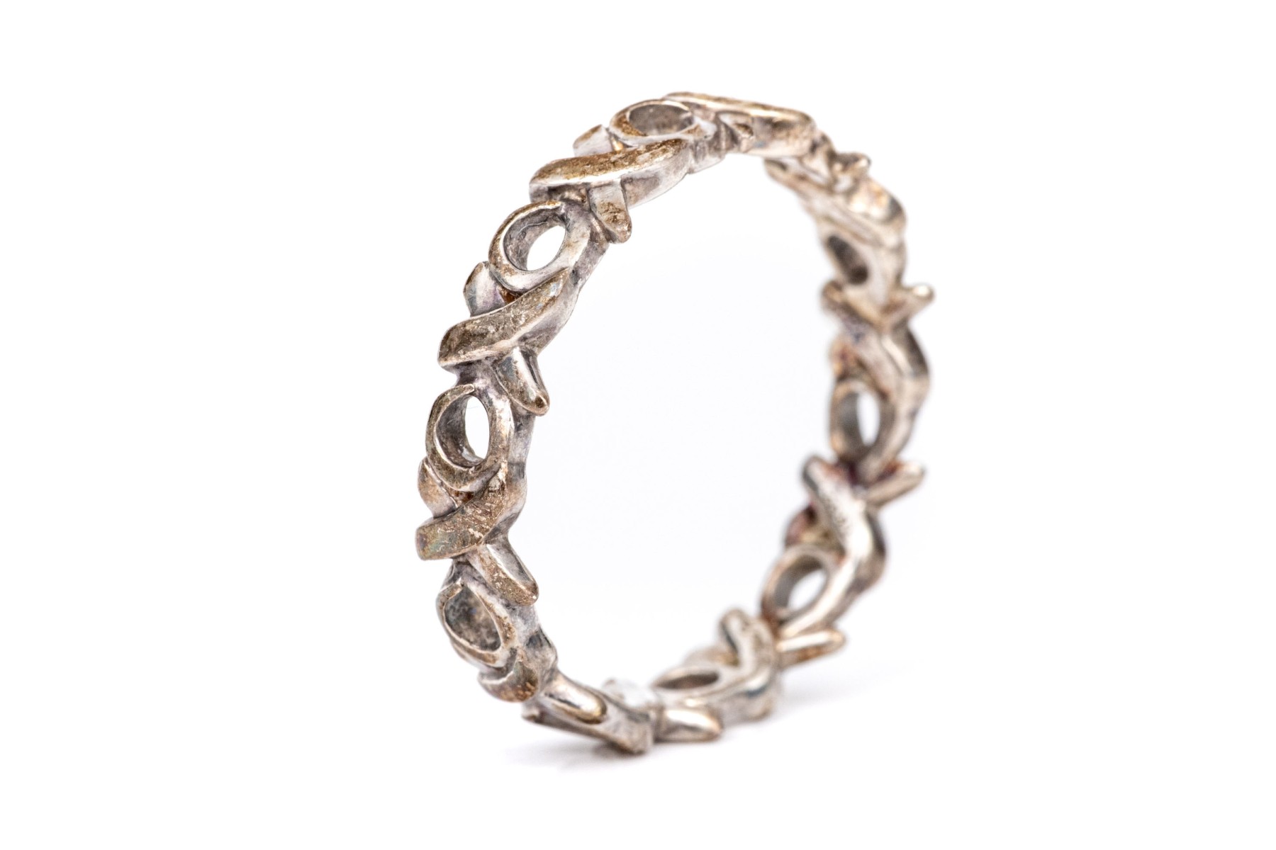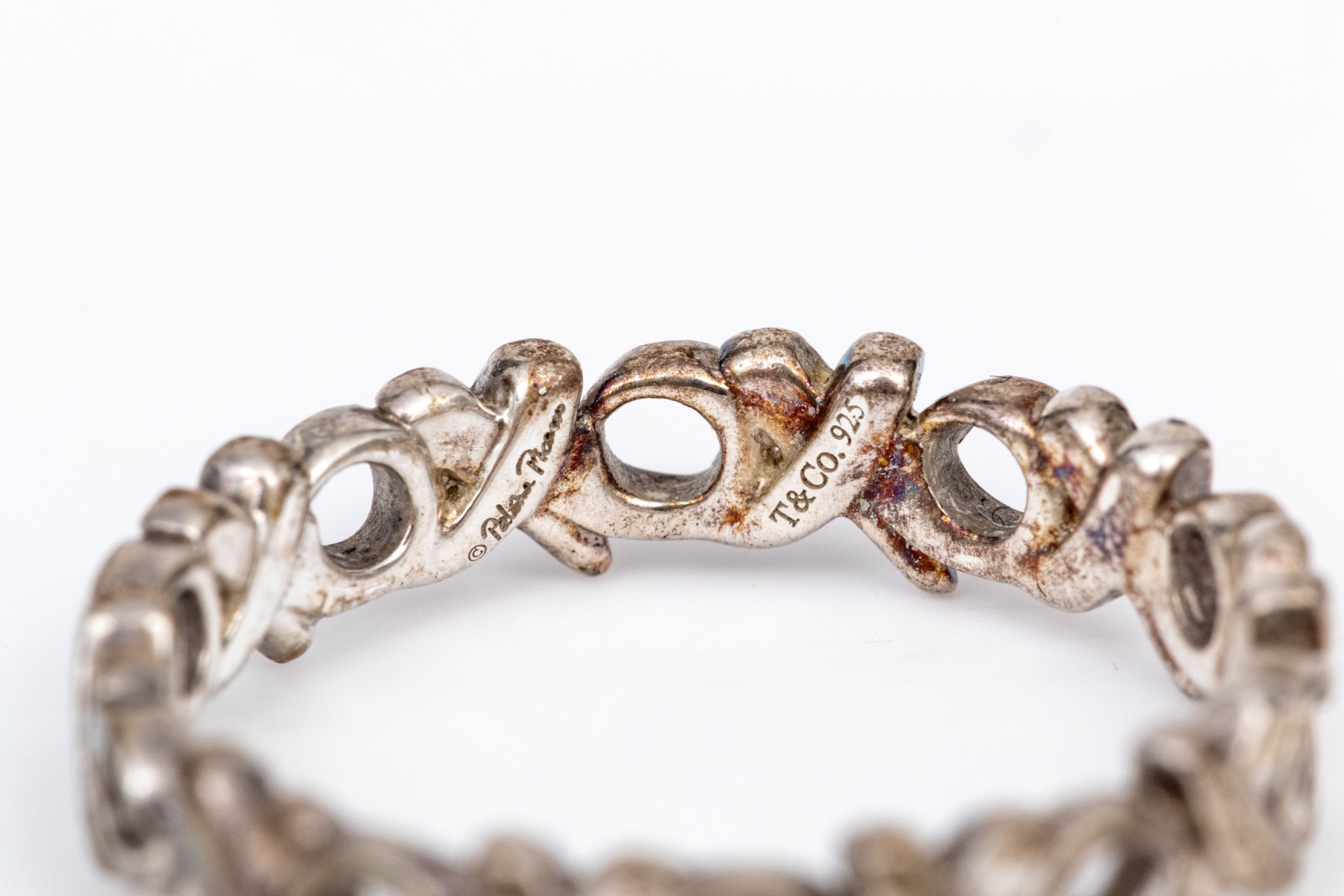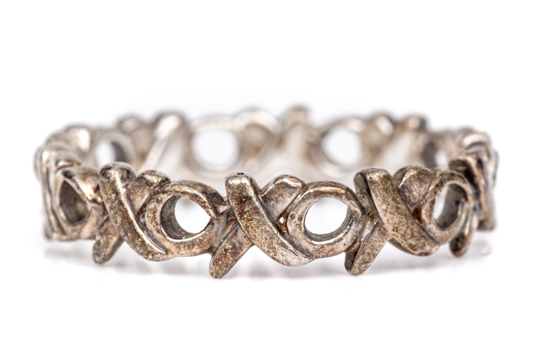 Tiffany & Co. sterling silver Paloma Picasso "Grafitti Love & Kisses" 4.5 mm band ring, size 7.25