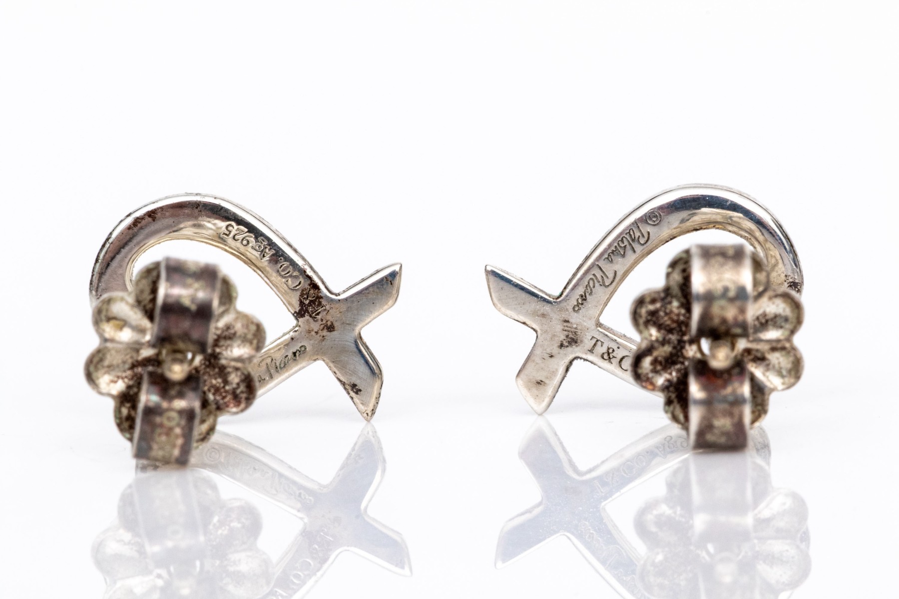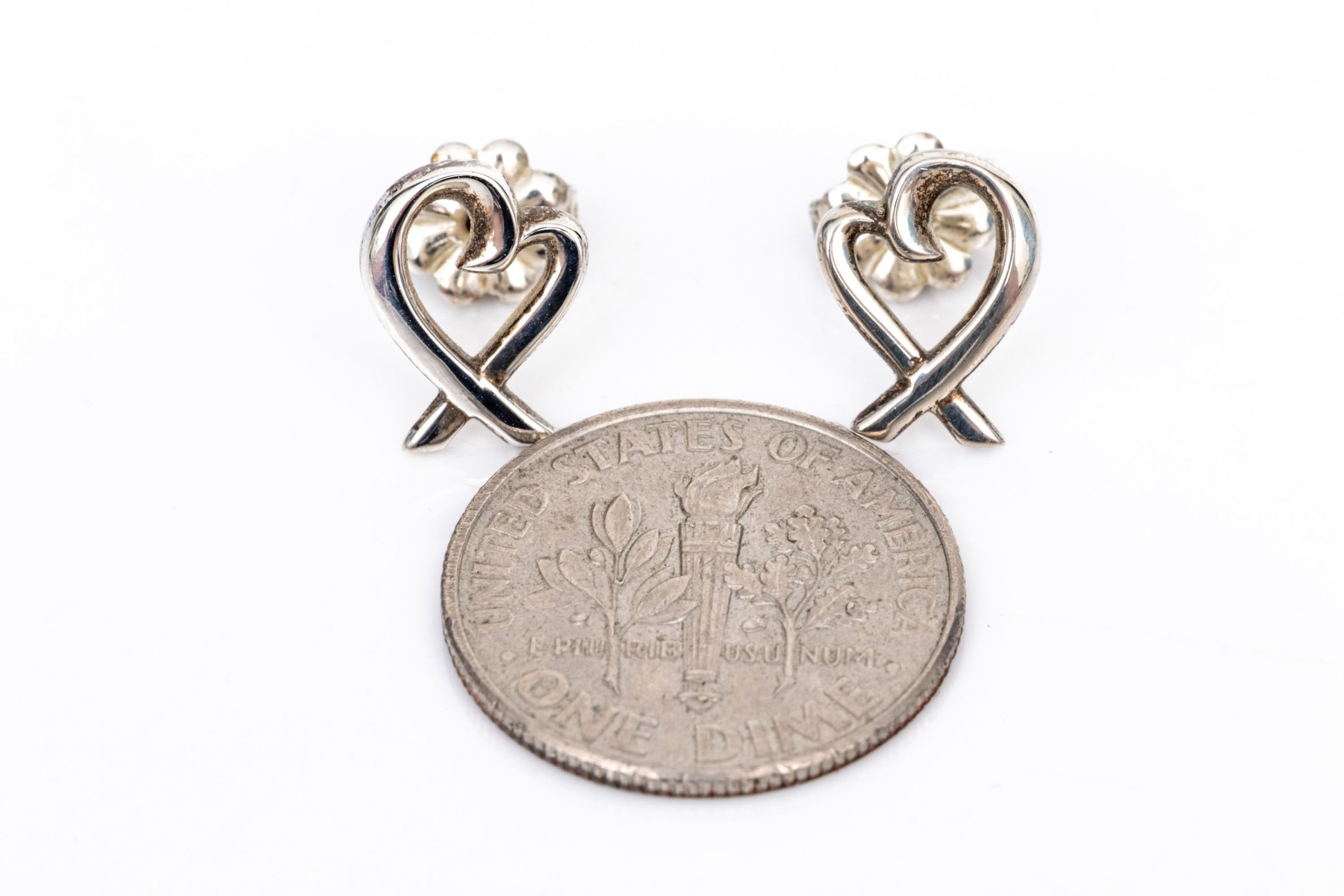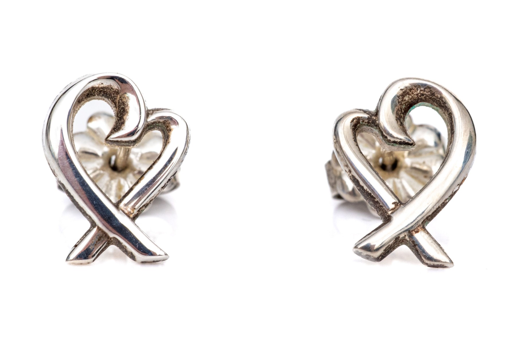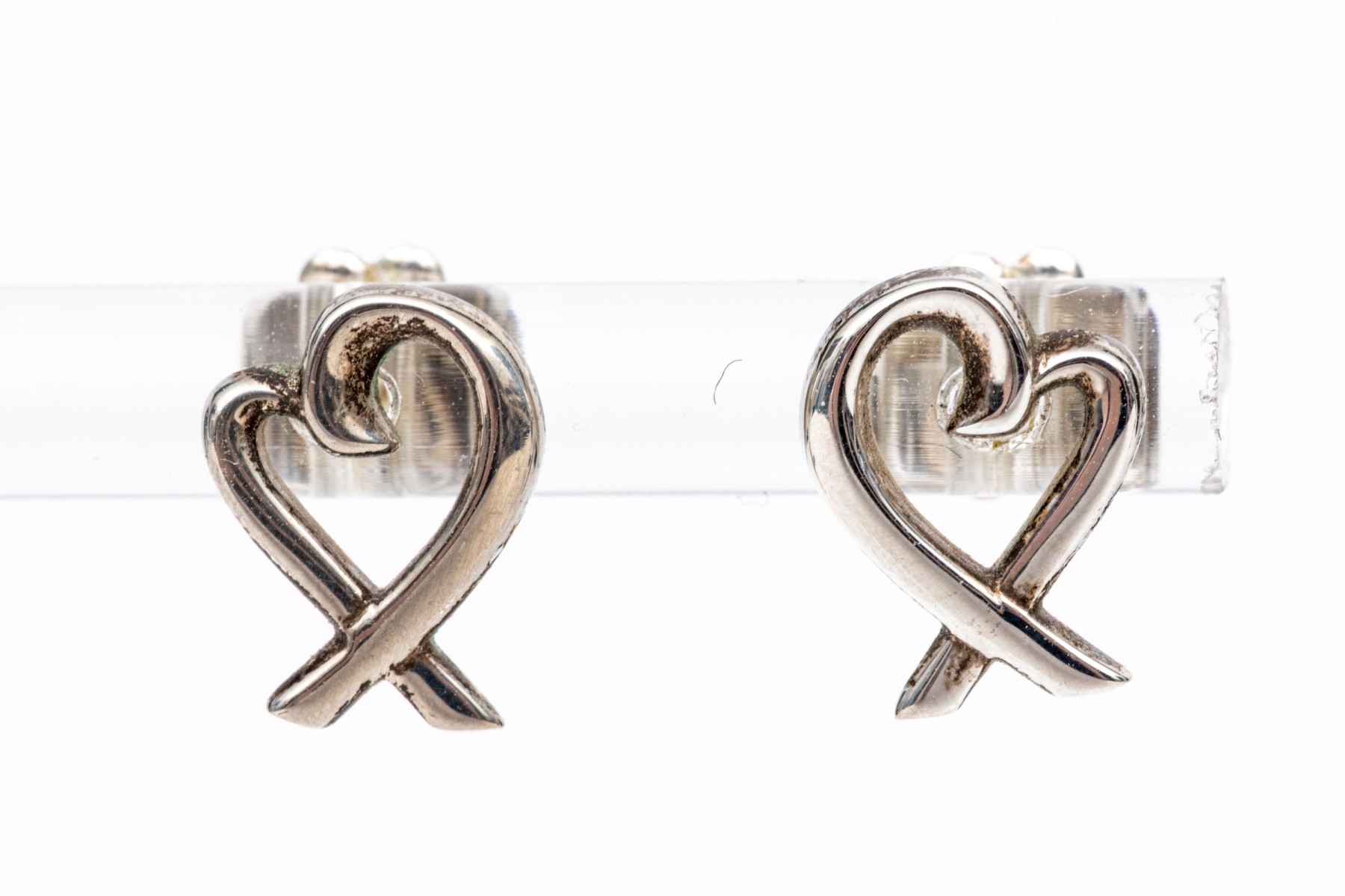 Tiffany & Co. sterling silver Paloma Picasso open heart ribbon stud earrings, finished with posts and clutch style backs