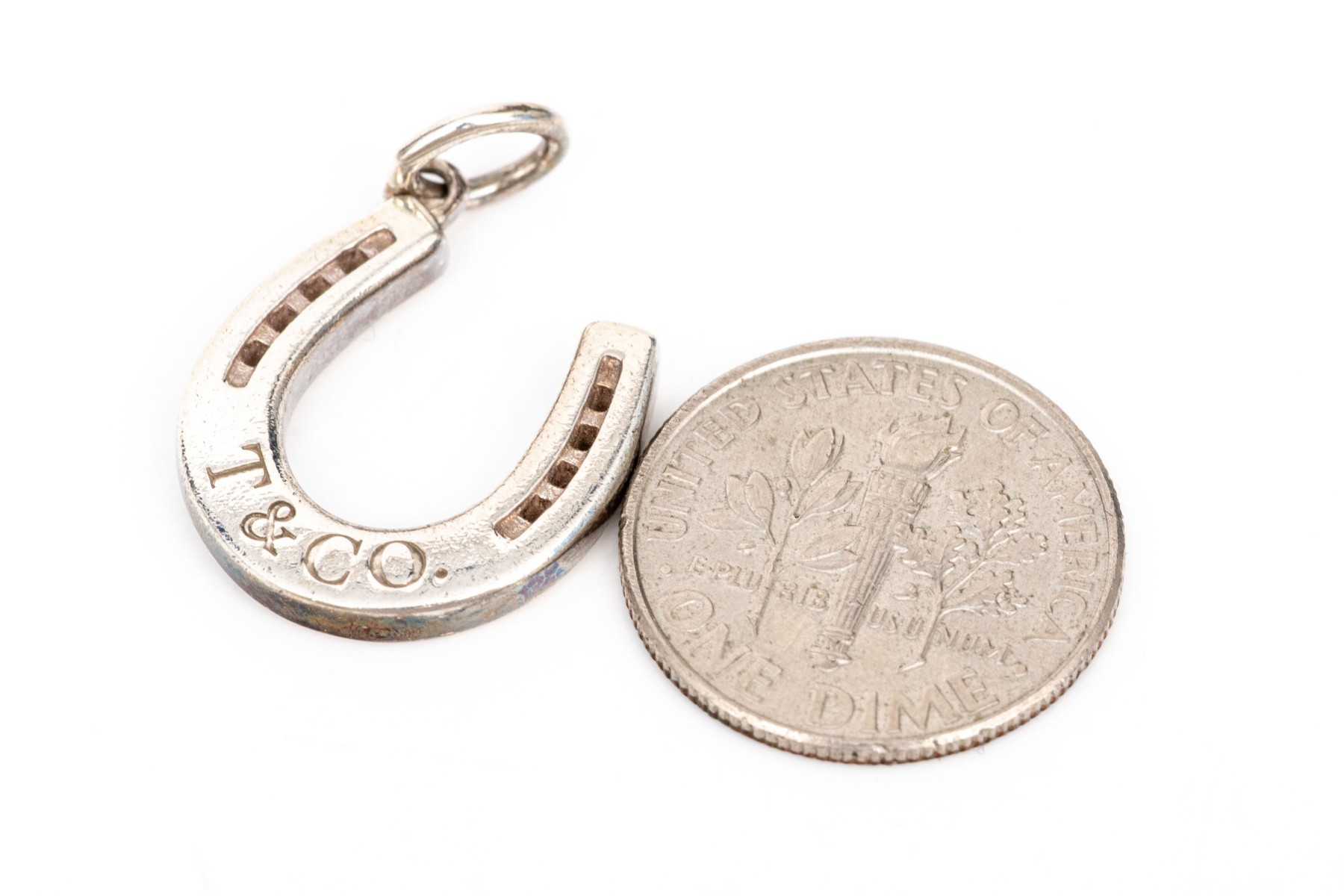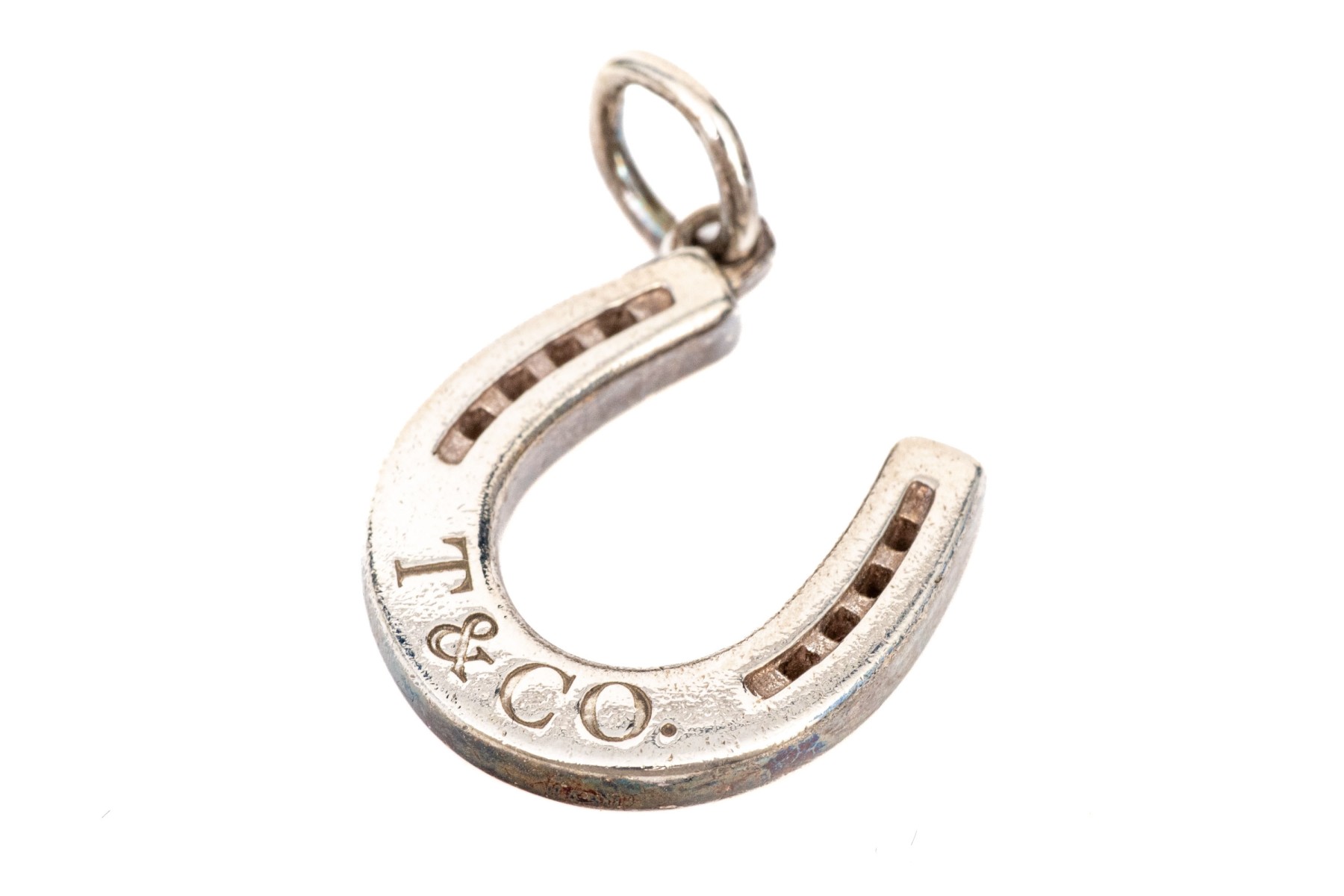 Tiffany & Co. sterling silver patterned lucky horseshoe charm, and finished with a jump ring style bale