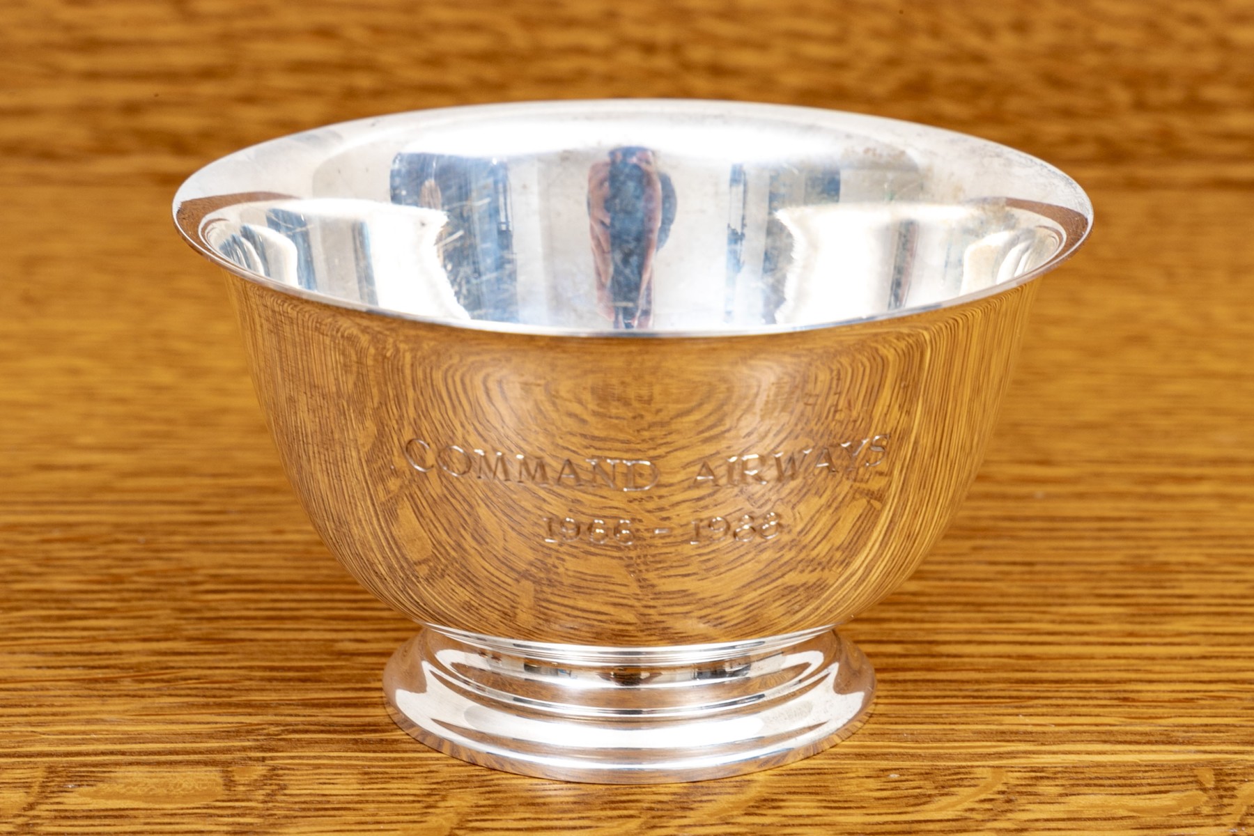 Tiffany & Co. sterling silver footed Paul Revere bowl #23614. Printed on front Command Airways 1966-1988.