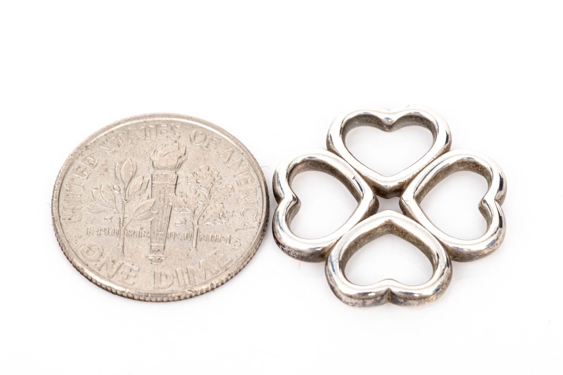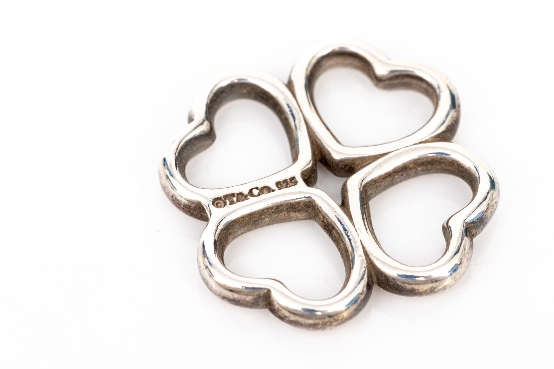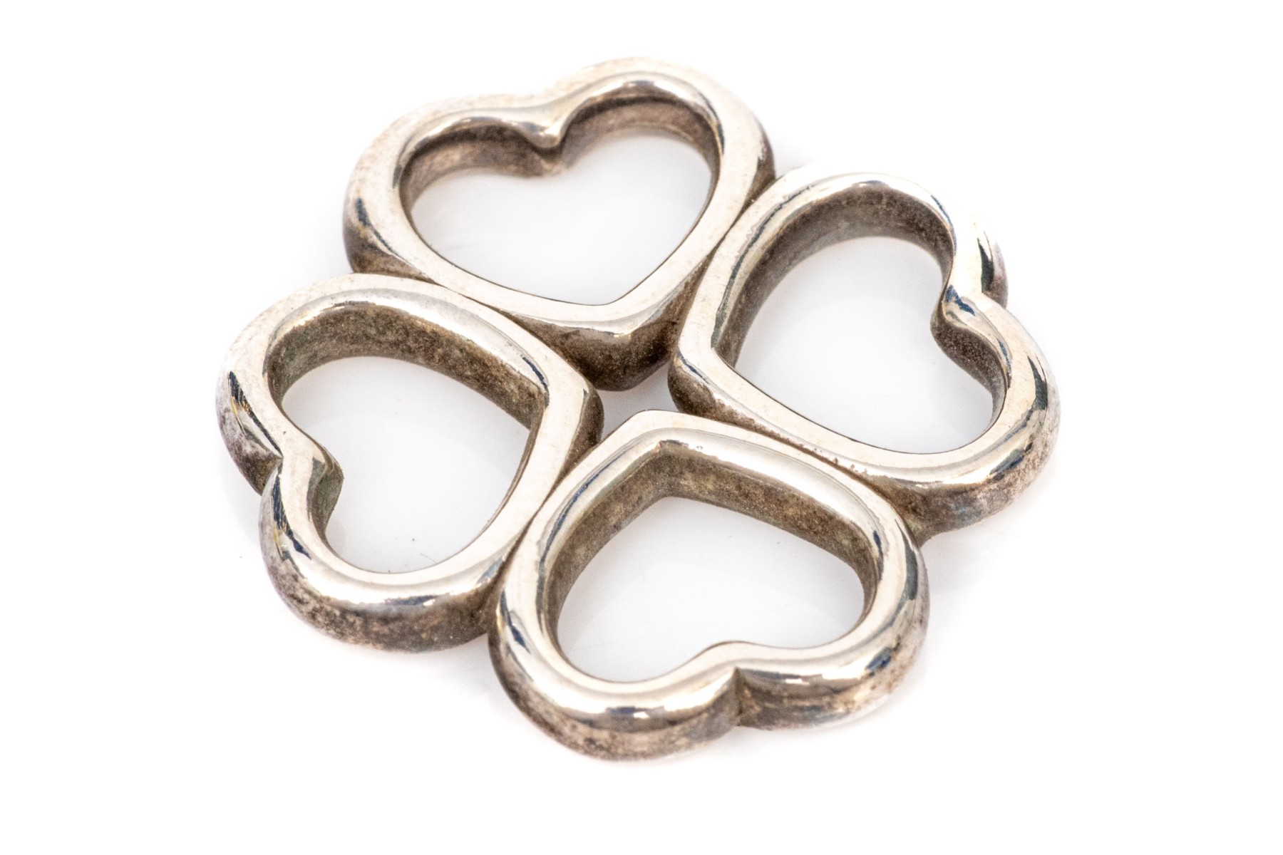 Tiffany & Co. sterling silver quatrefoil patterned open heart motif pendant