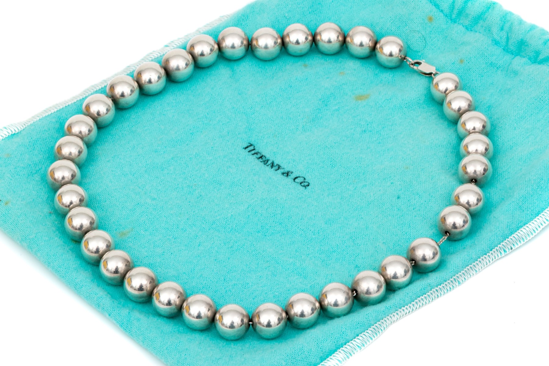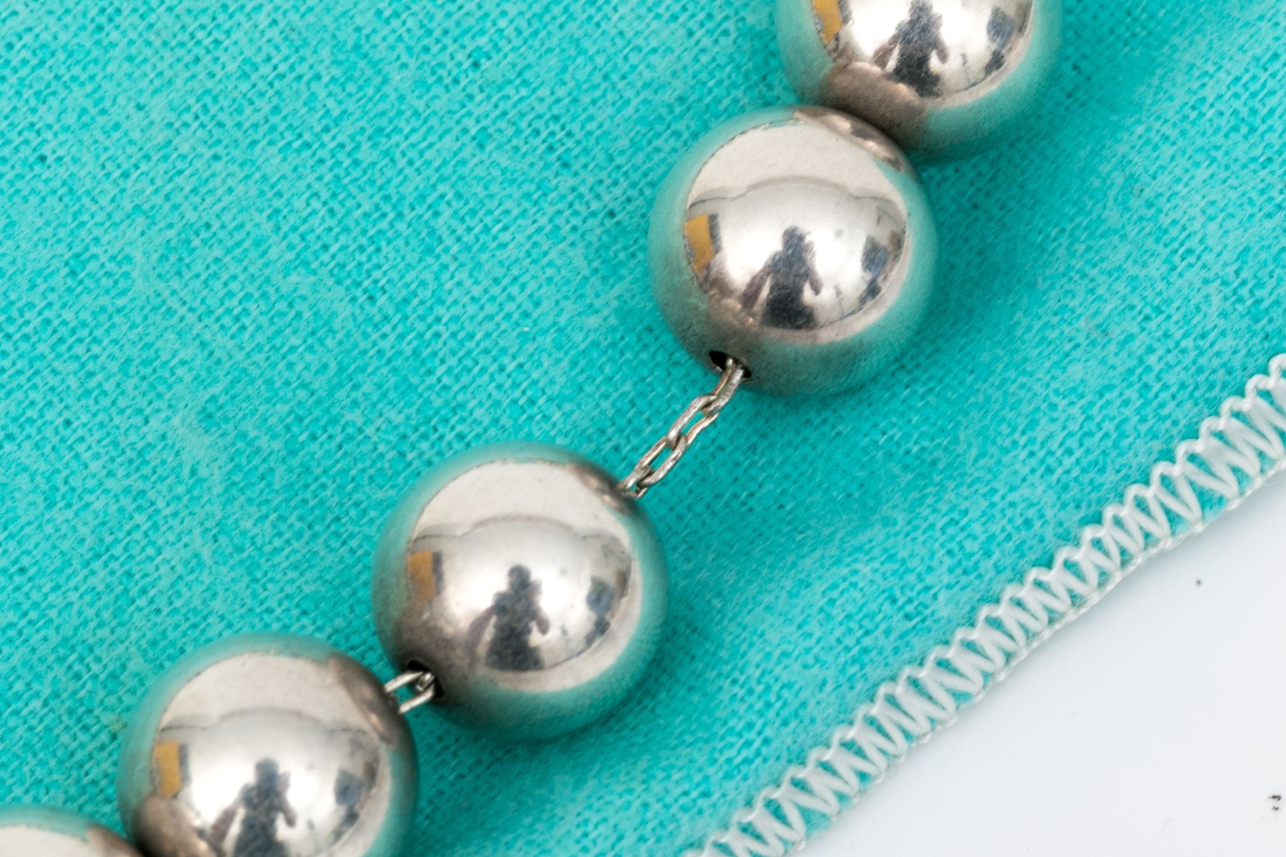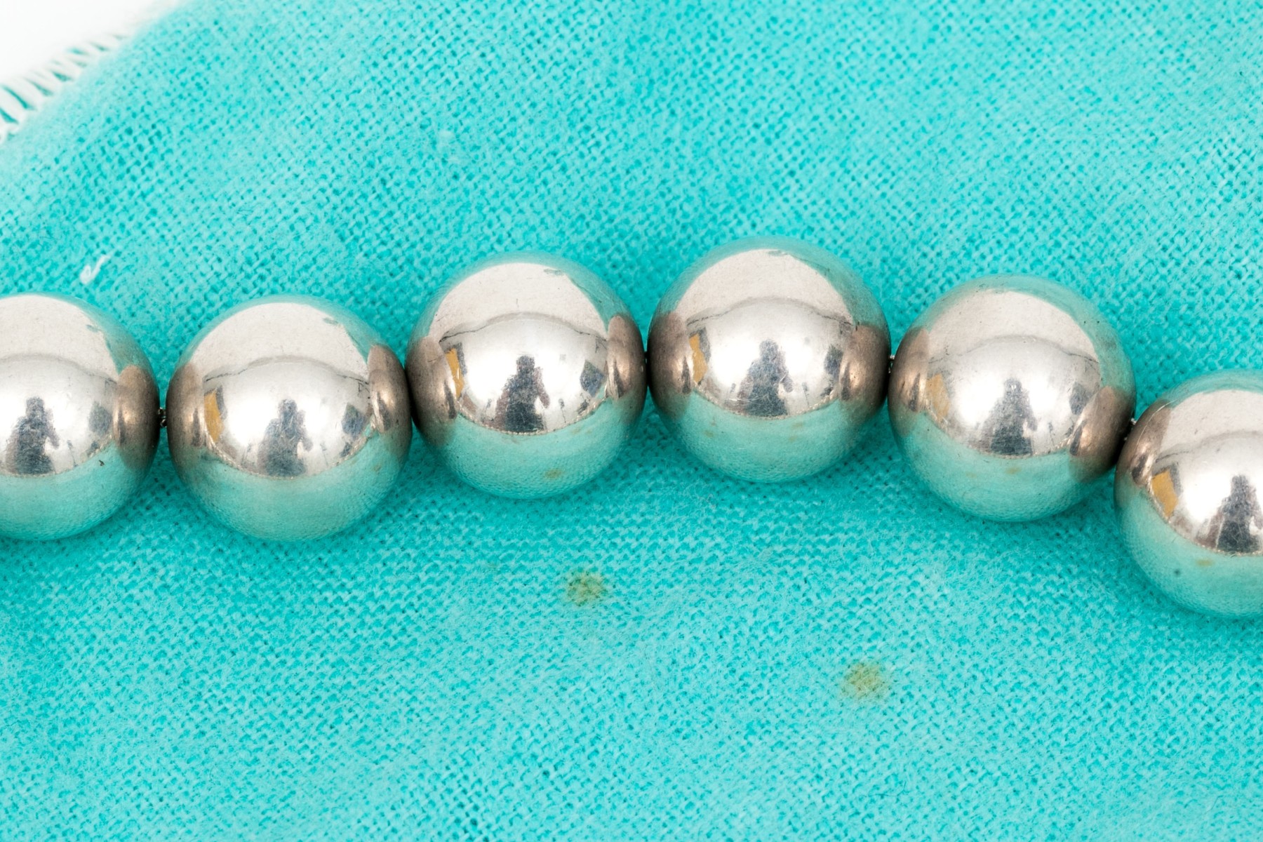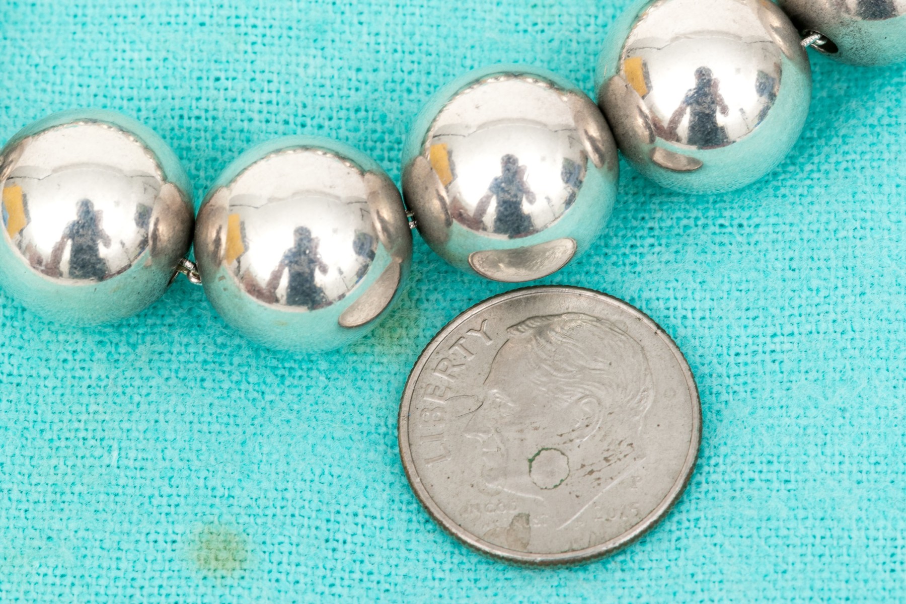 Tiffany & Co. sterling silver striking 12.75 mm bead necklace, finished with a lobster claw style clasp, with pouch.