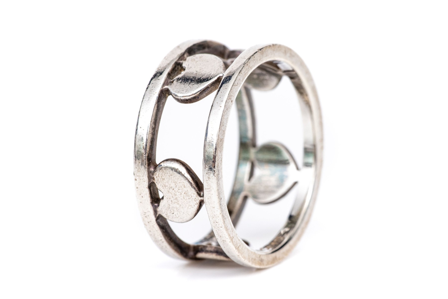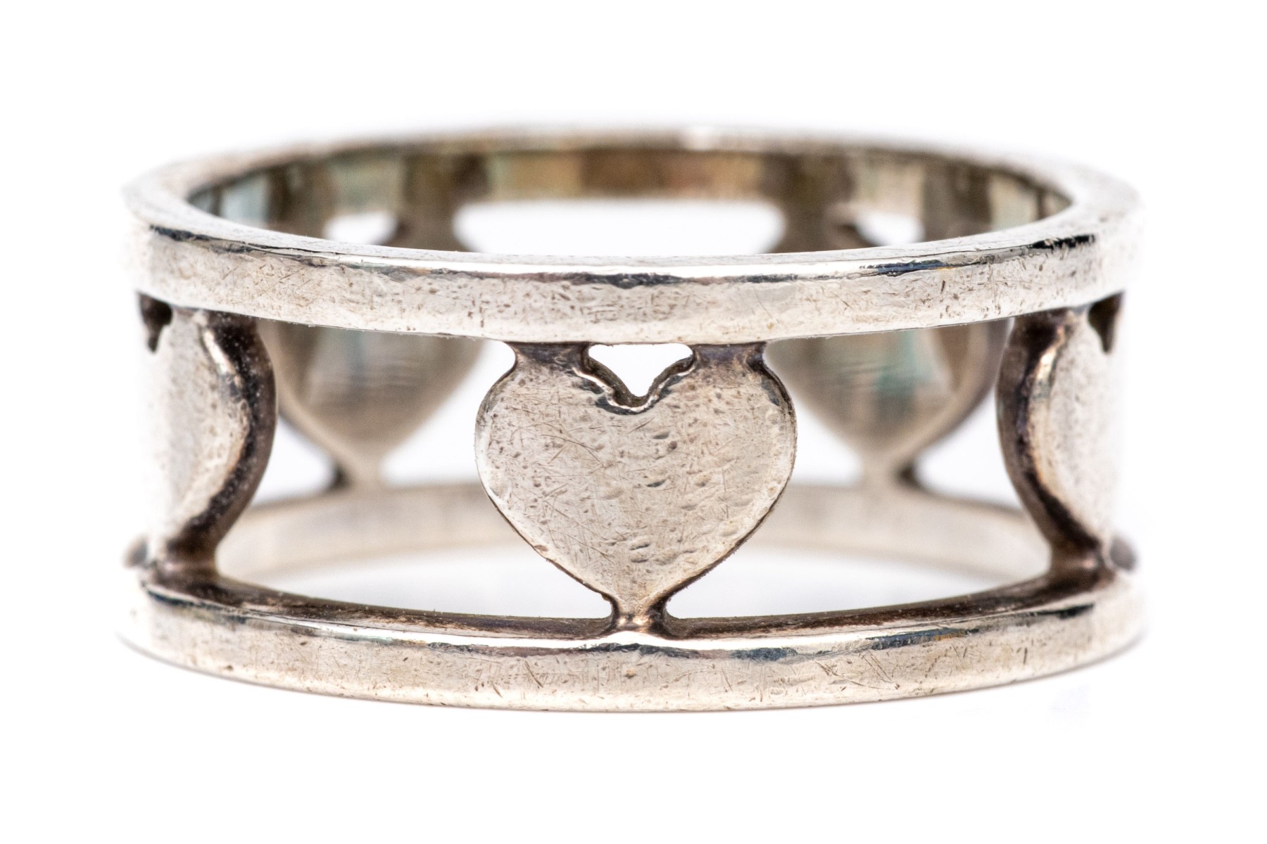 Tiffany & Co. sterling silver striking 8.5 mm wide heart motif band ring, size 6.75