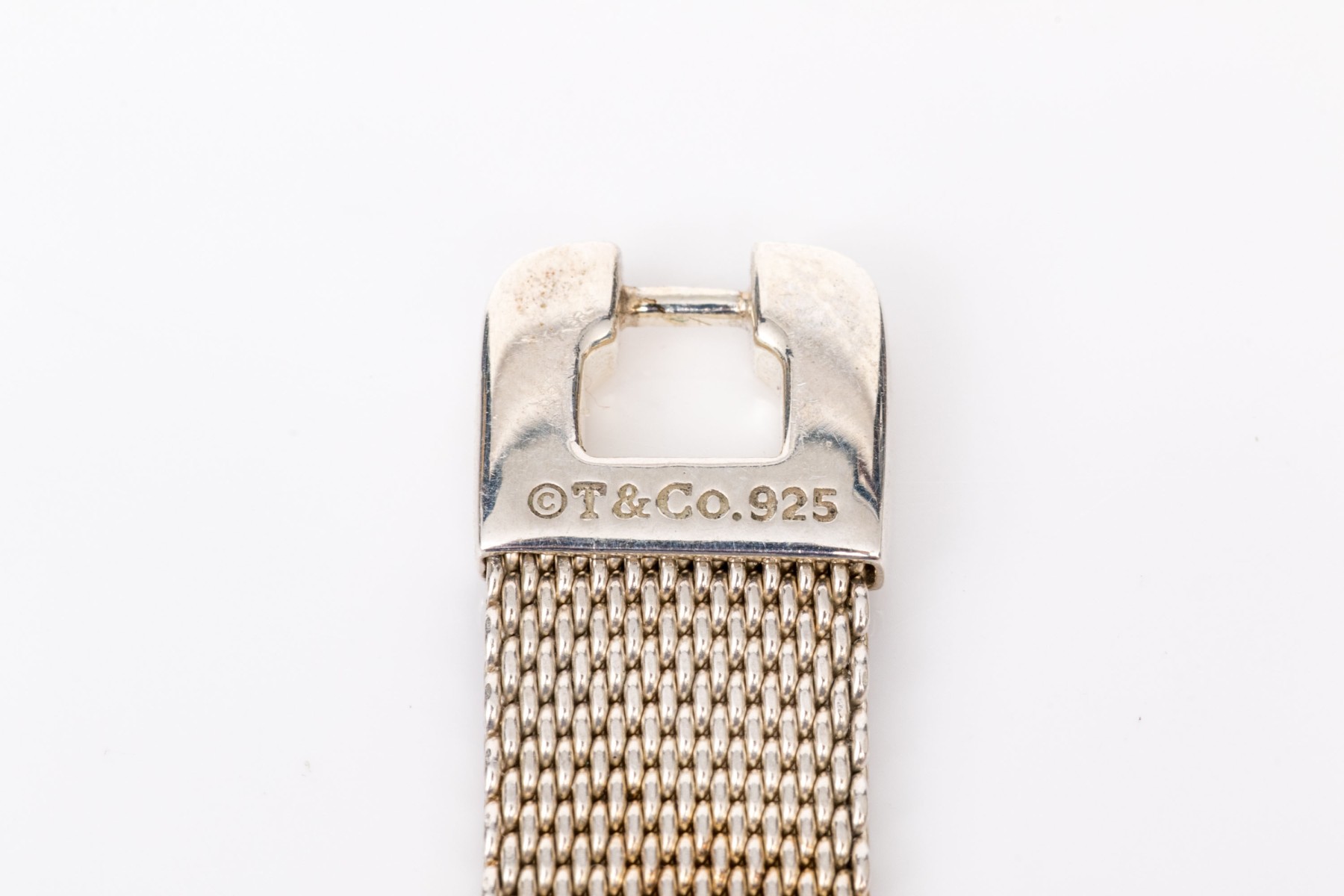 Tiffany & Co. sterling silver striking mesh link id style bracelet, finished with a push style clasp