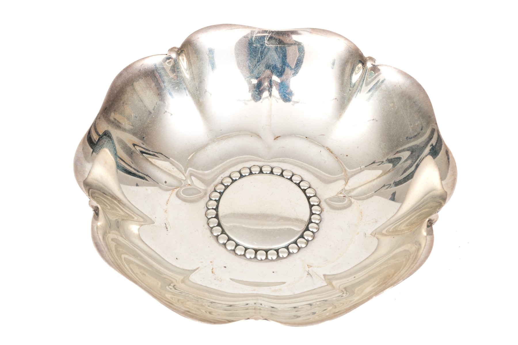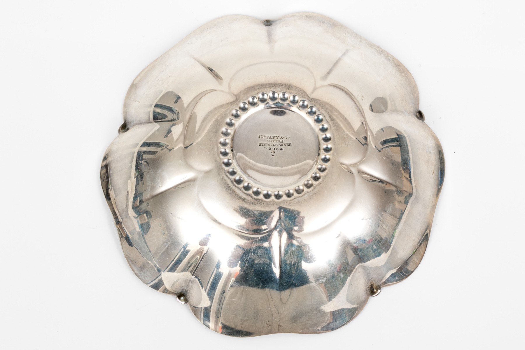 Tiffany & Co. sterling silver striking vintage flower motif bon bon bowl, circa 1941