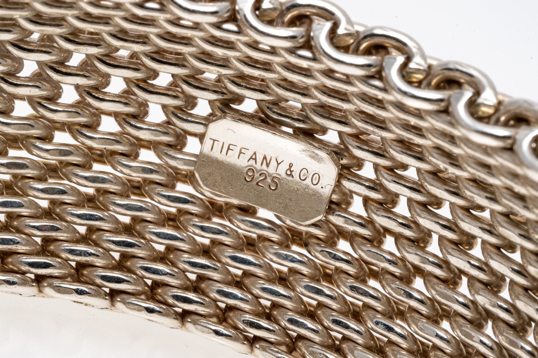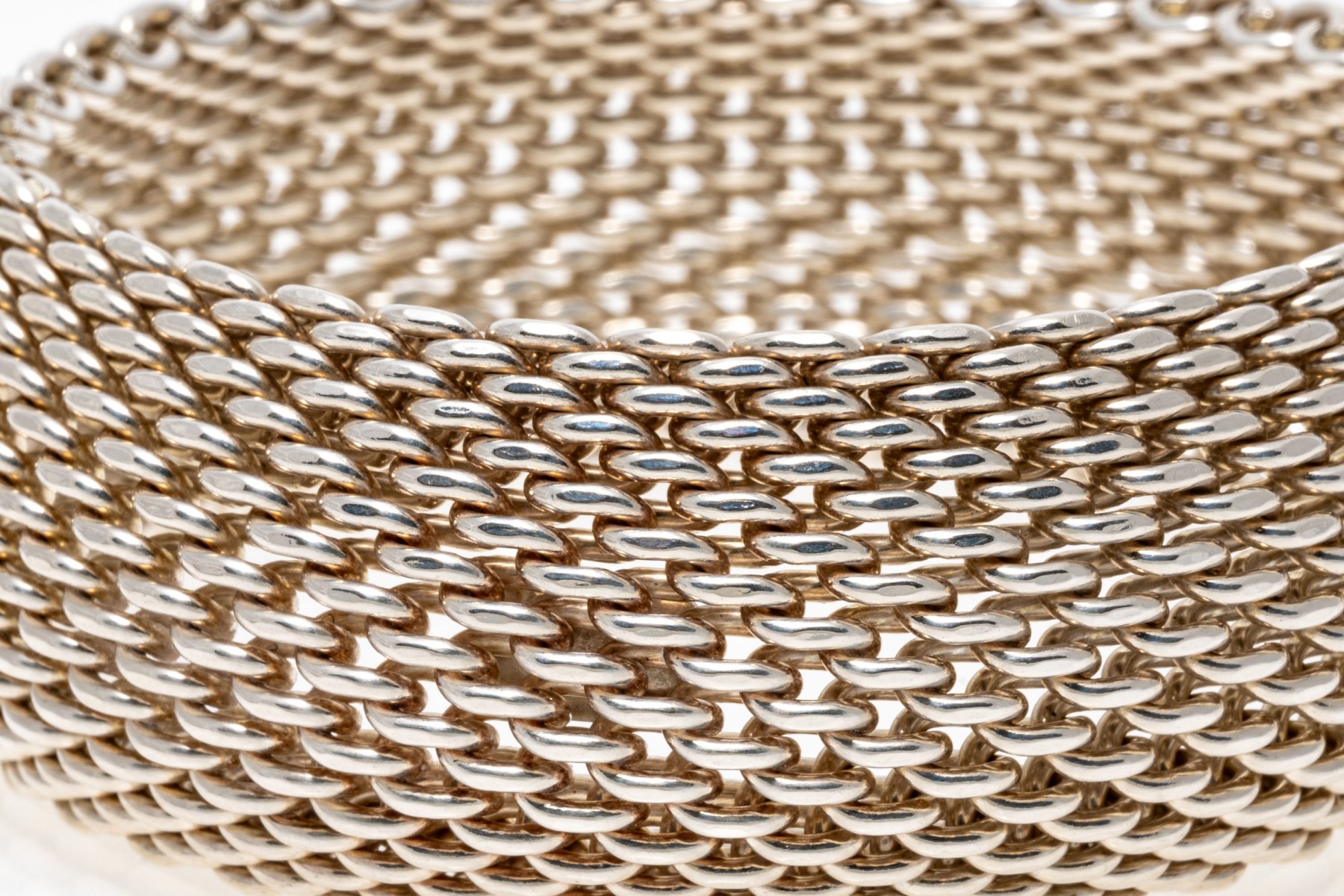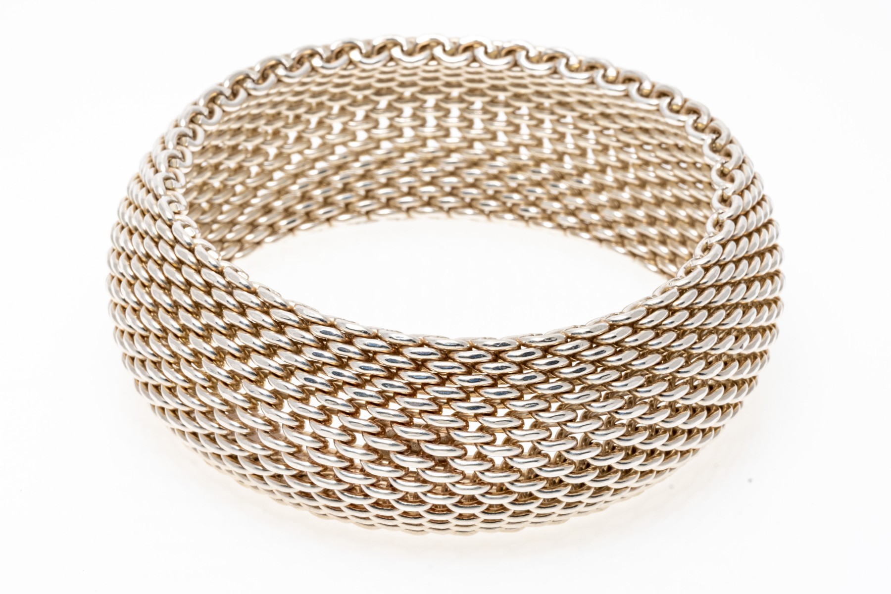 Tiffany & Co. sterling silver striking wide bombe mesh slip on bangle bracelet, with felt